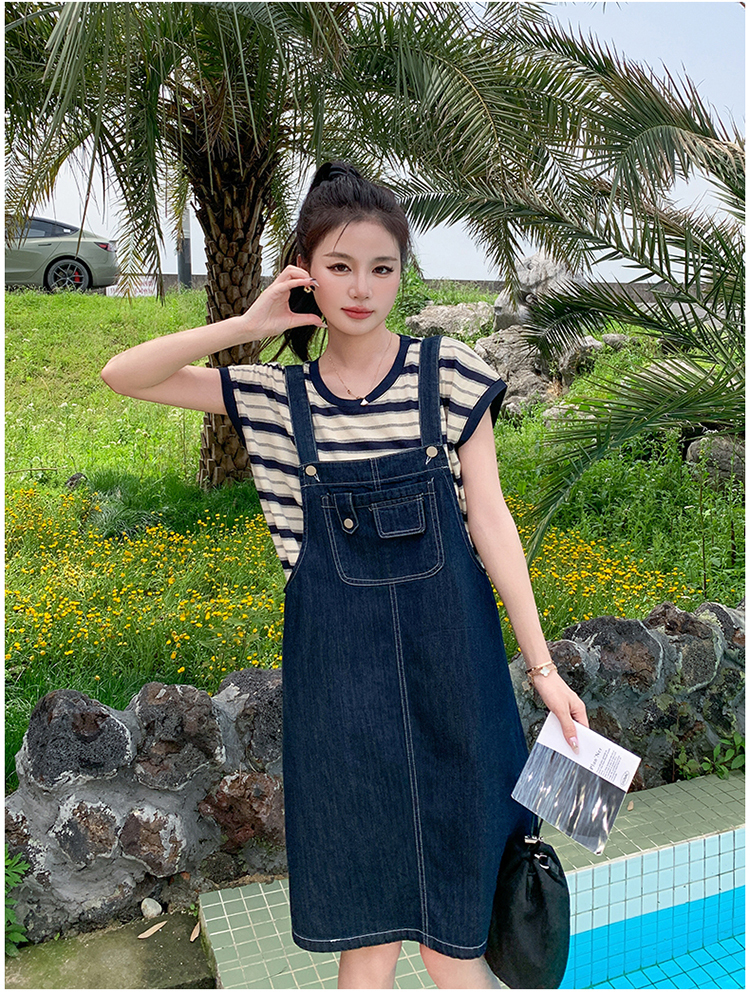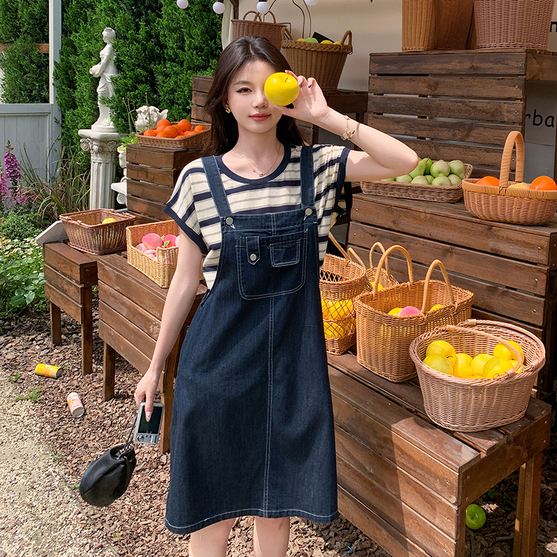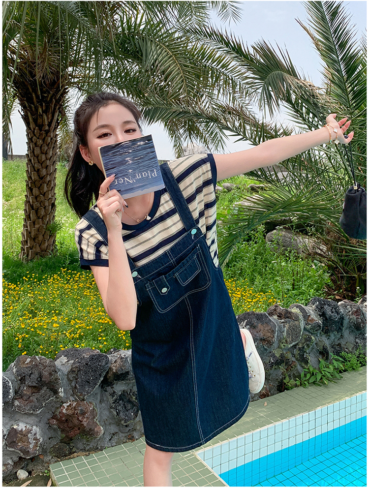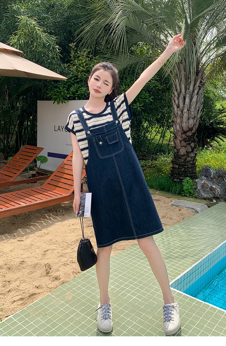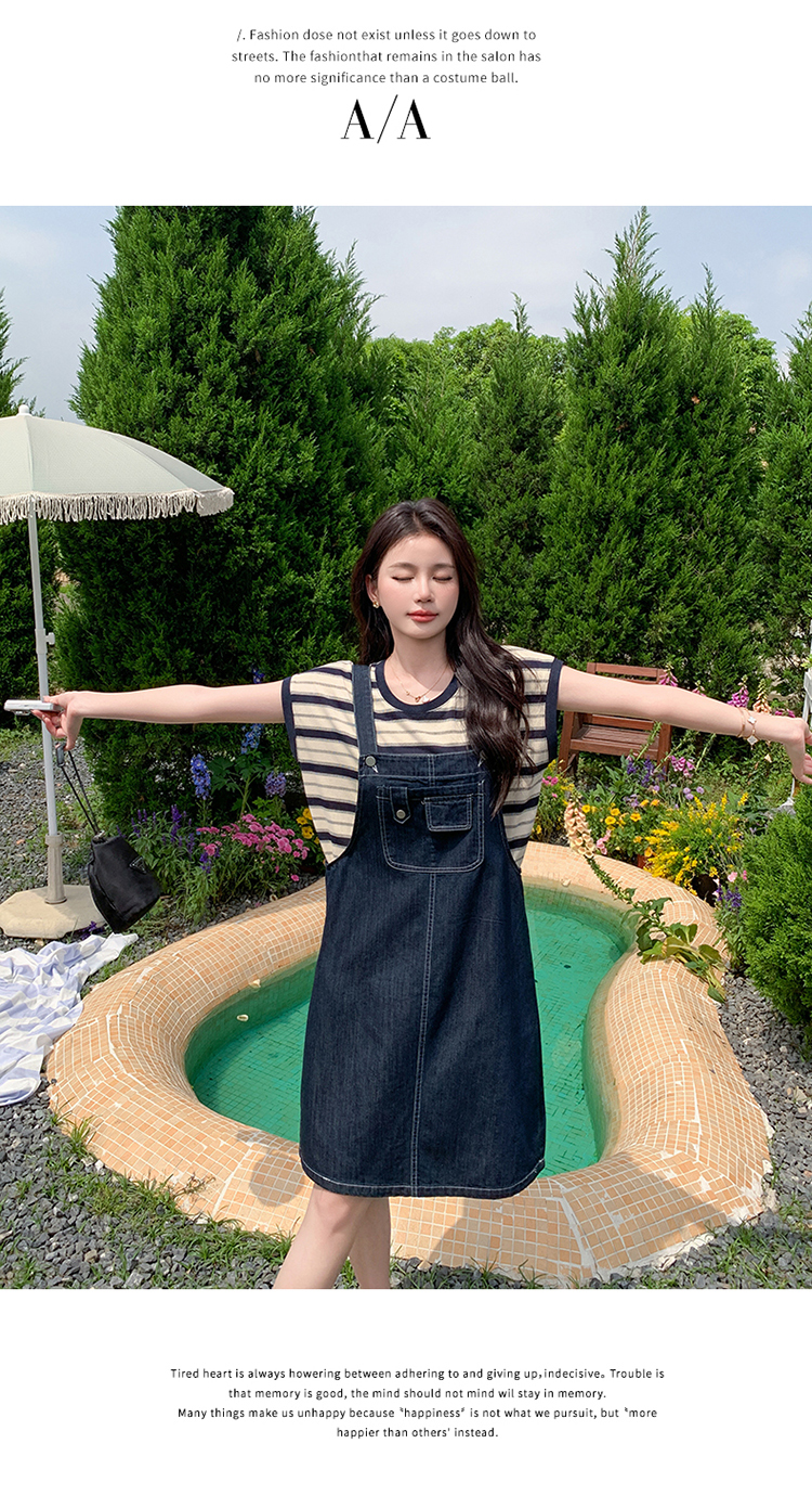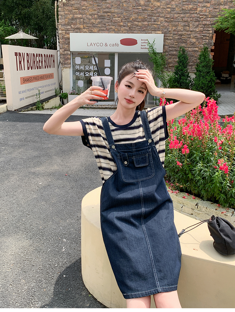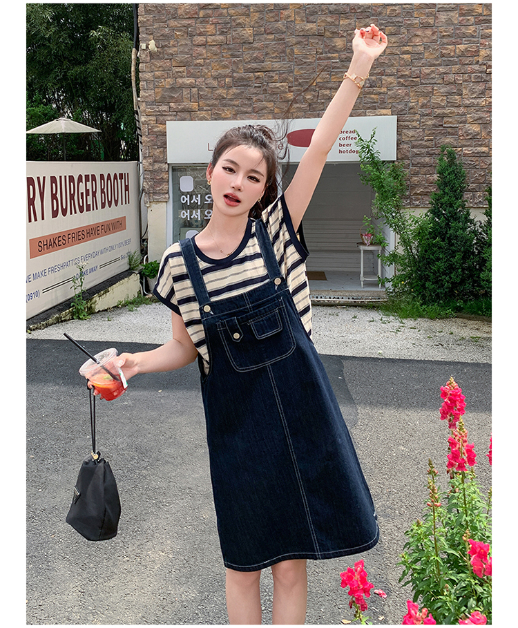 獨家訂製│韓系甜姐兒T恤+牛仔吊帶裙兩件式套裝組(06H6610)