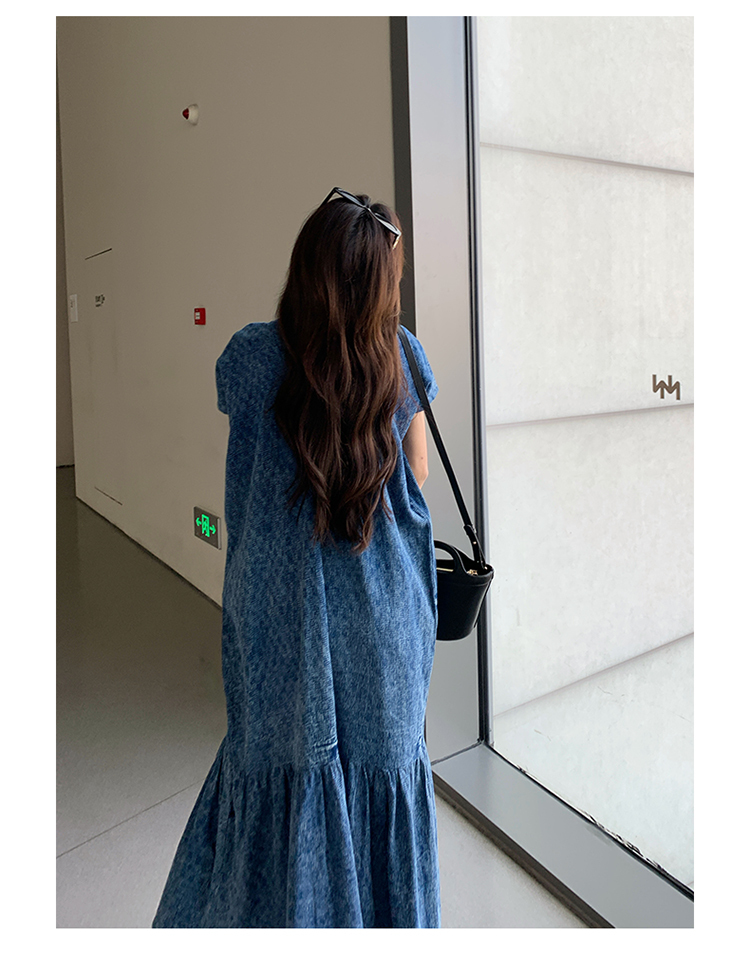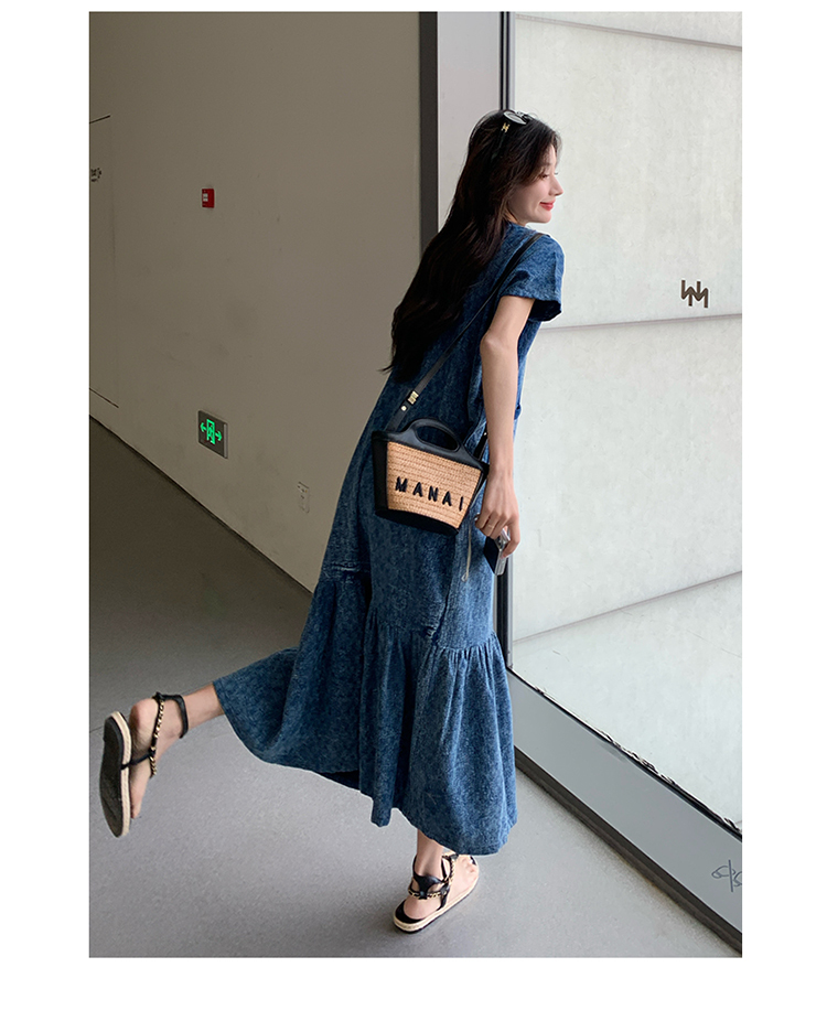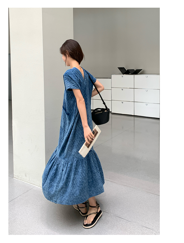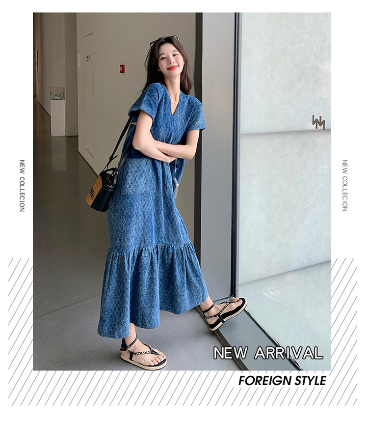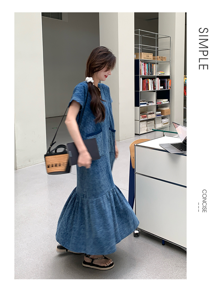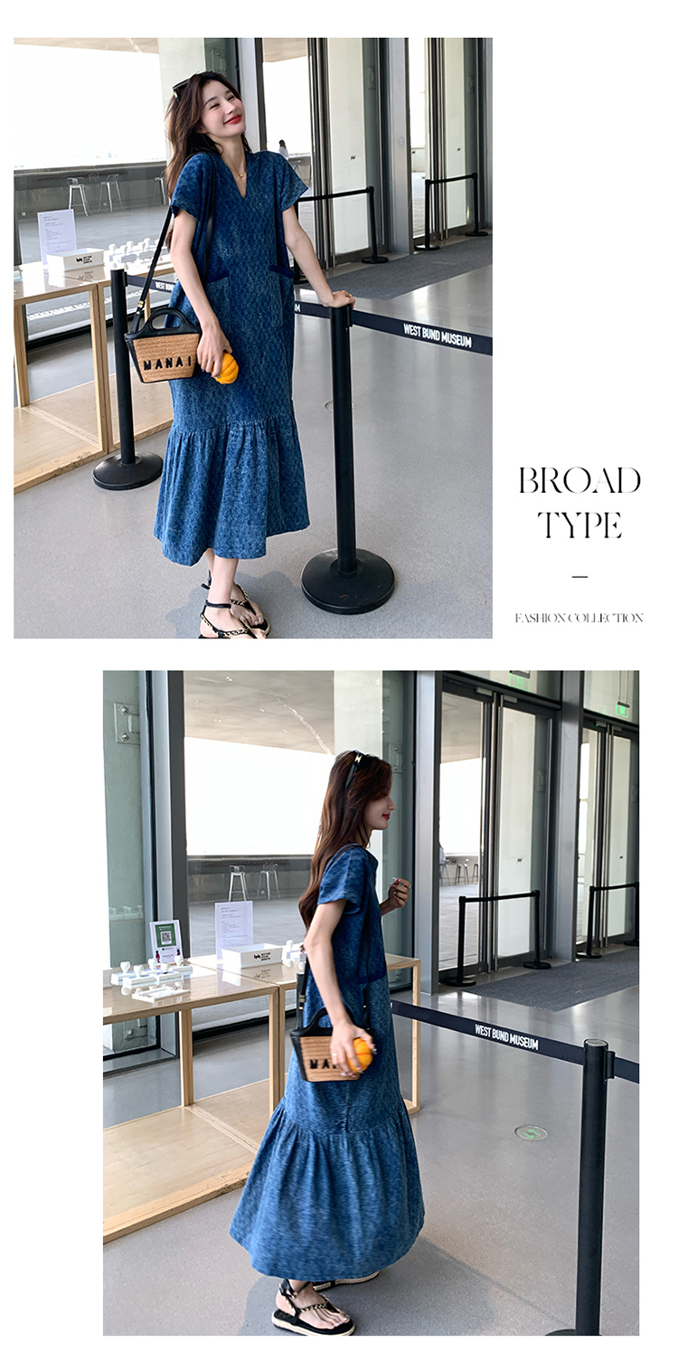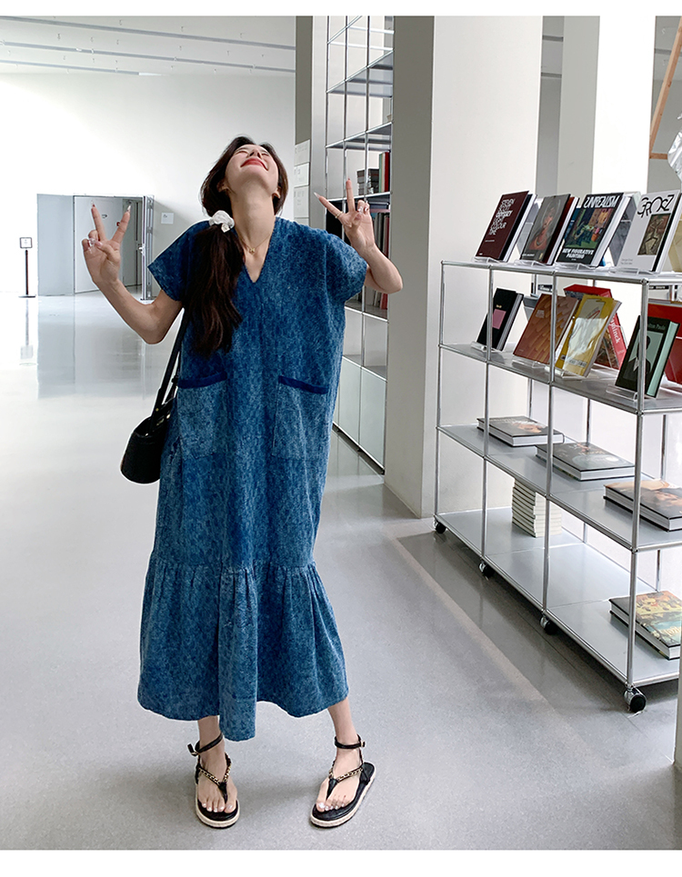 獨家訂製│韓系甜姊兒V領大口袋牛仔魚尾連衣裙(06H6631)