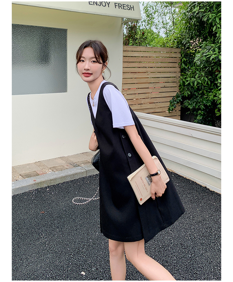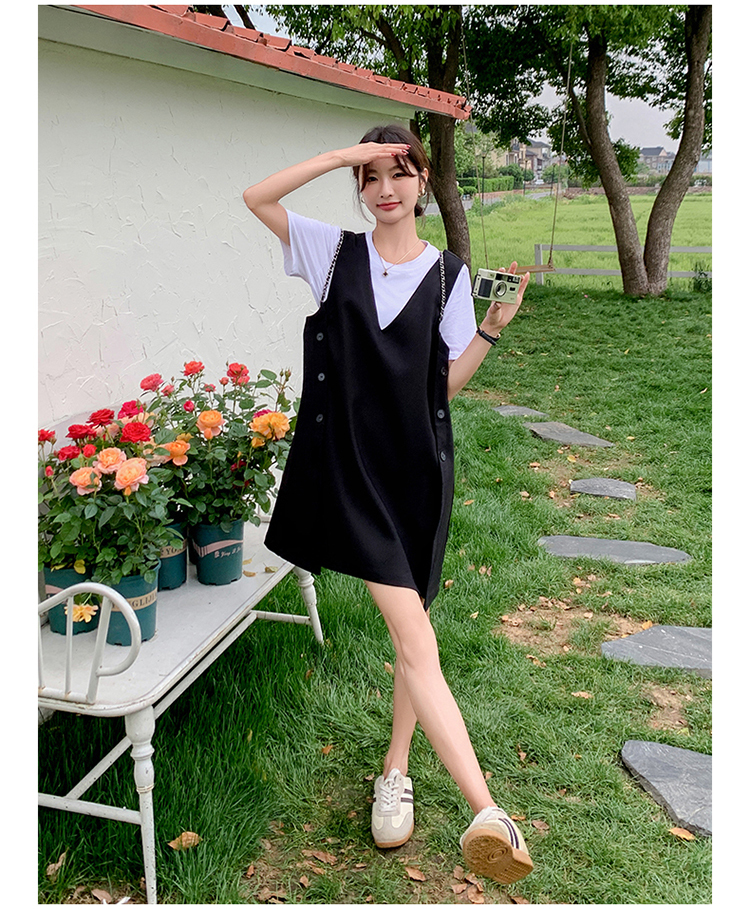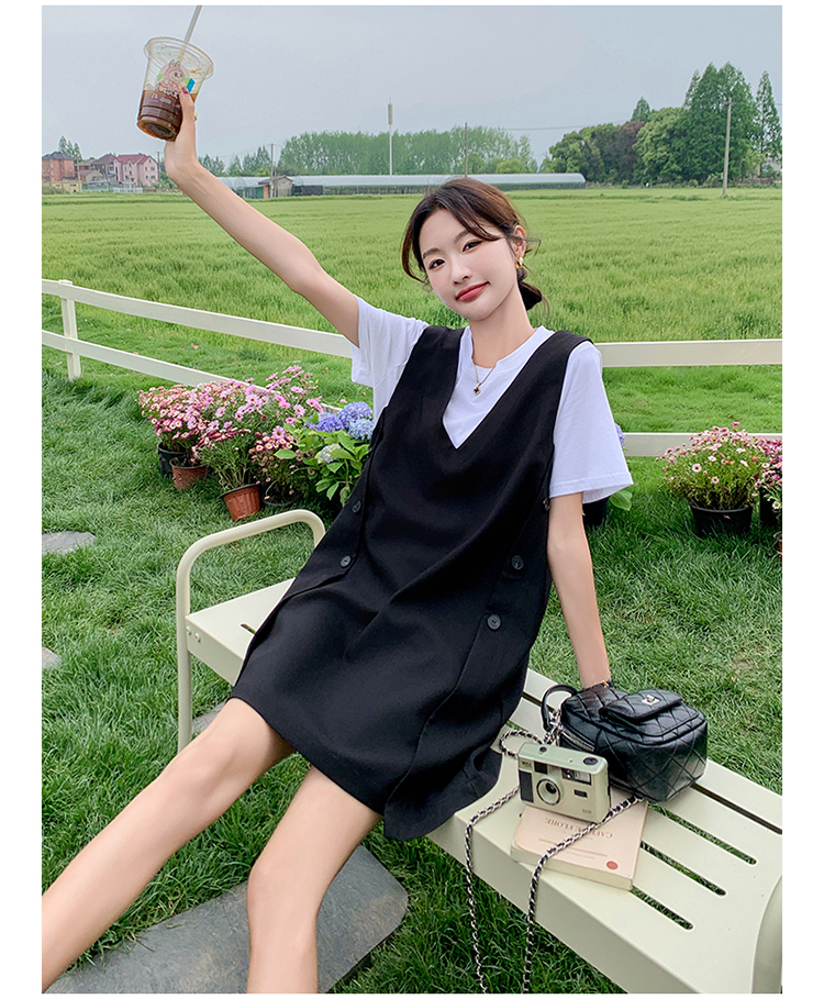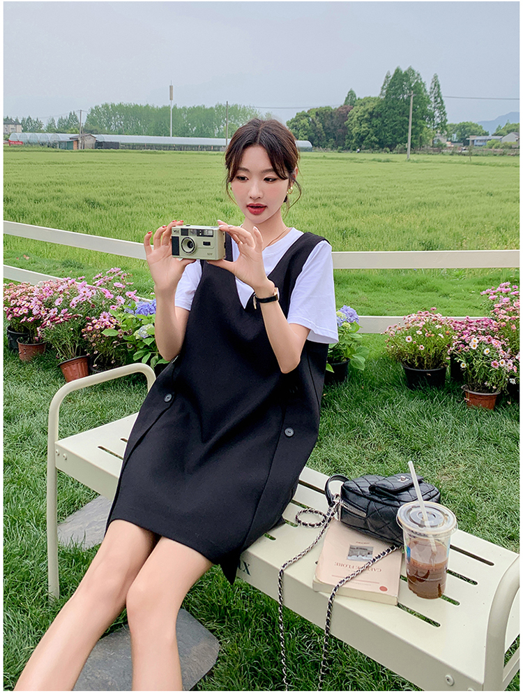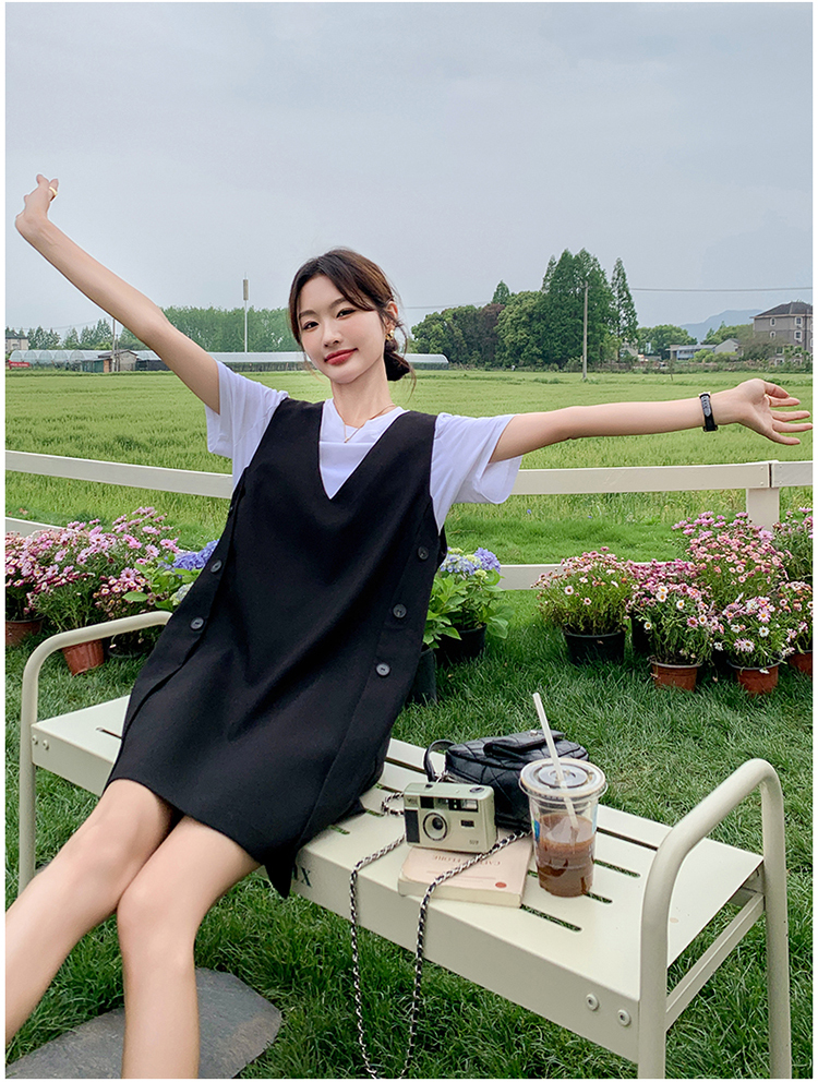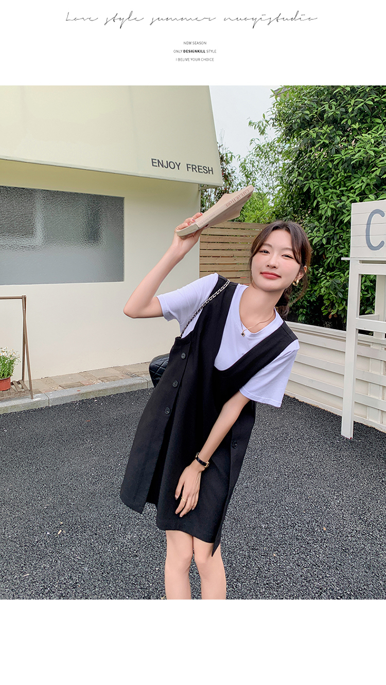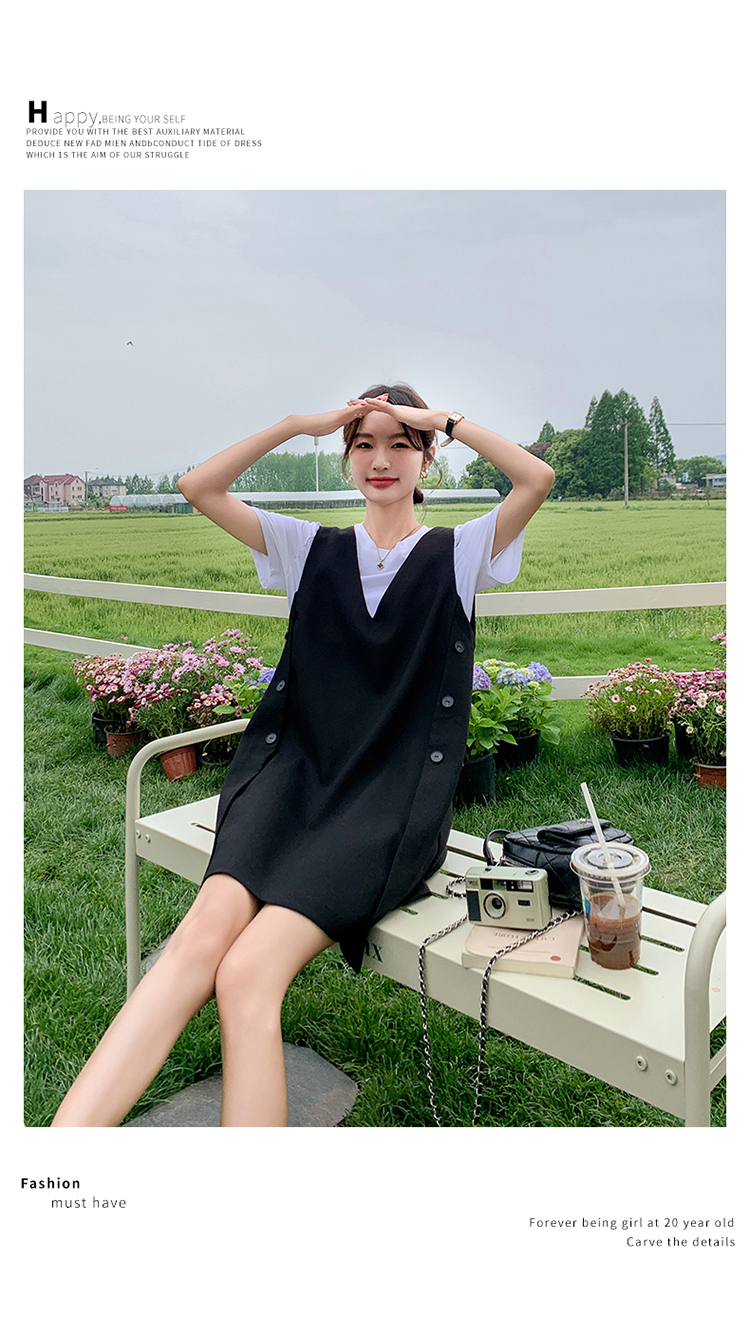 獨家訂製│韓系知性感T恤+排釦背心裙兩件式套裝組(06H6660)