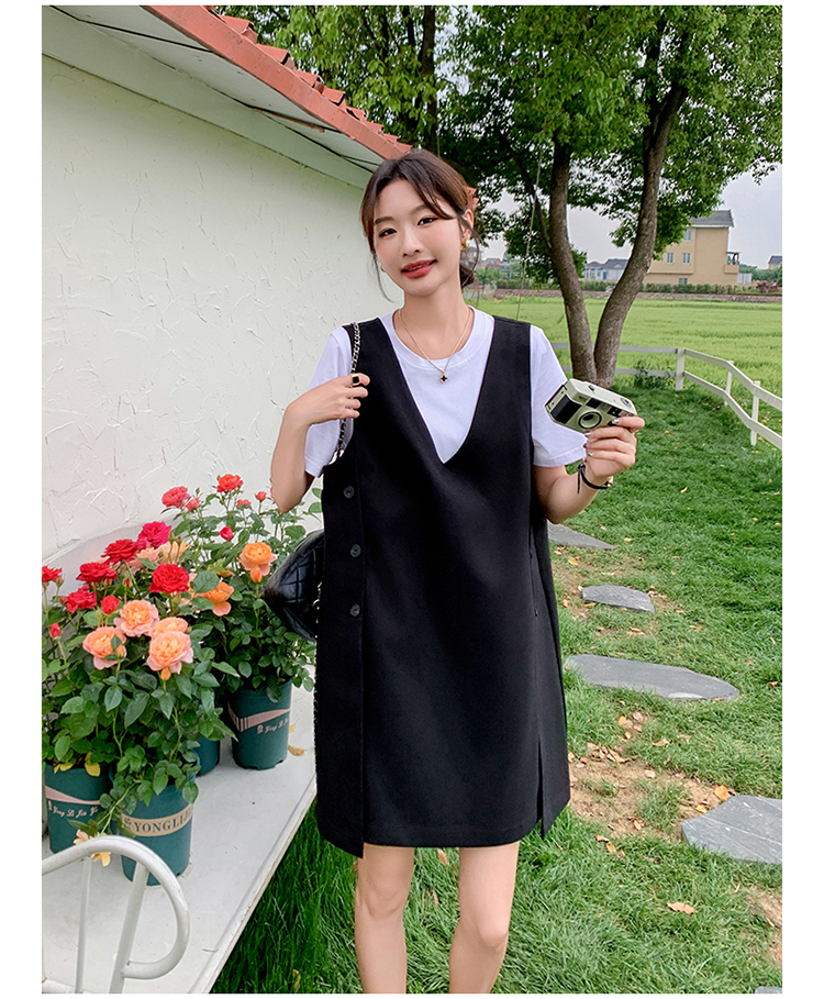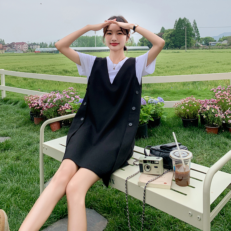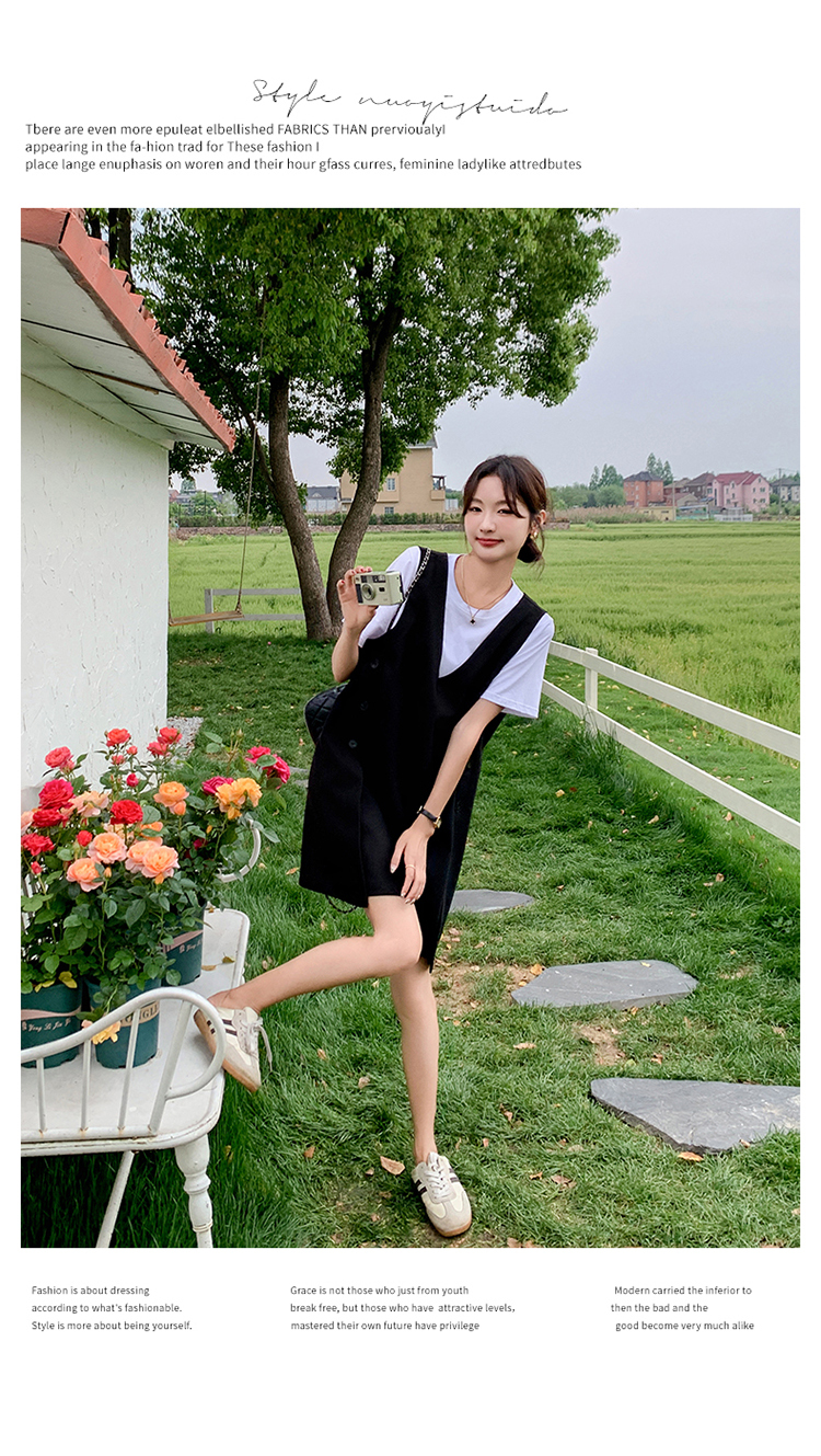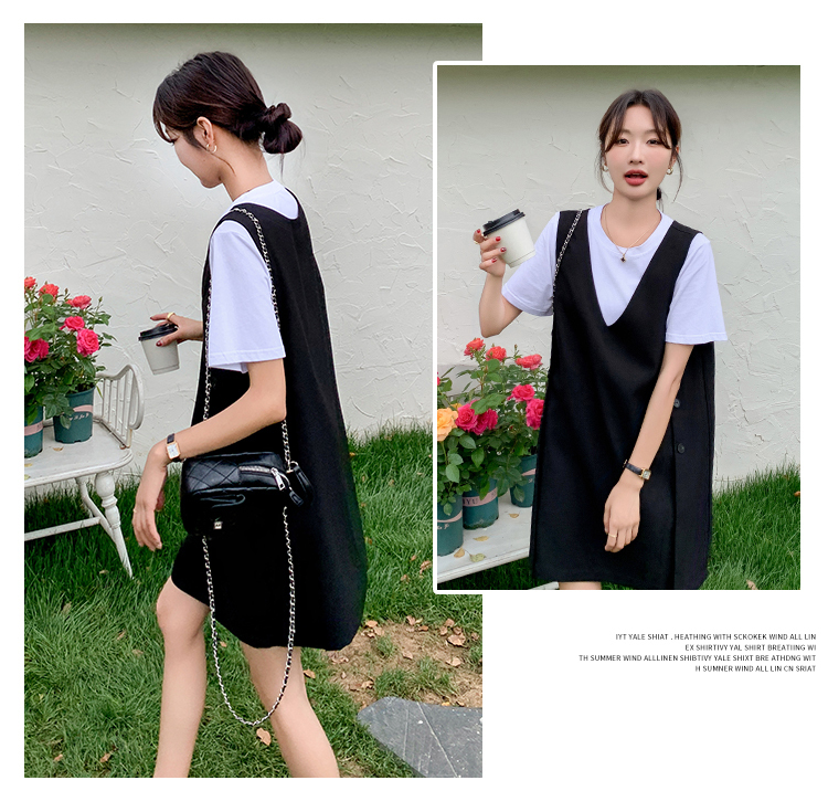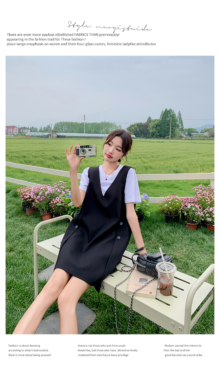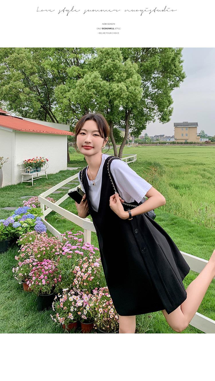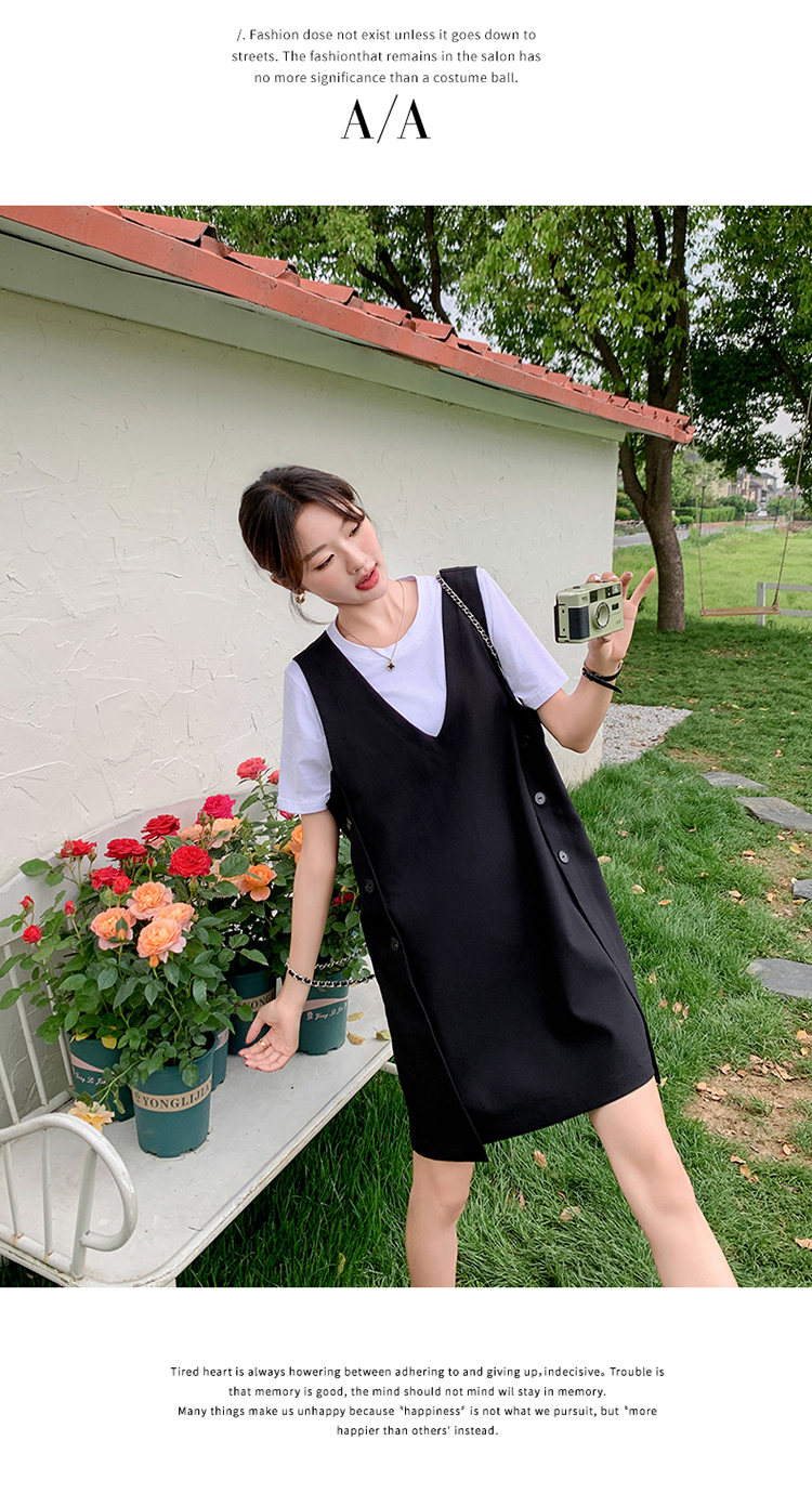 獨家訂製│韓系知性感T恤+排釦背心裙兩件式套裝組(06H6660)