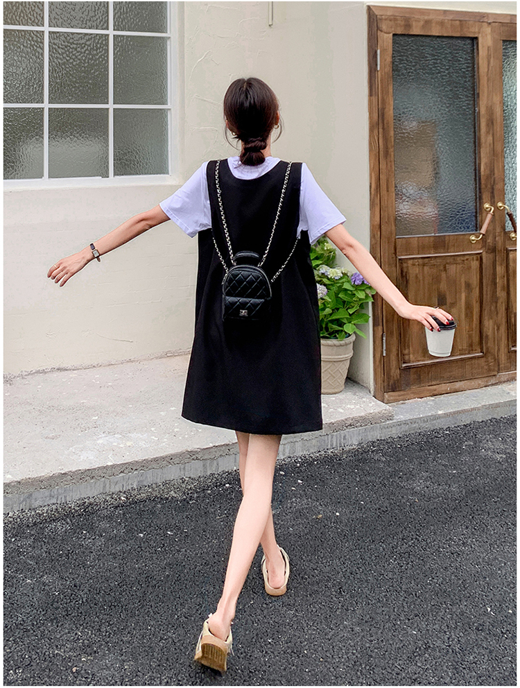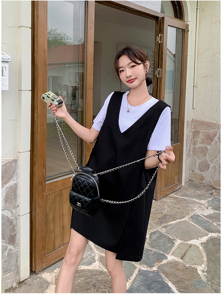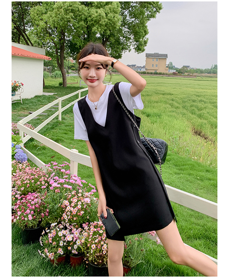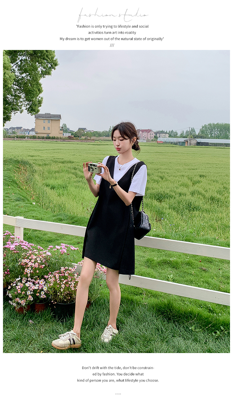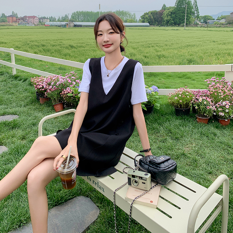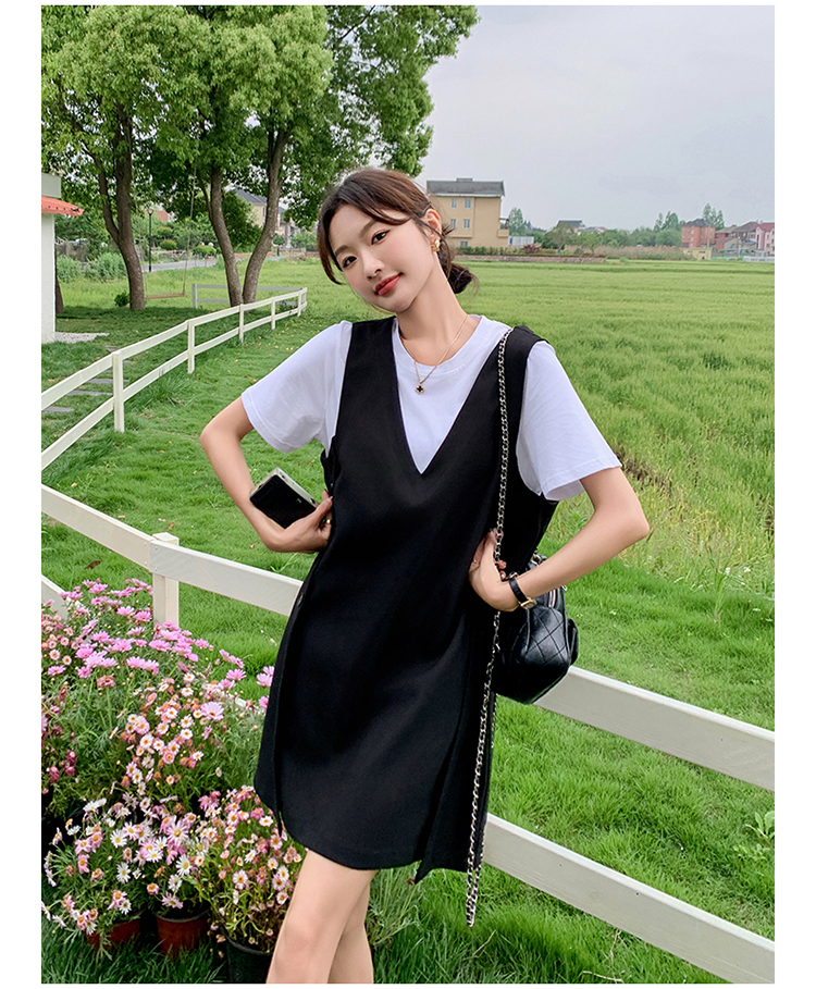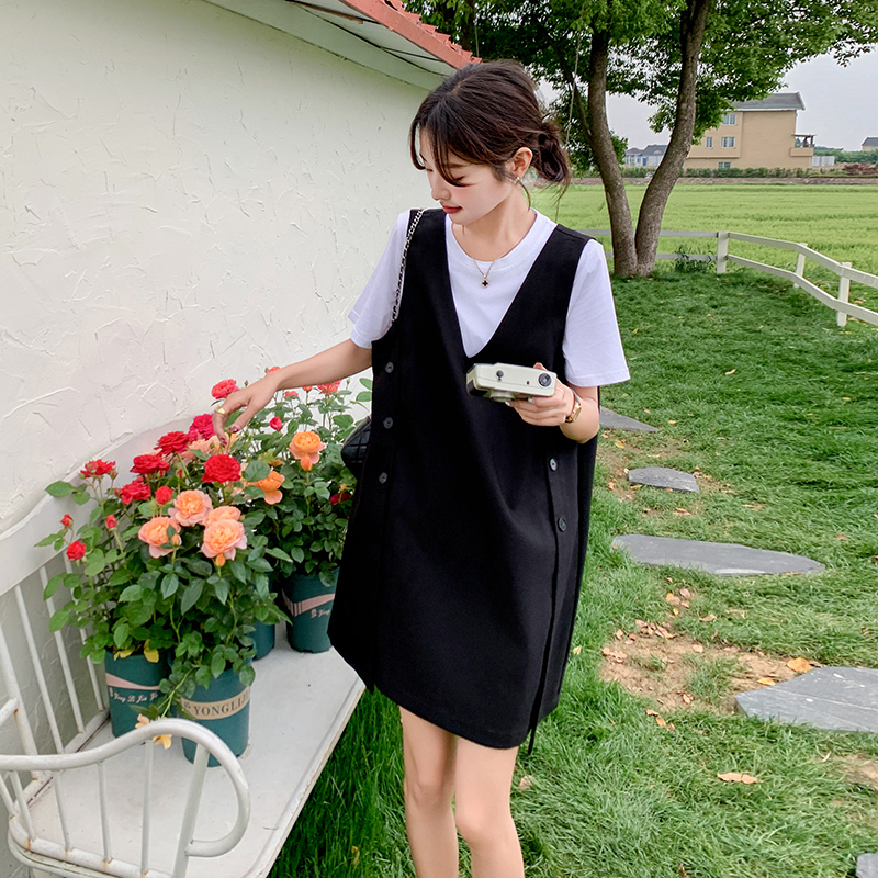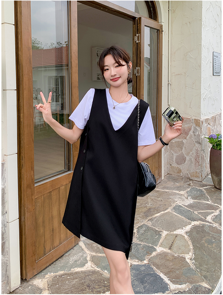 獨家訂製│韓系知性感T恤+排釦背心裙兩件式套裝組(06H6660)