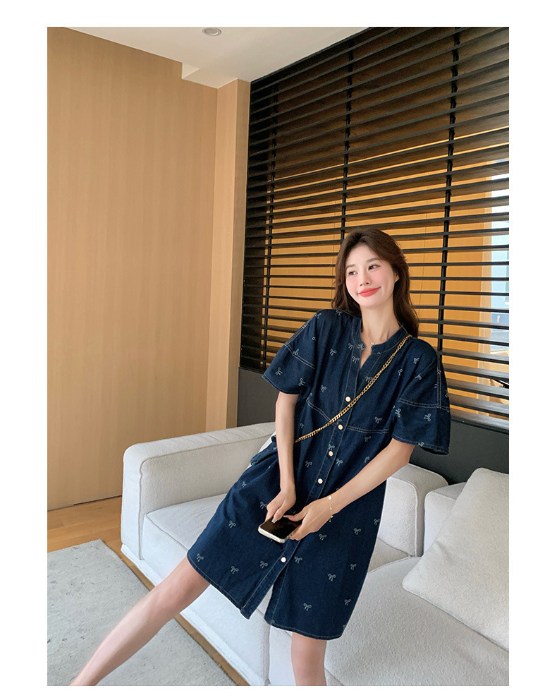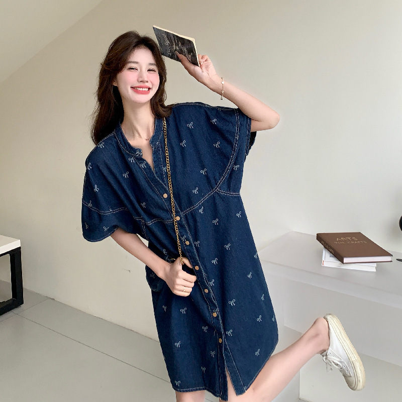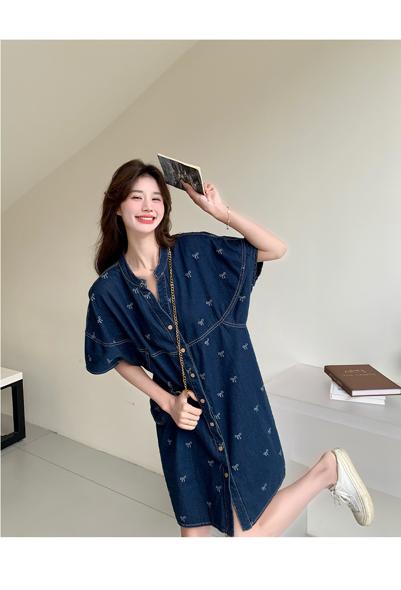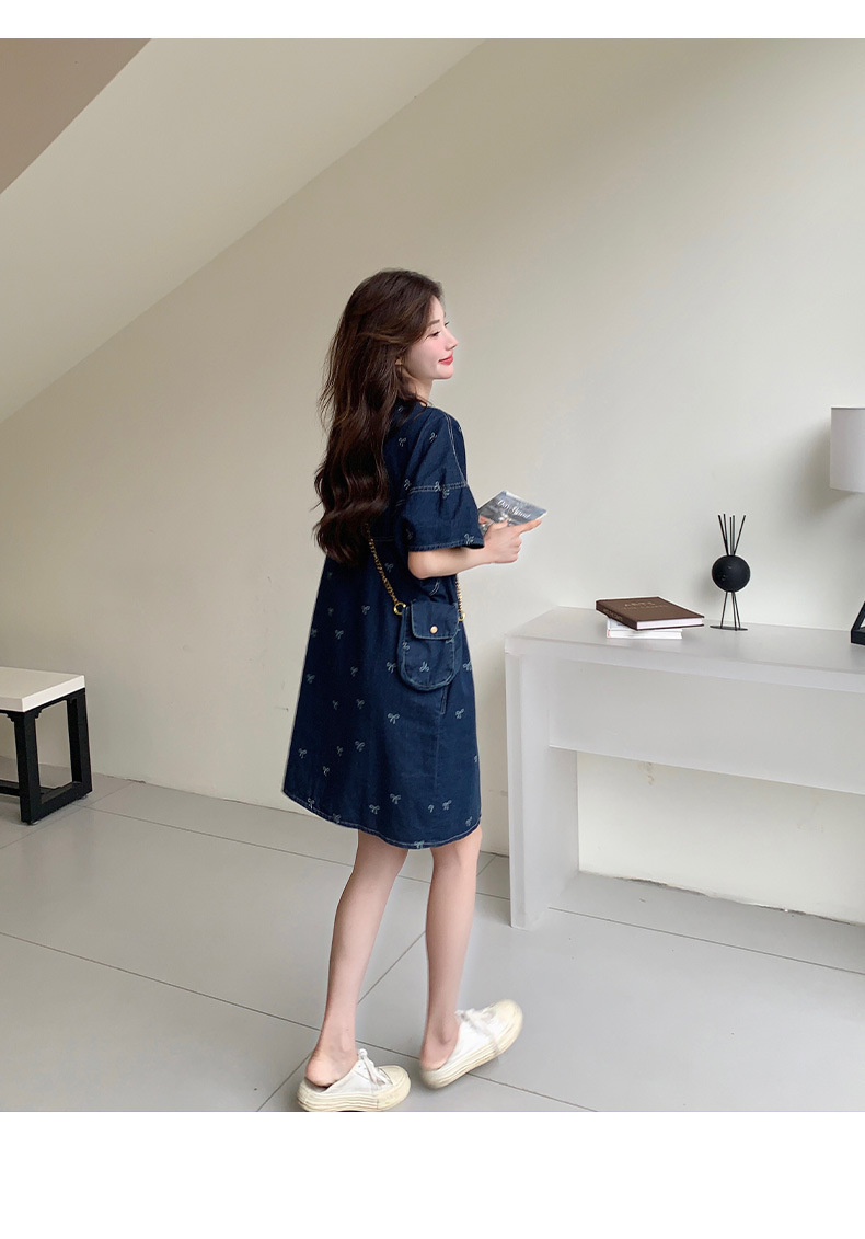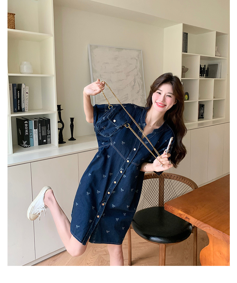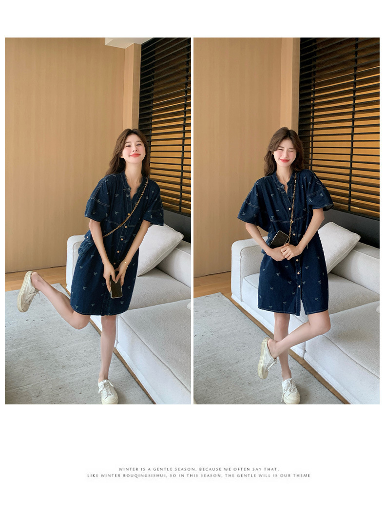 獨家訂製│韓系甜姐兒刺繡牛仔連衣裙(06H6698)