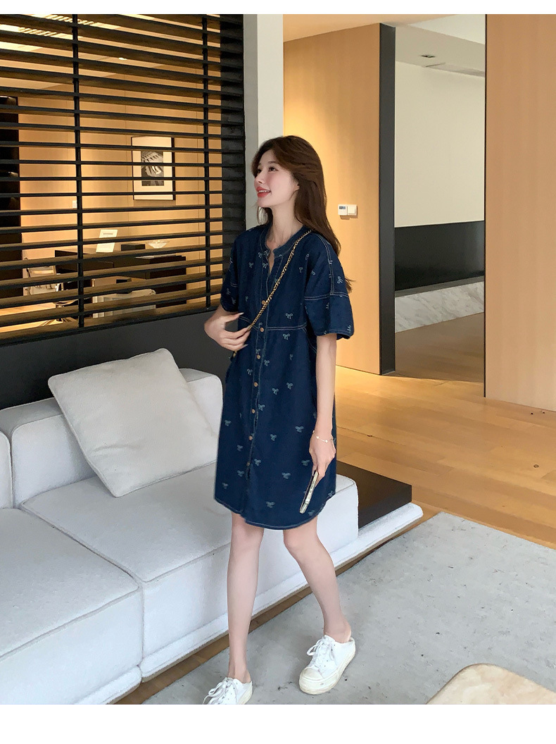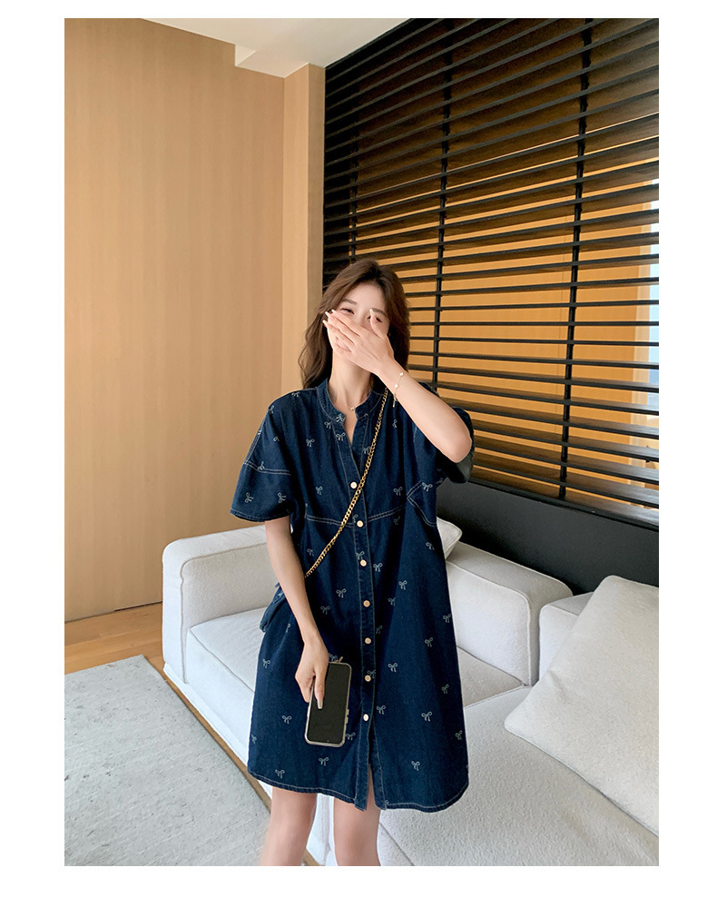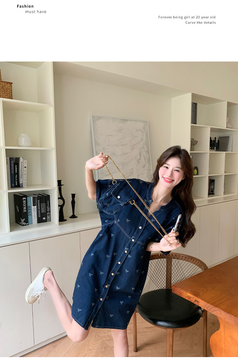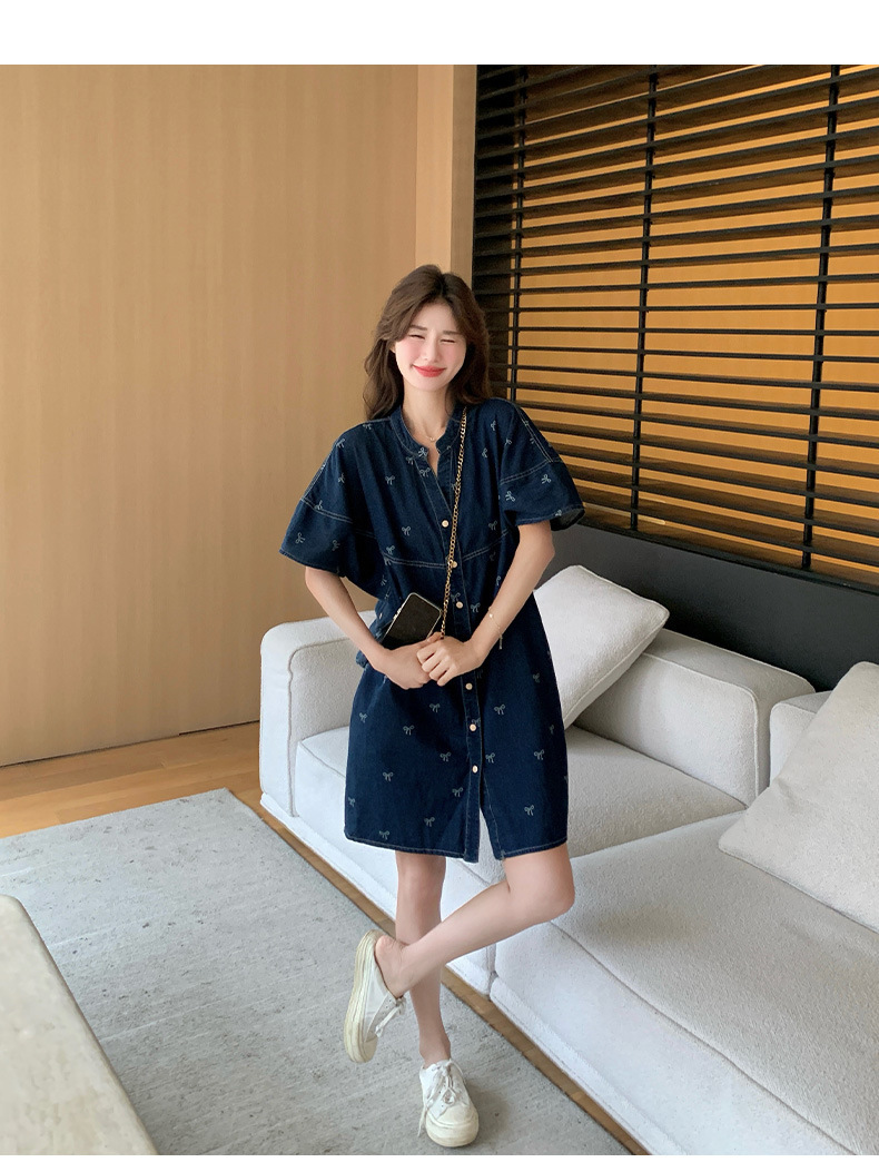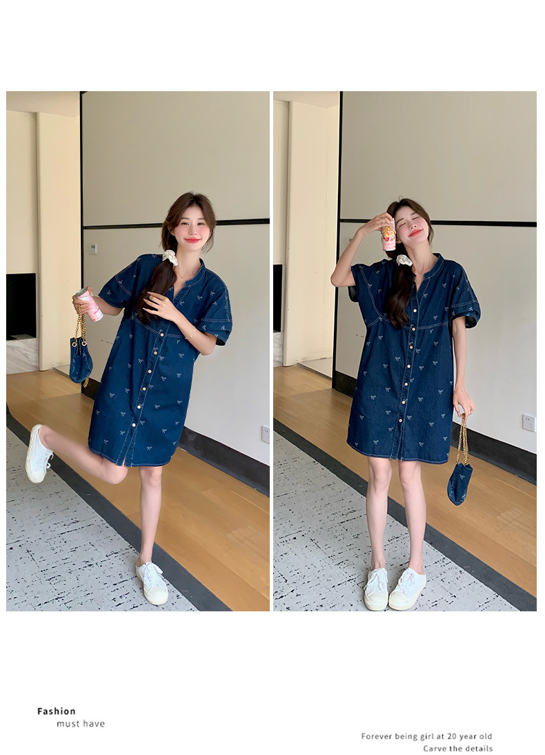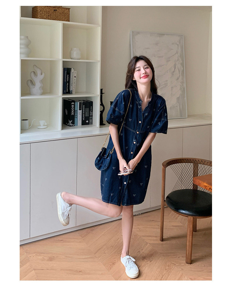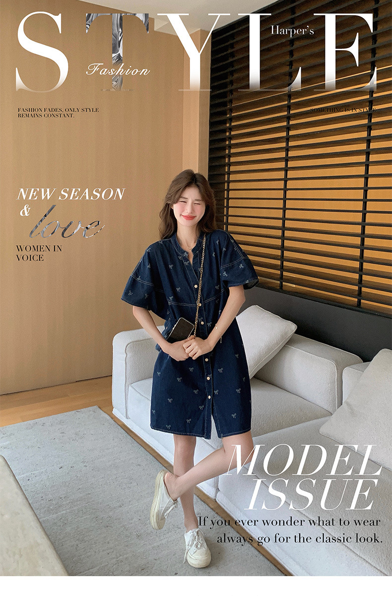 獨家訂製│韓系甜姐兒刺繡牛仔連衣裙(06H6698)
