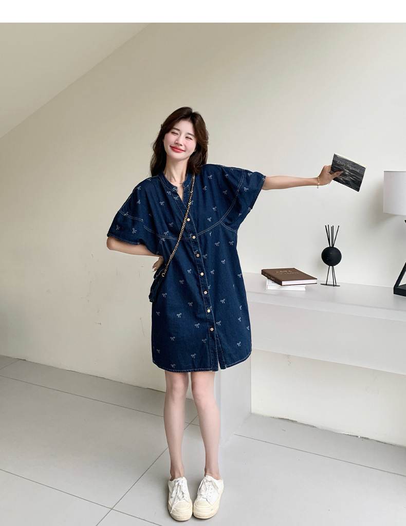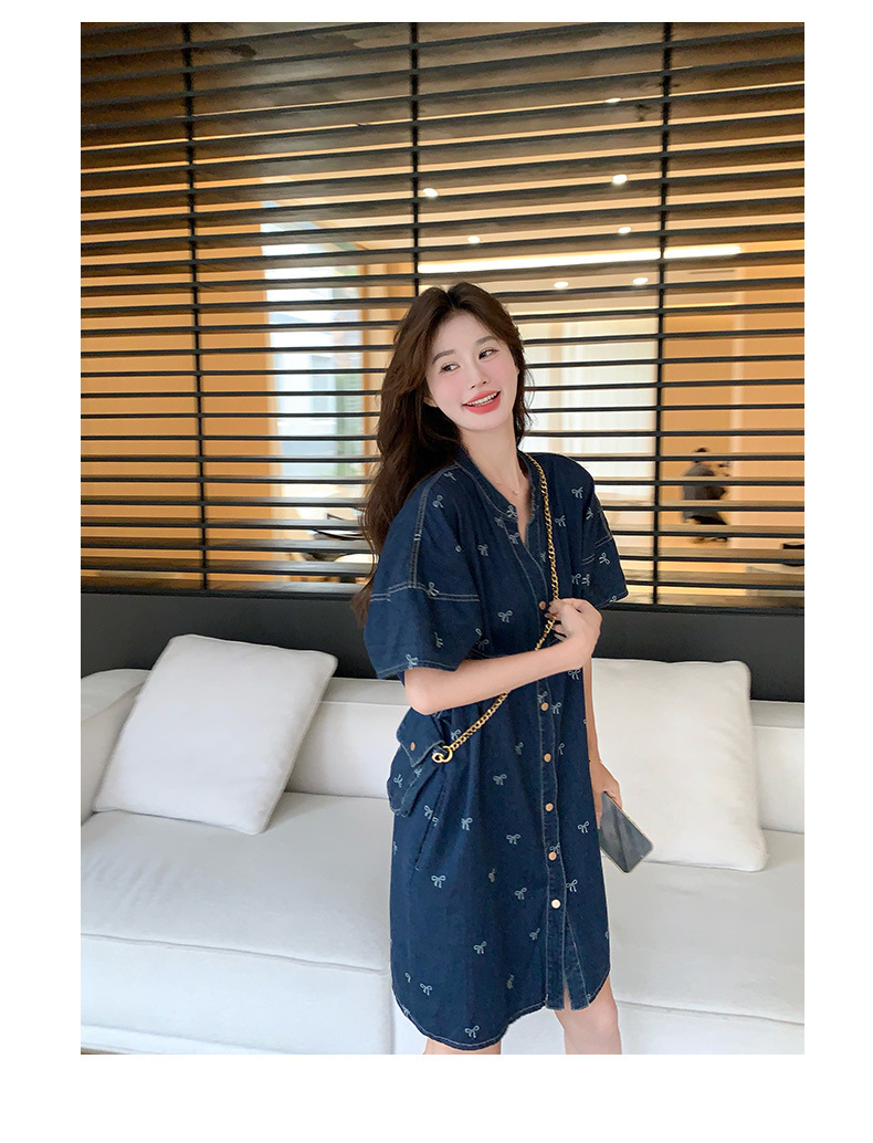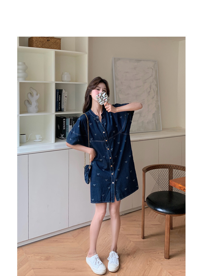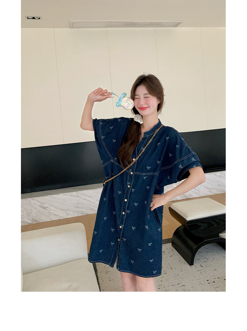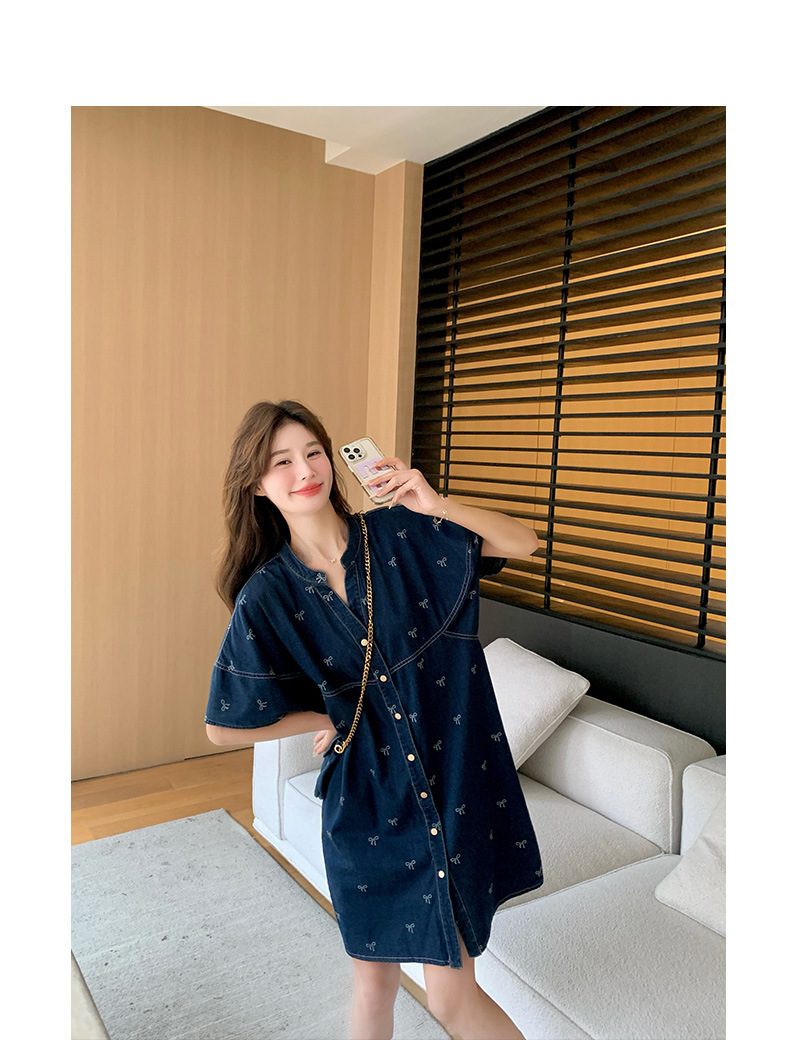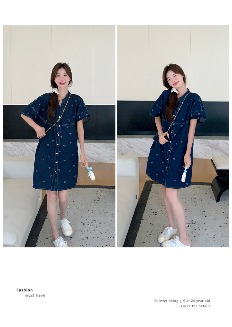 獨家訂製│韓系甜姐兒刺繡牛仔連衣裙(06H6698)