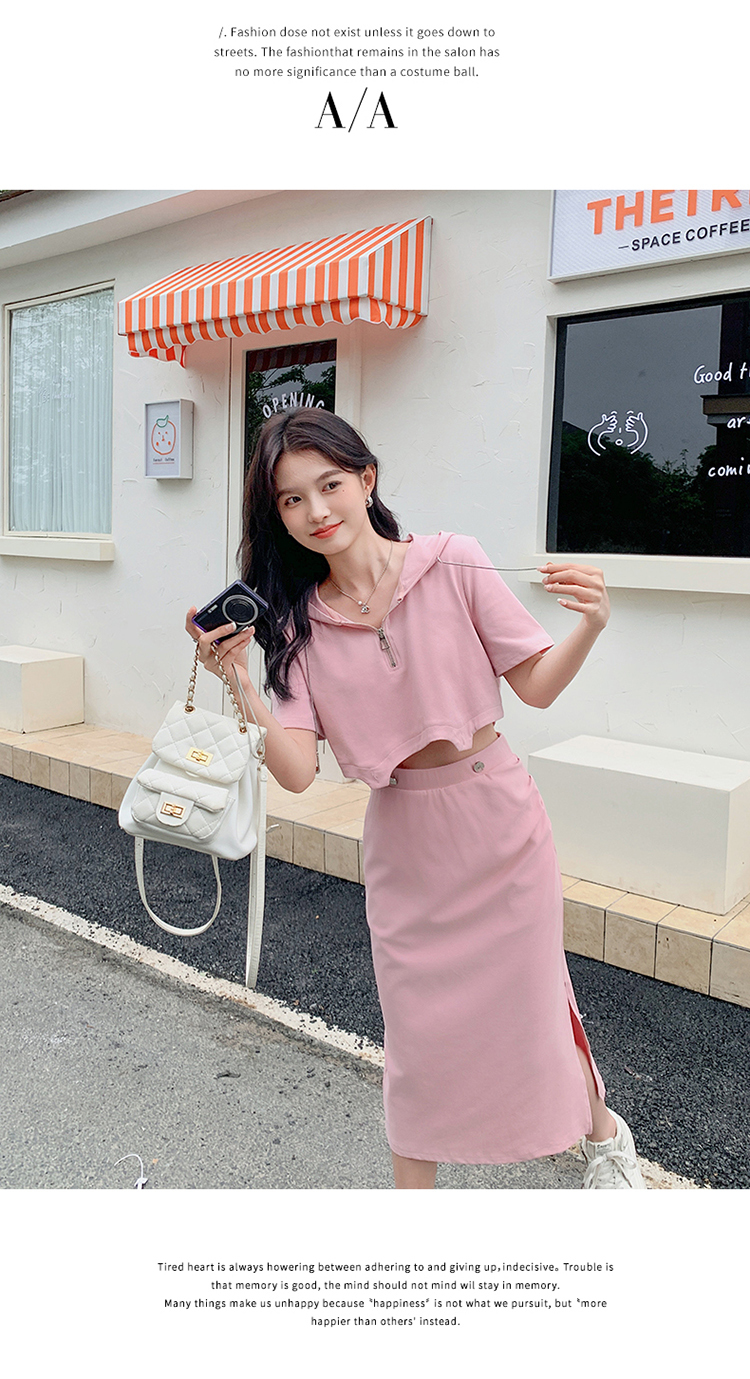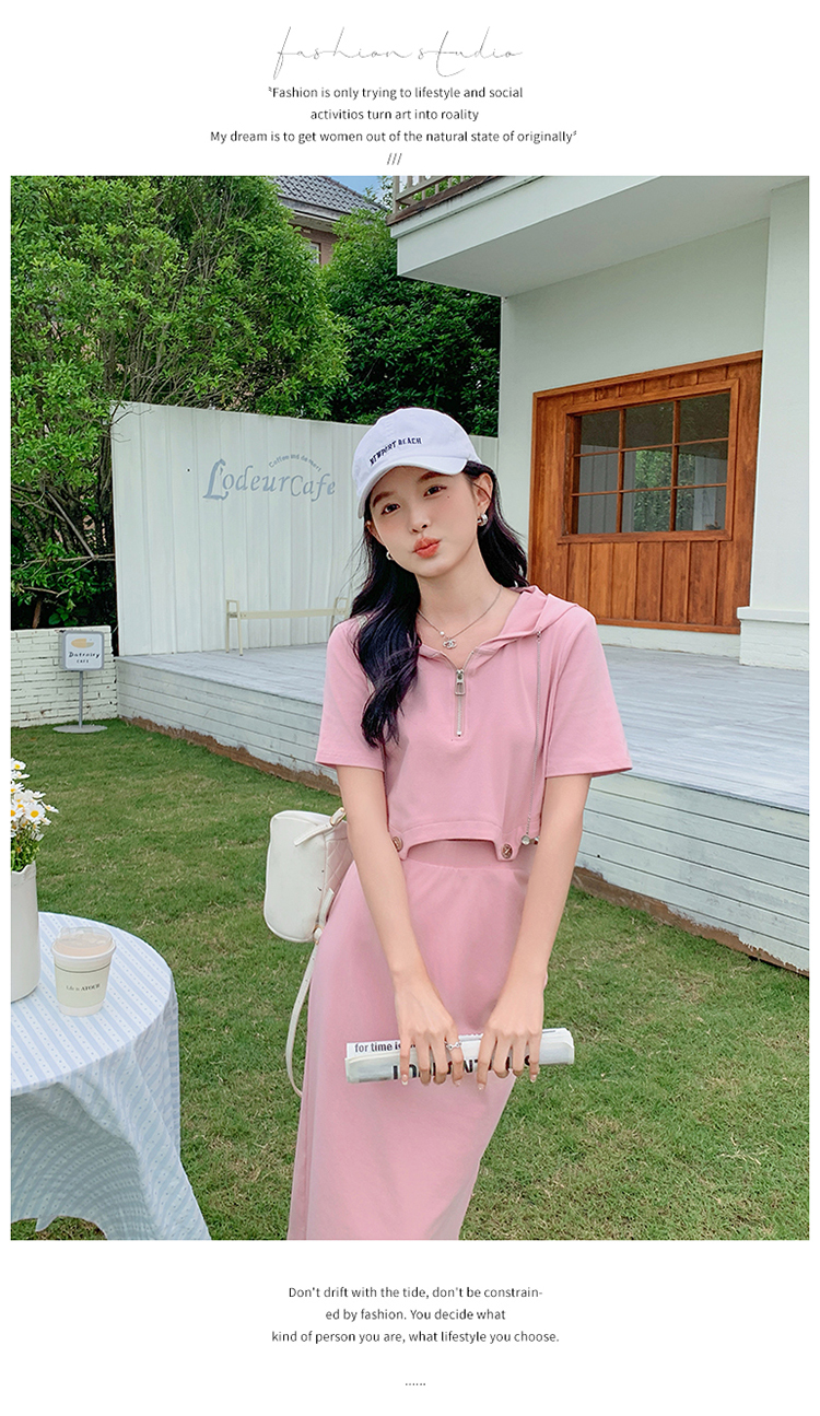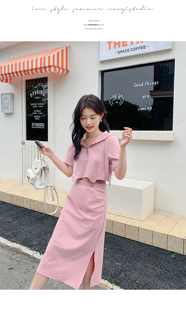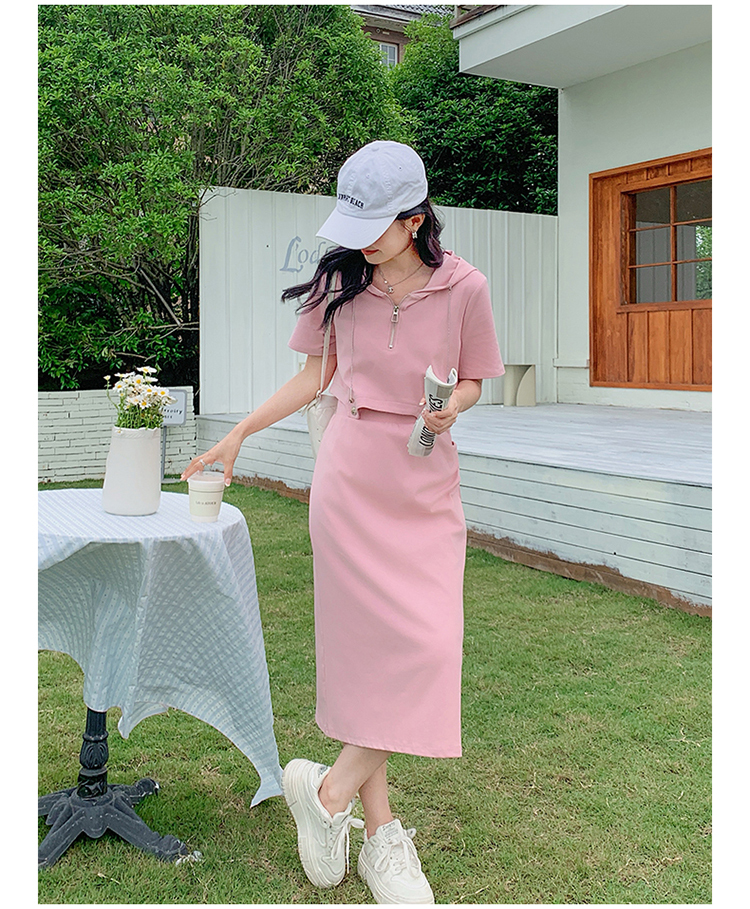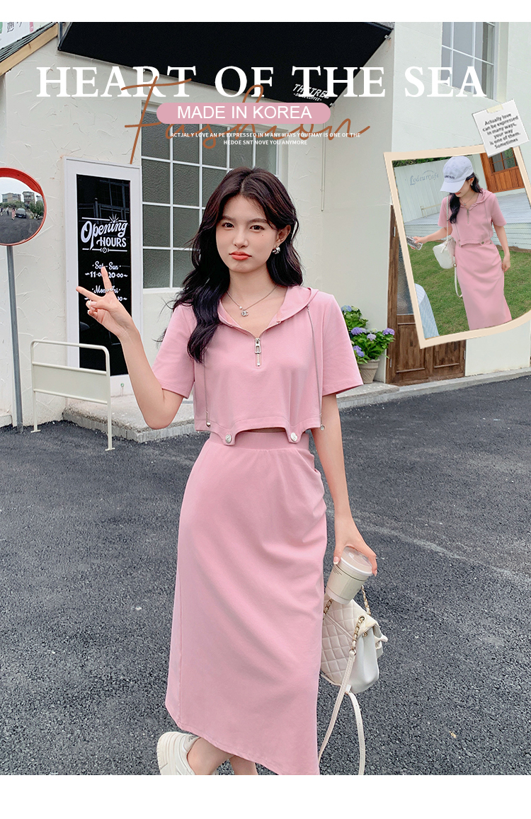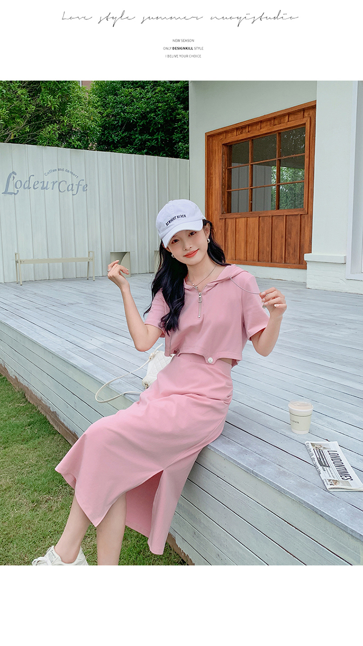 獨家訂製│2穿 韓系甜美感連帽T+A字裙兩件式套裝組(06H6764)