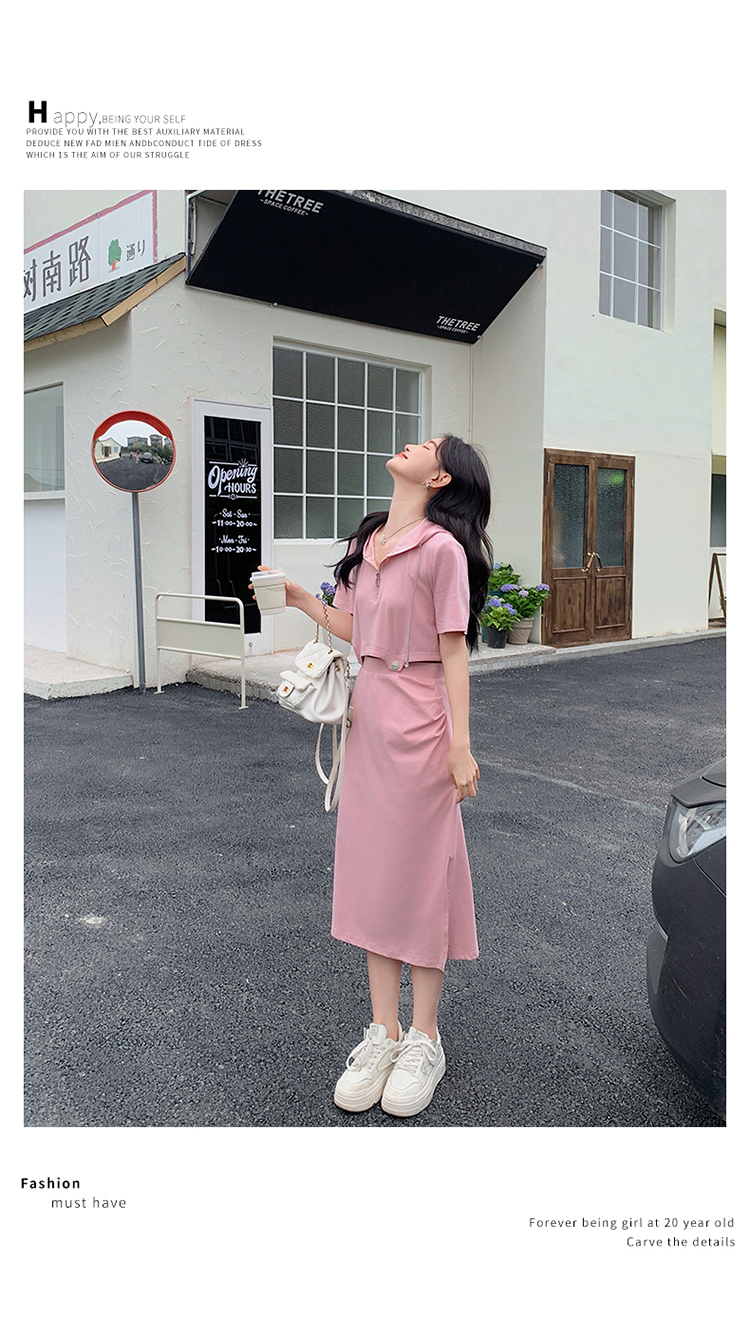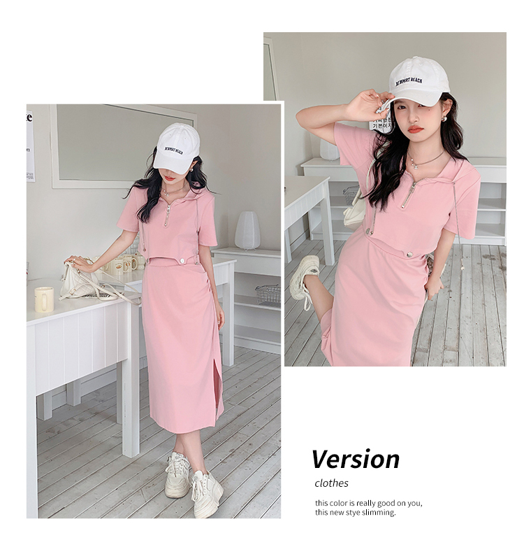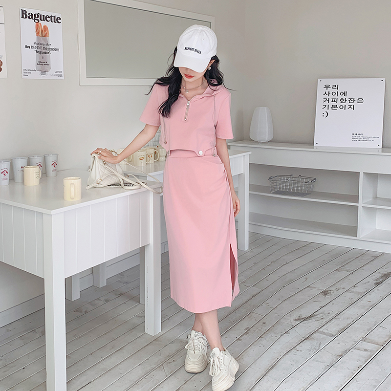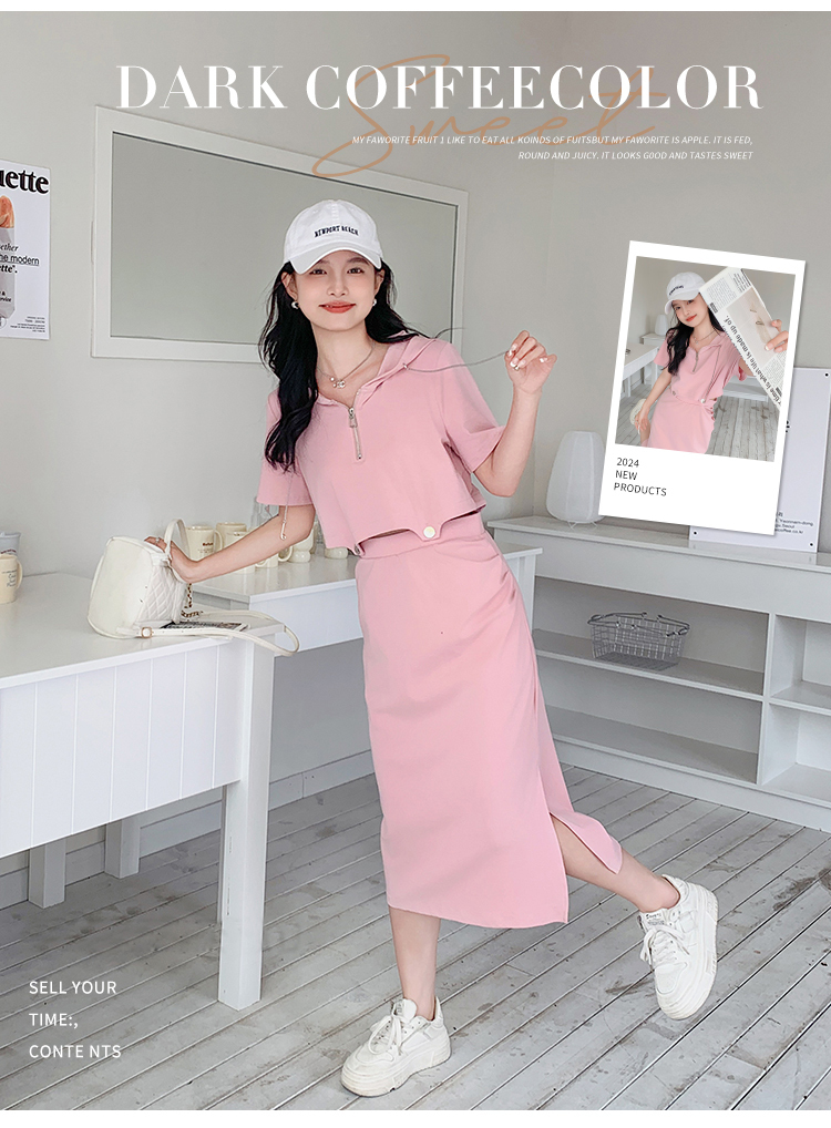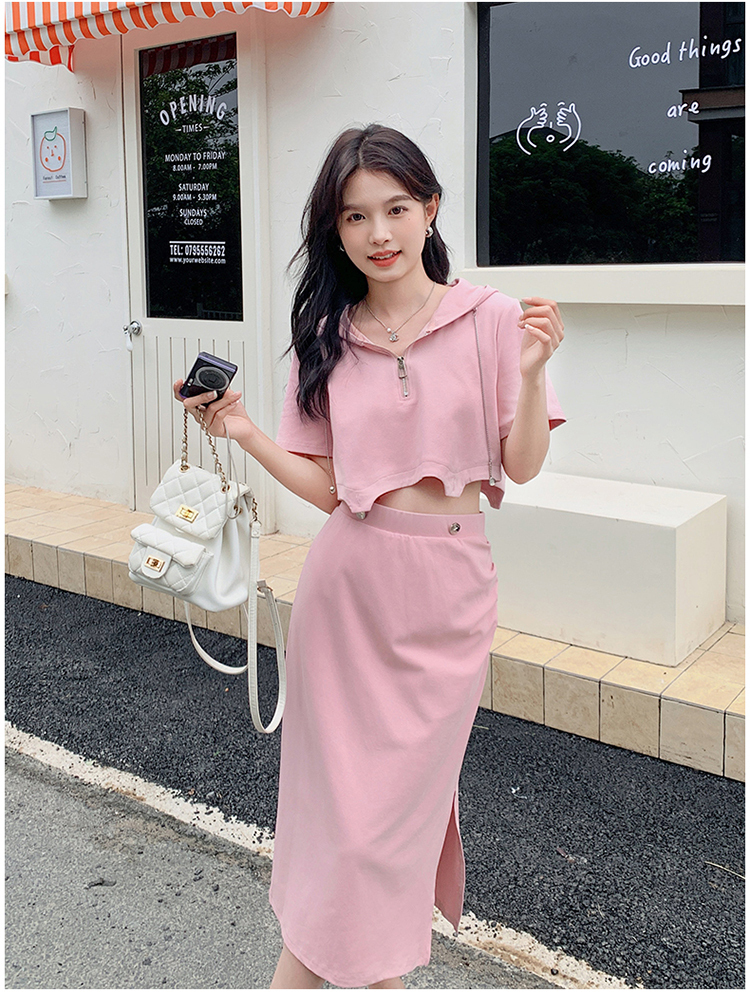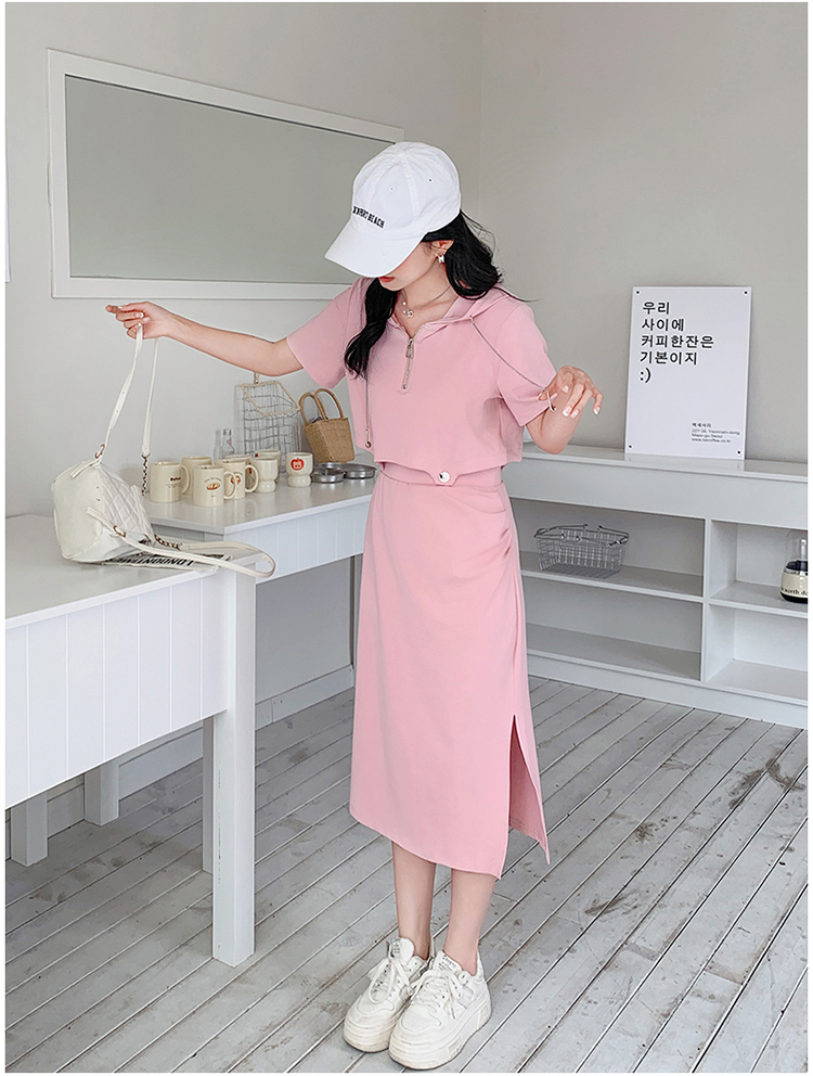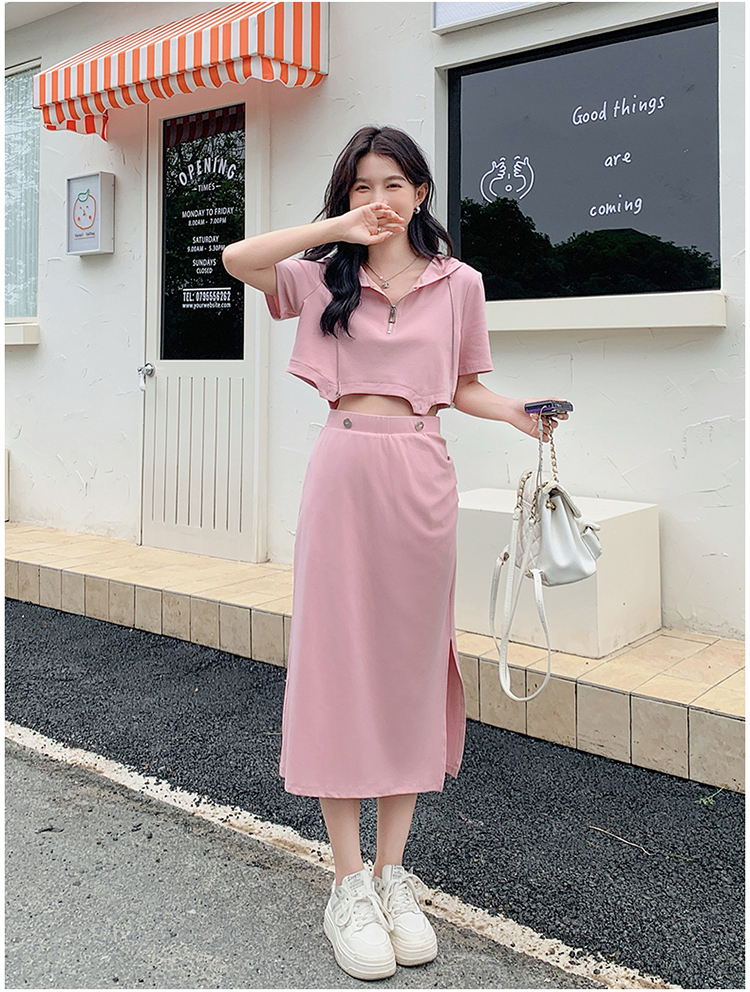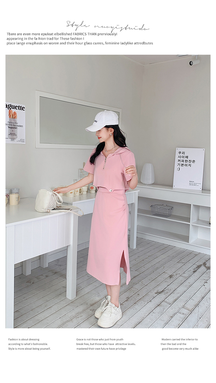 獨家訂製│2穿 韓系甜美感連帽T+A字裙兩件式套裝組(06H6764)