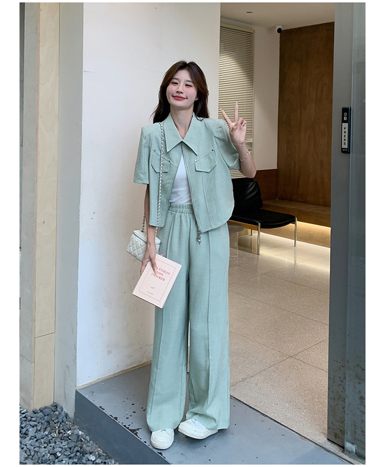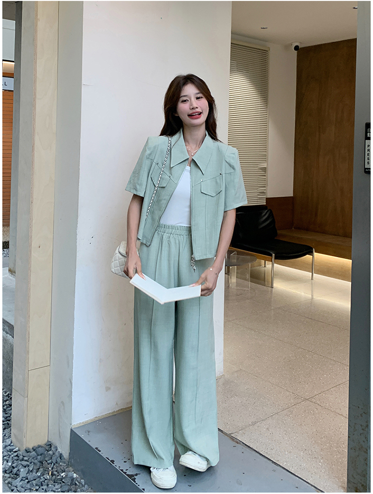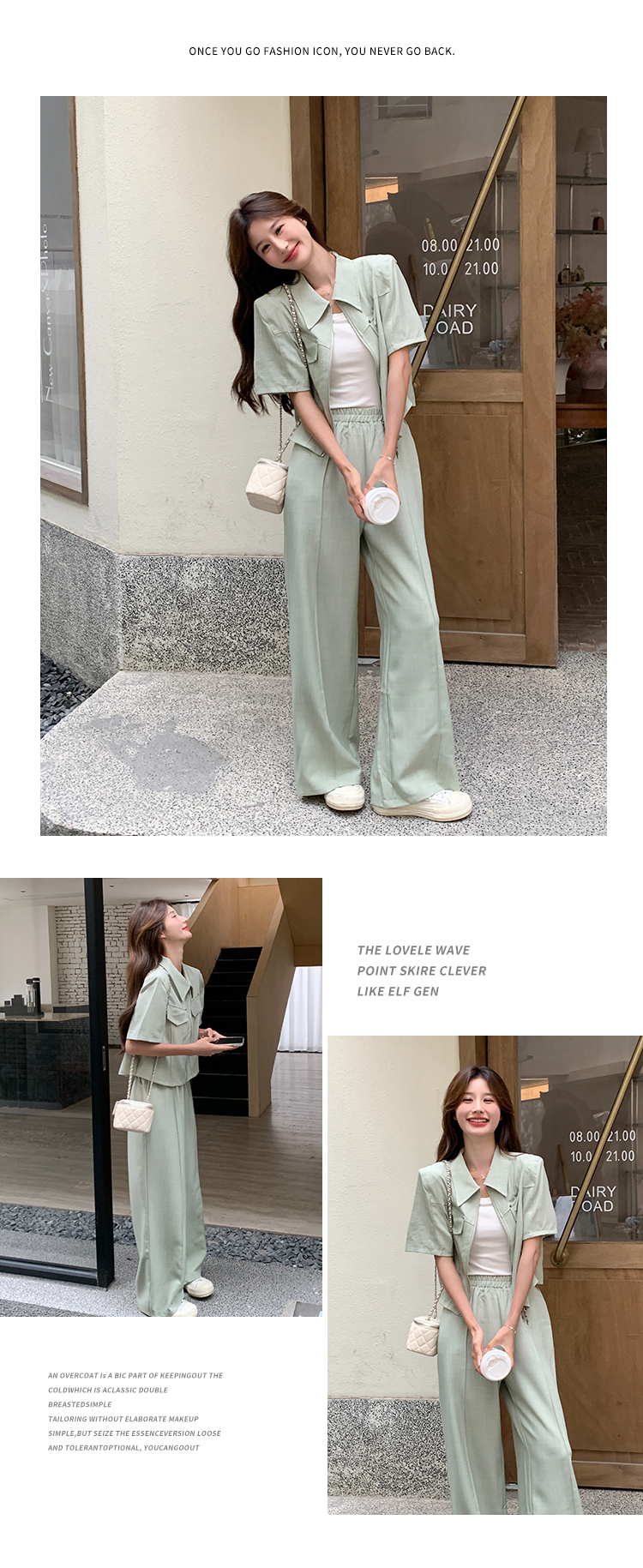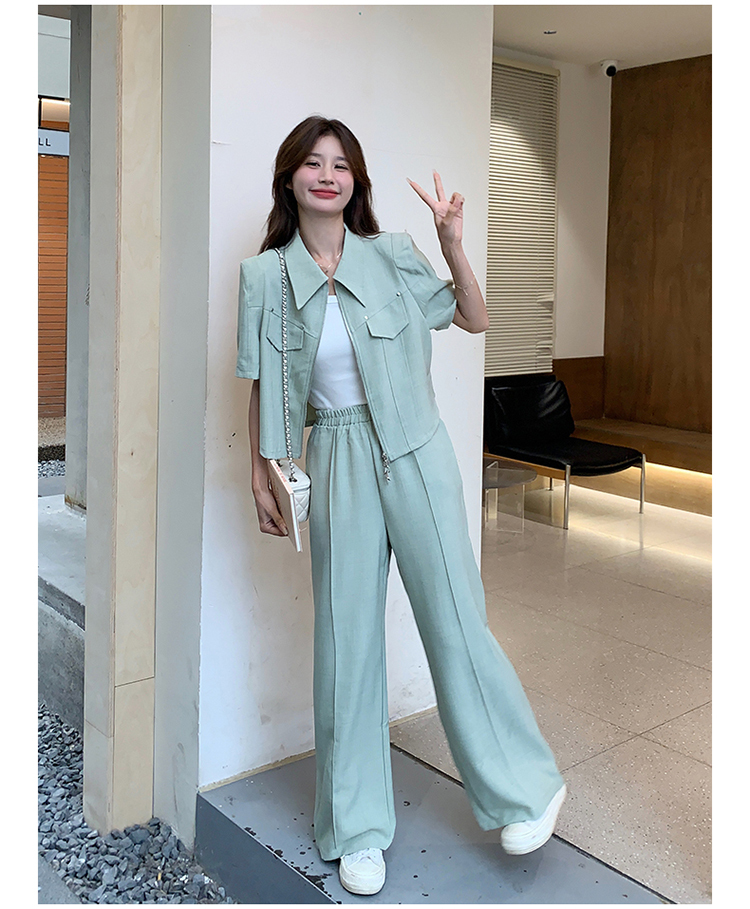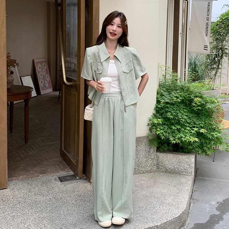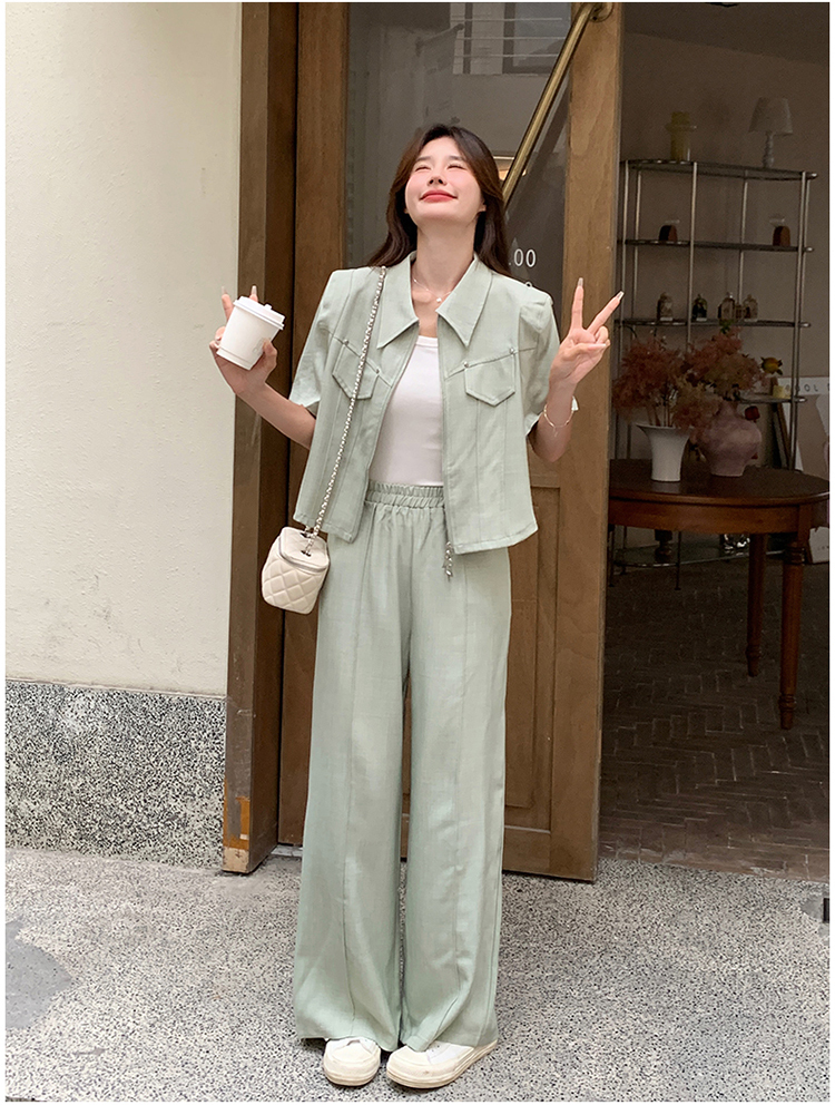 獨家訂製│韓系復古翻領拉鍊外套+闊腿褲兩件式套裝組(06H6770)