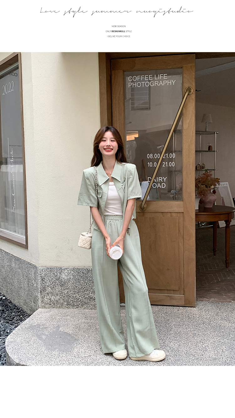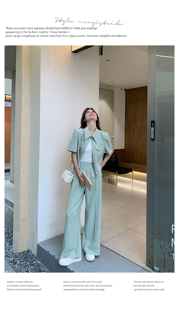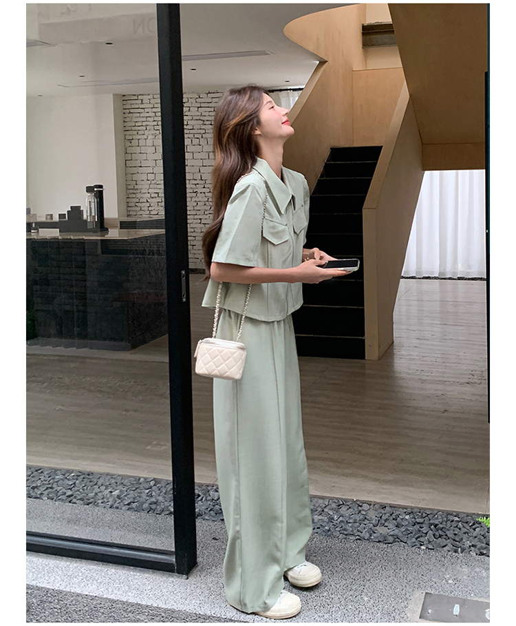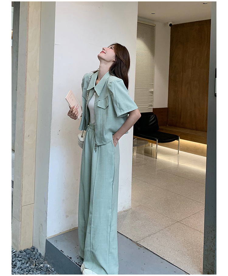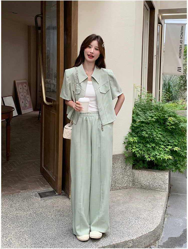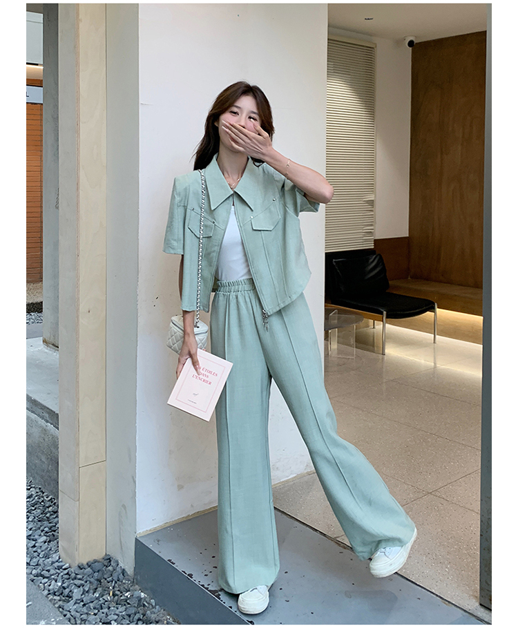 獨家訂製│韓系復古翻領拉鍊外套+闊腿褲兩件式套裝組(06H6770)
