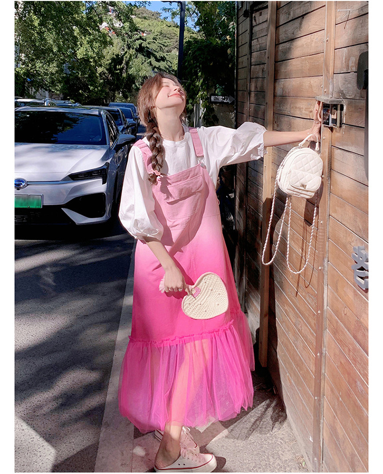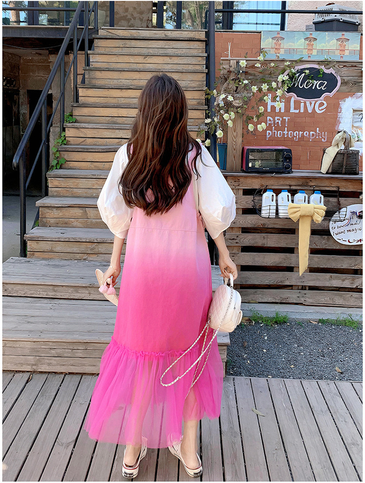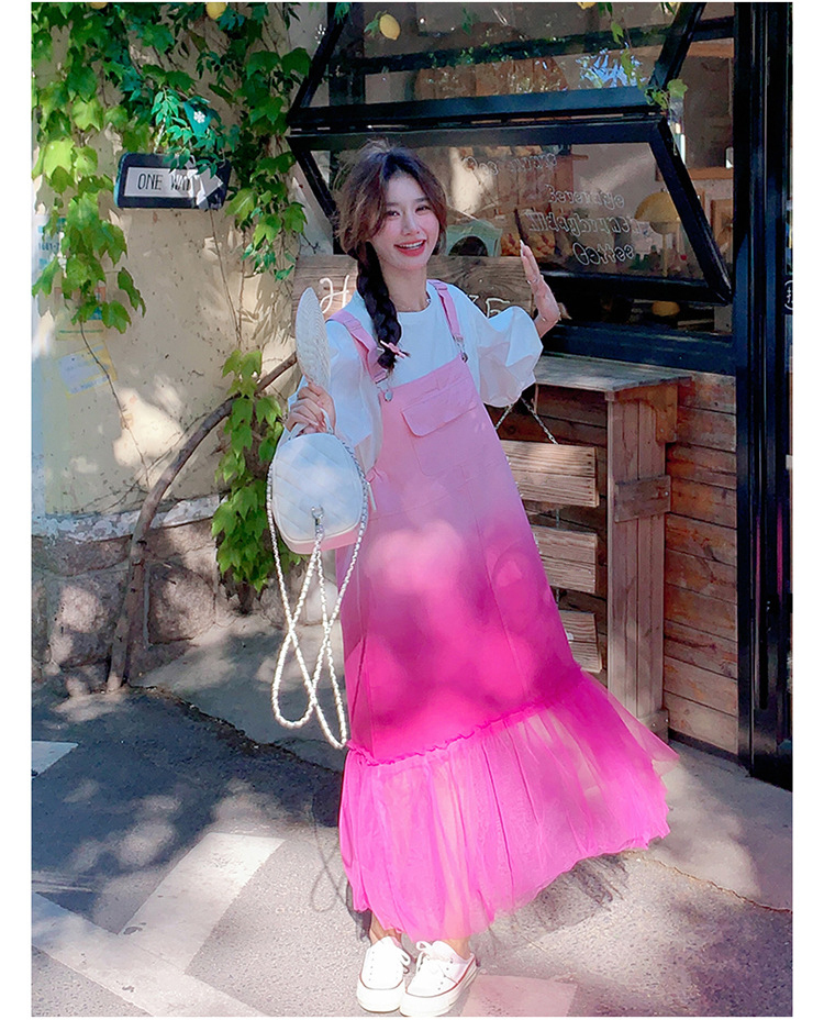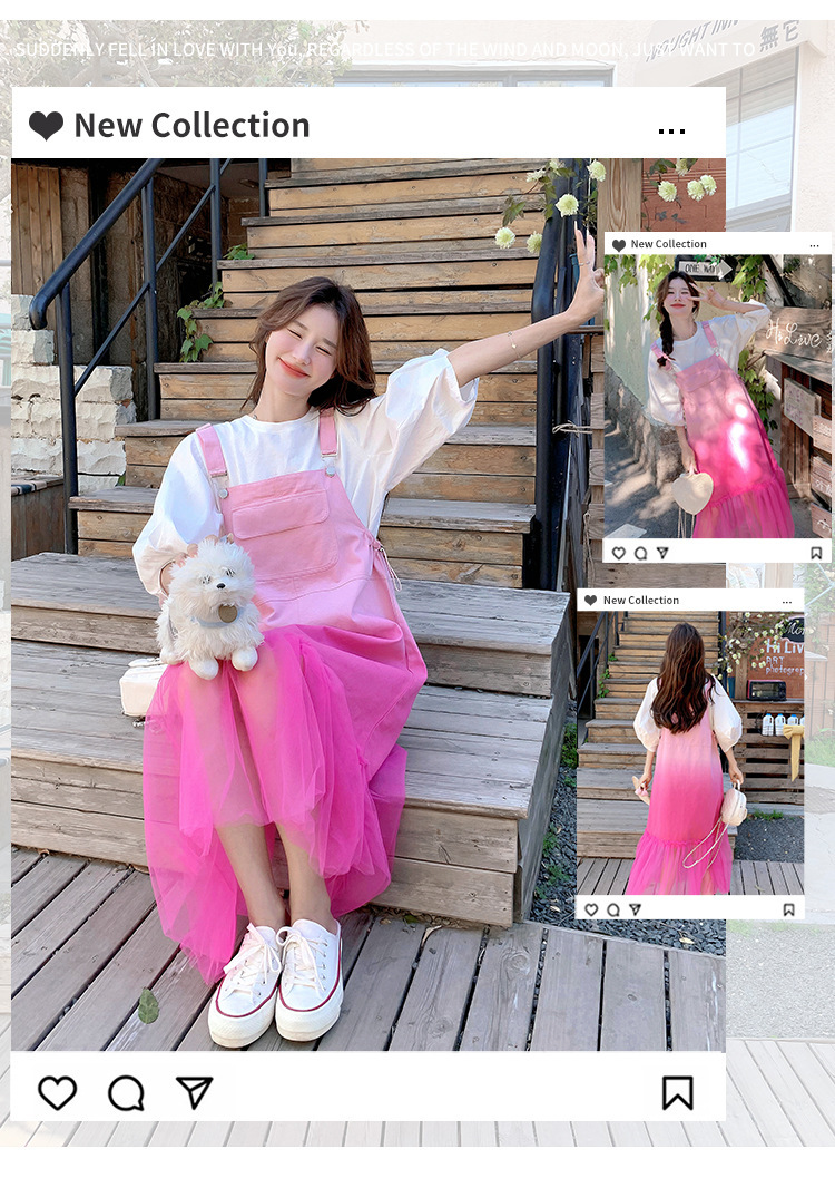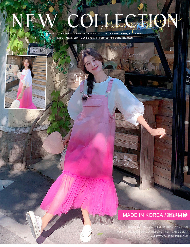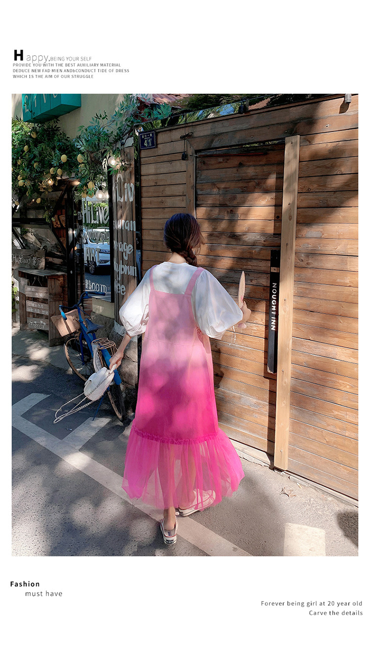 獨家訂製│韓系甜美感網紗裙襬拼接漸變色吊帶裙(06H6773)