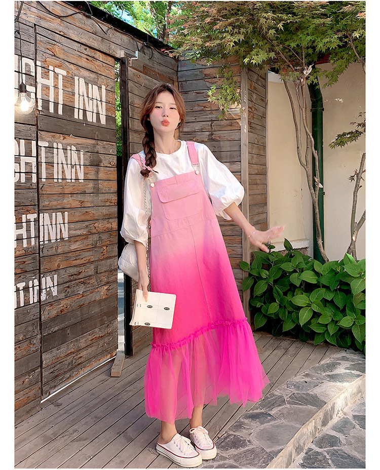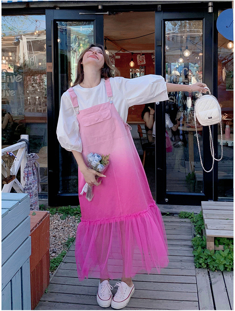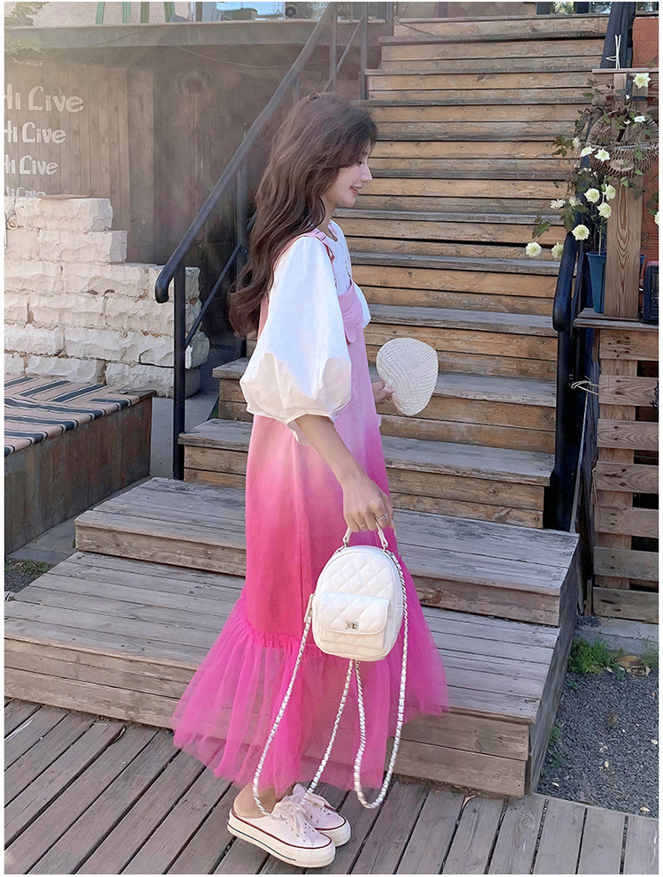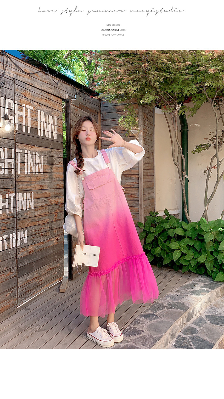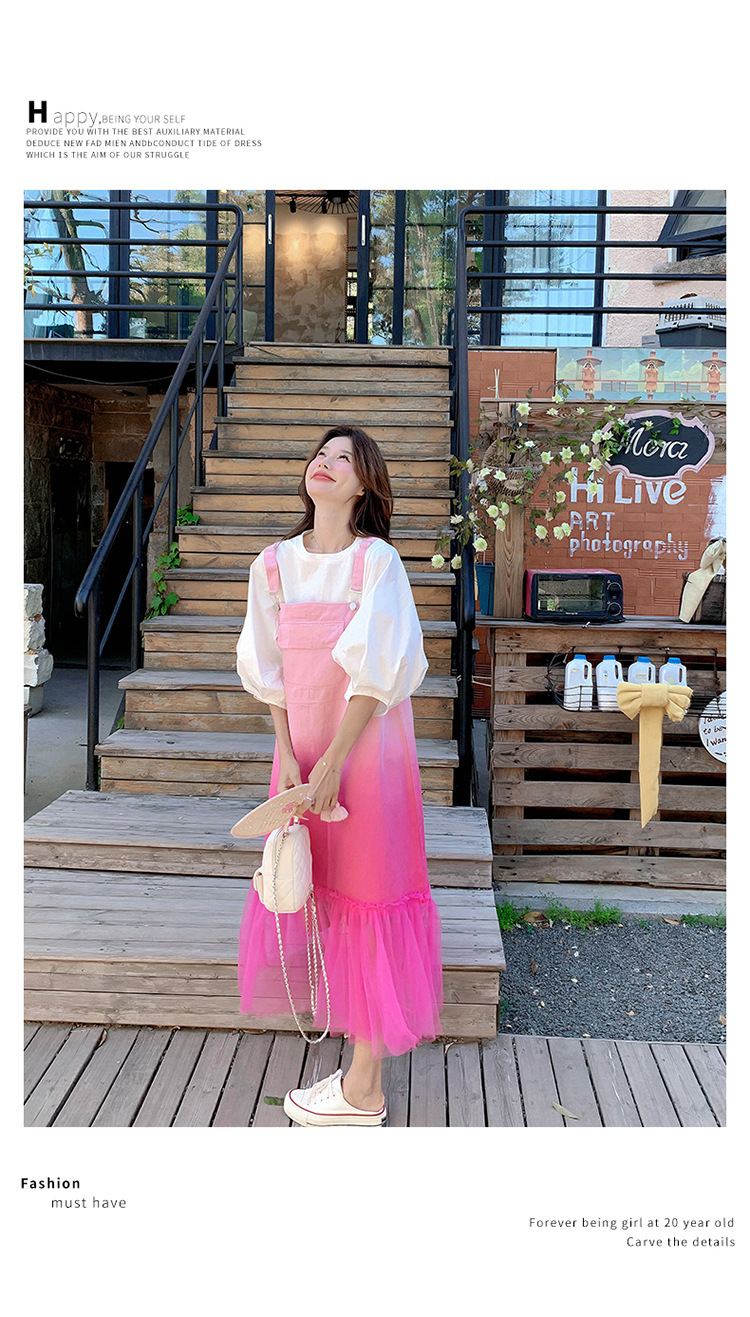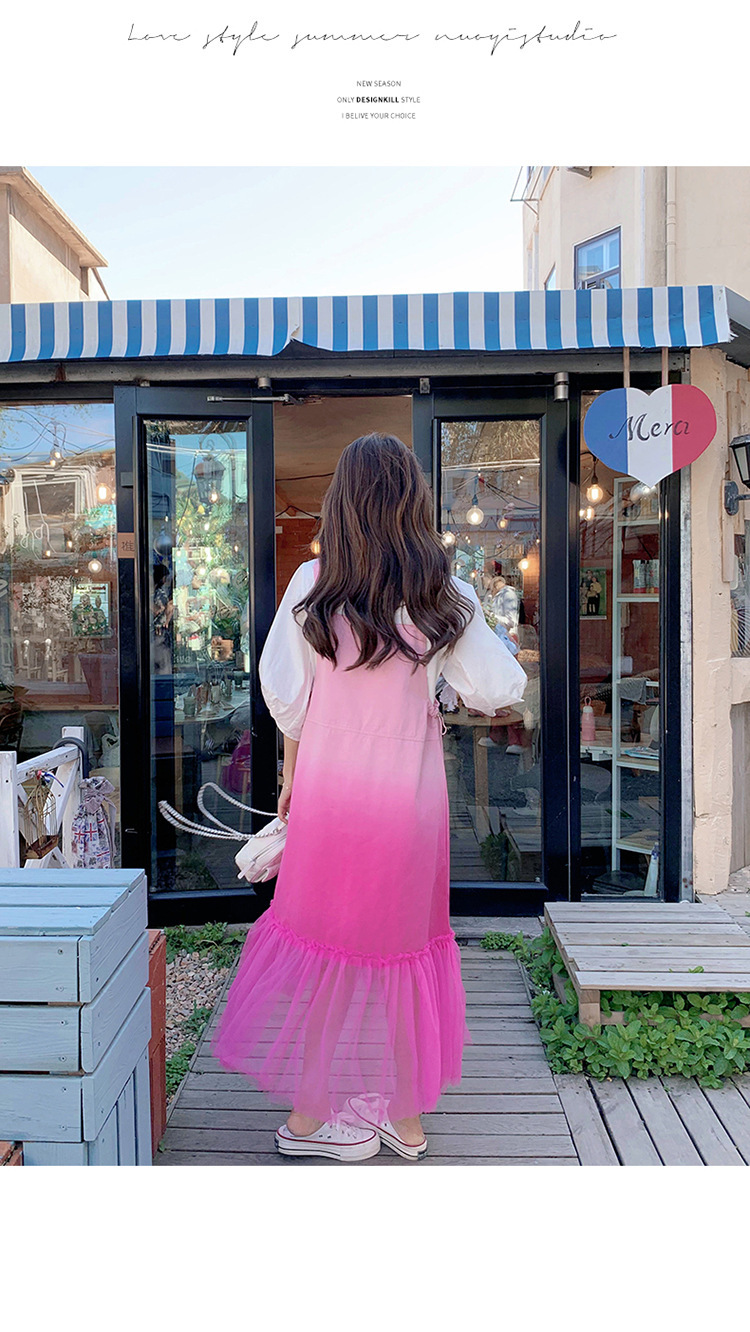 獨家訂製│韓系甜美感網紗裙襬拼接漸變色吊帶裙(06H6773)
