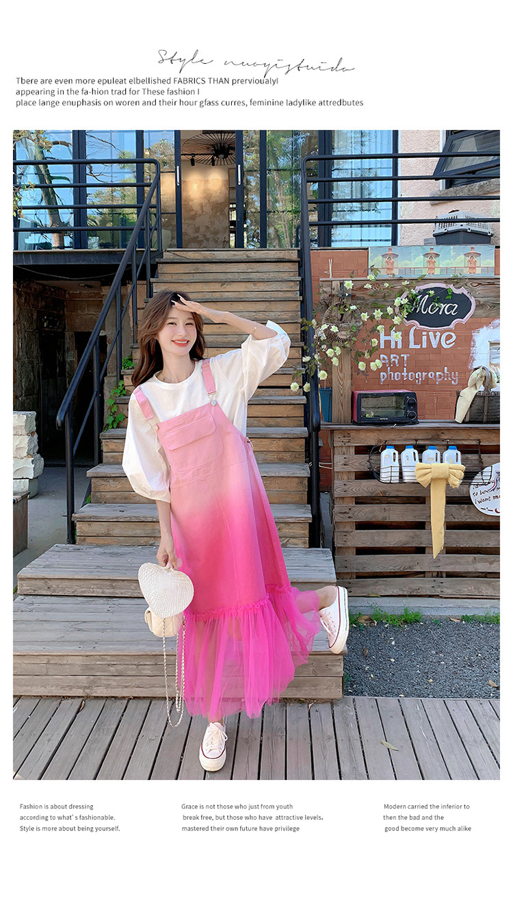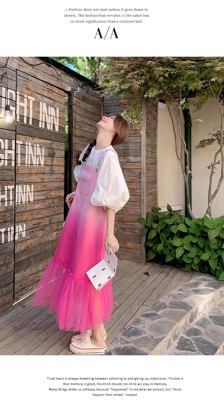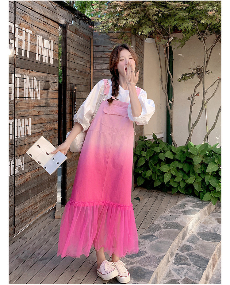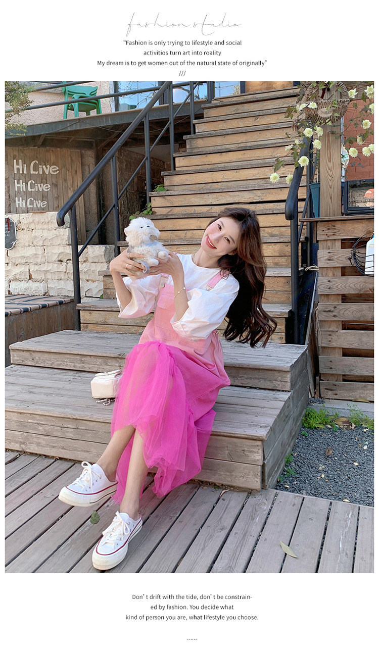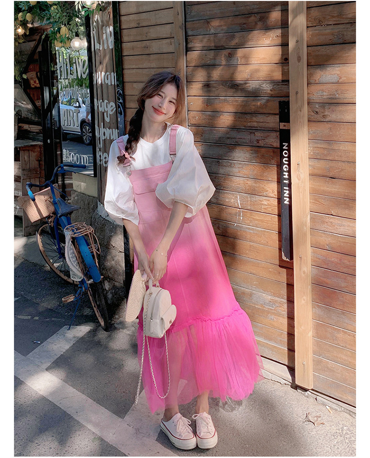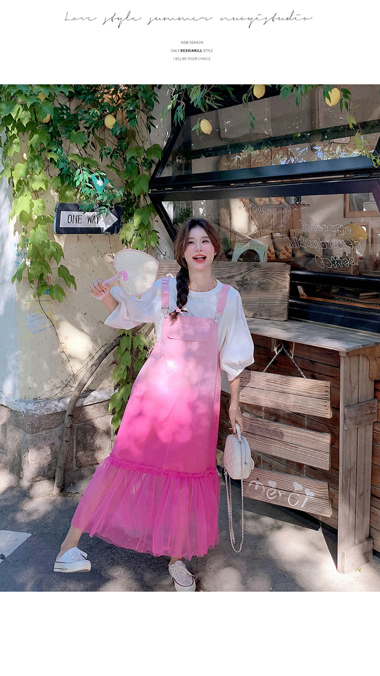 獨家訂製│韓系甜美感網紗裙襬拼接漸變色吊帶裙(06H6773)