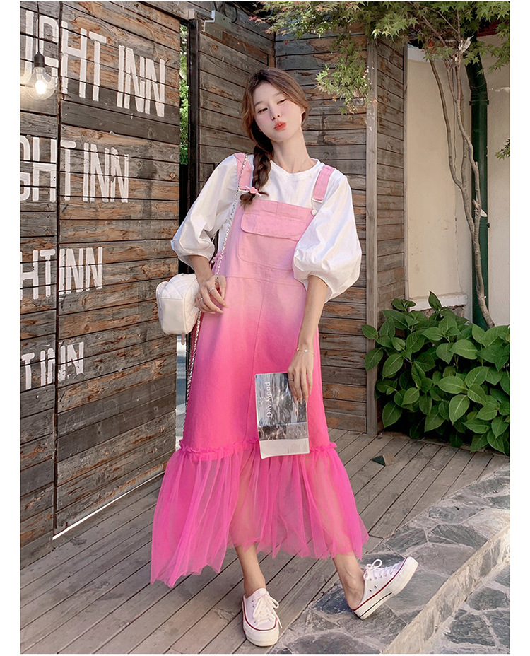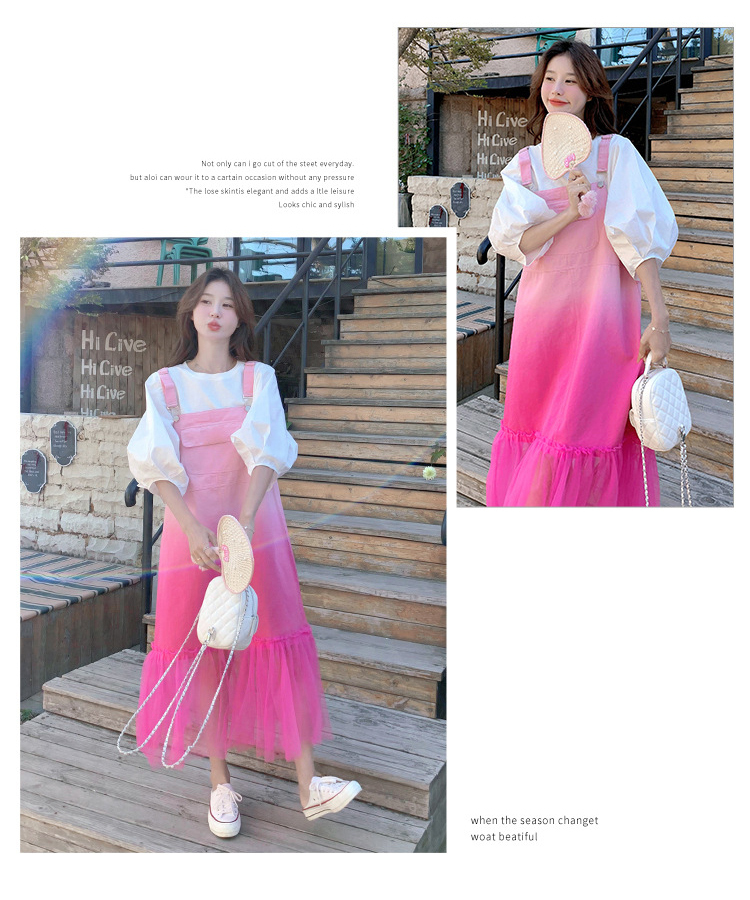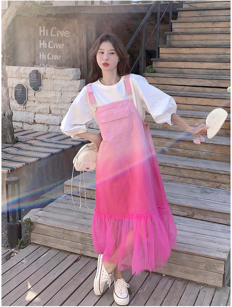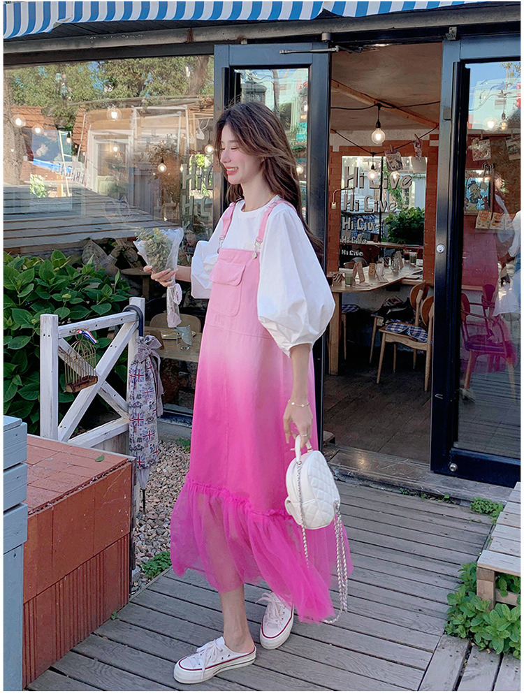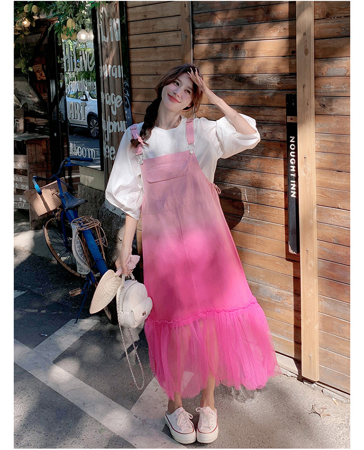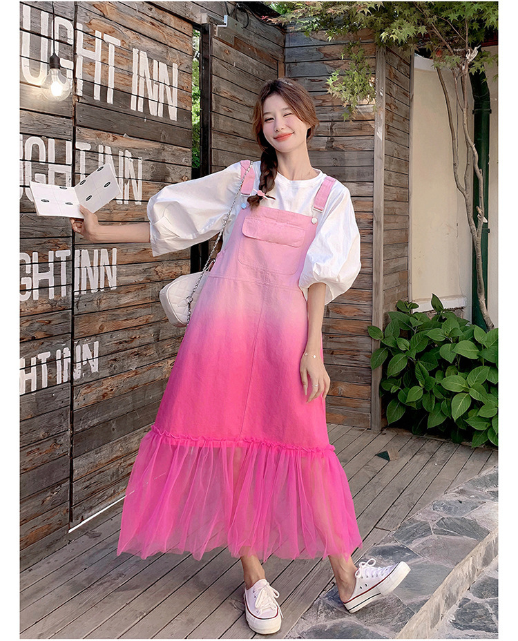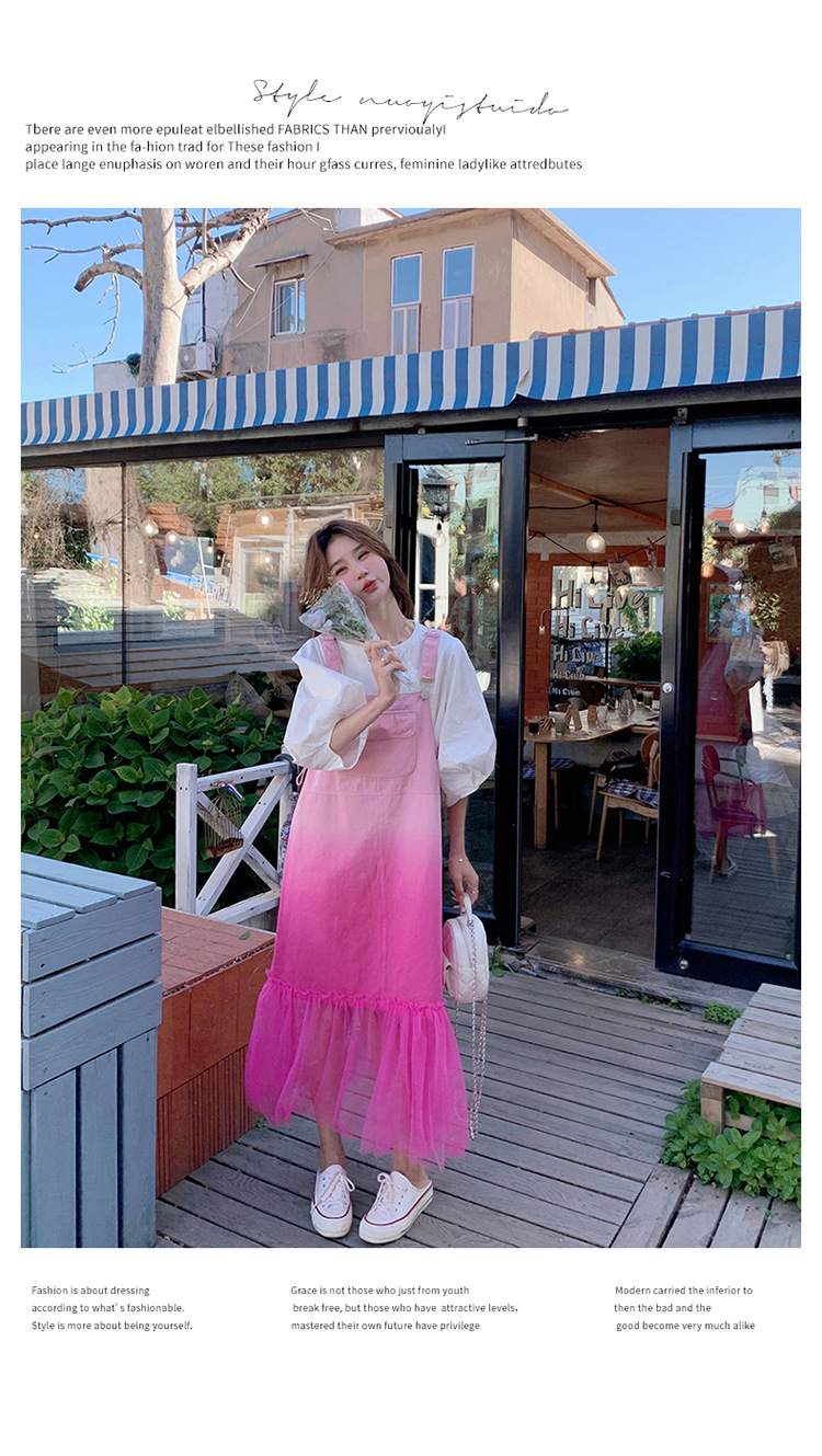 獨家訂製│韓系甜美感網紗裙襬拼接漸變色吊帶裙(06H6773)