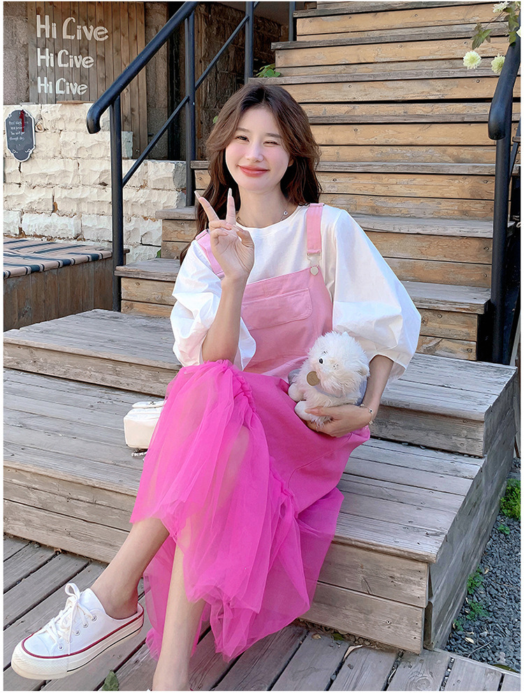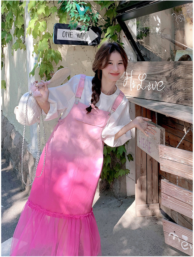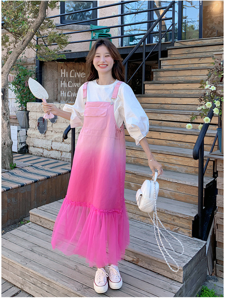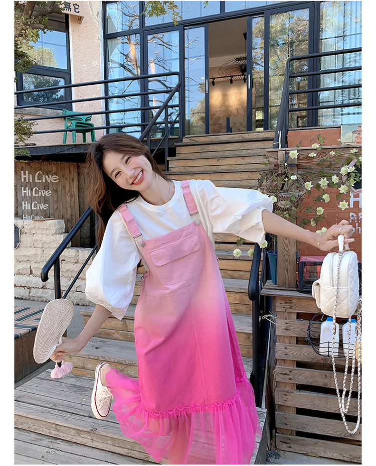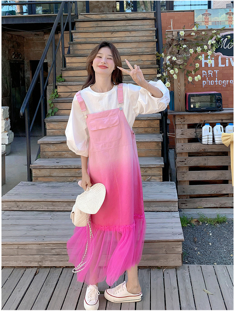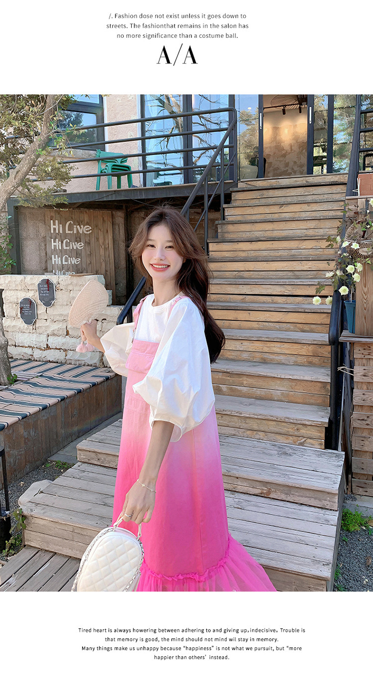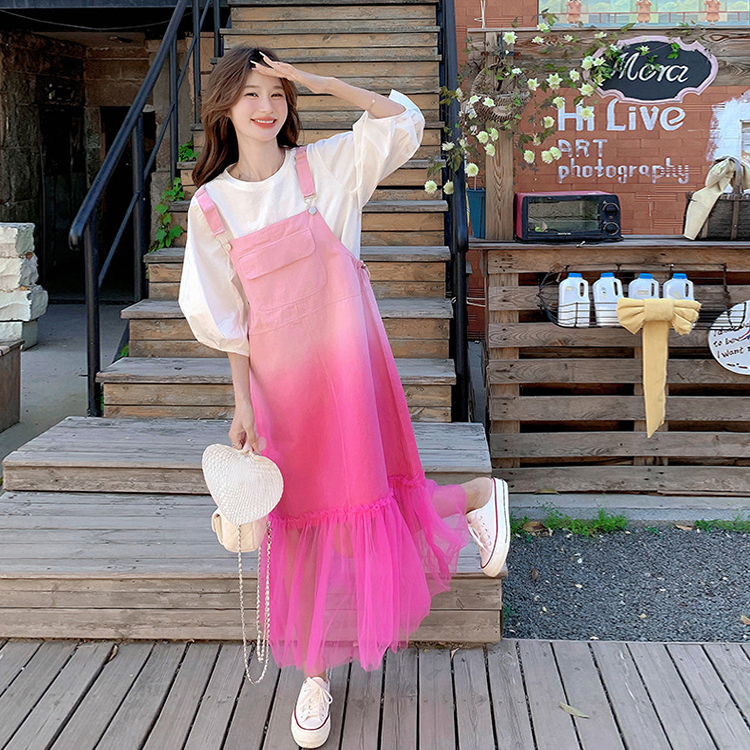 獨家訂製│韓系甜美感網紗裙襬拼接漸變色吊帶裙(06H6773)