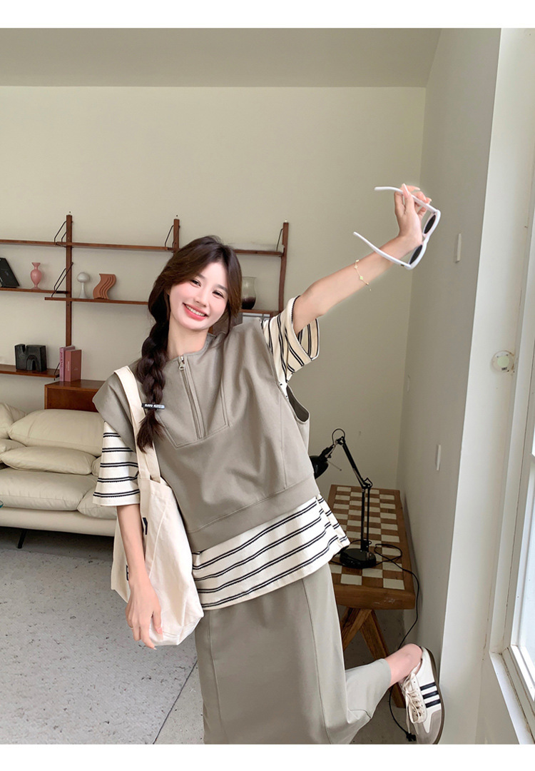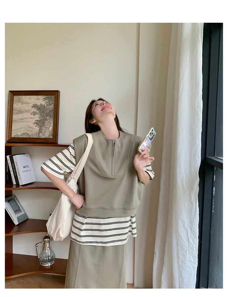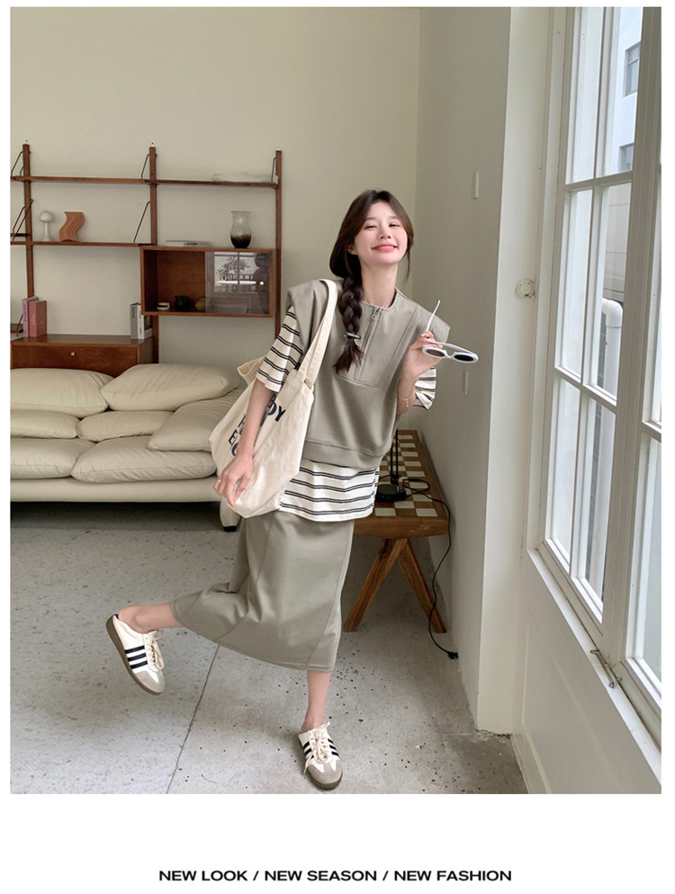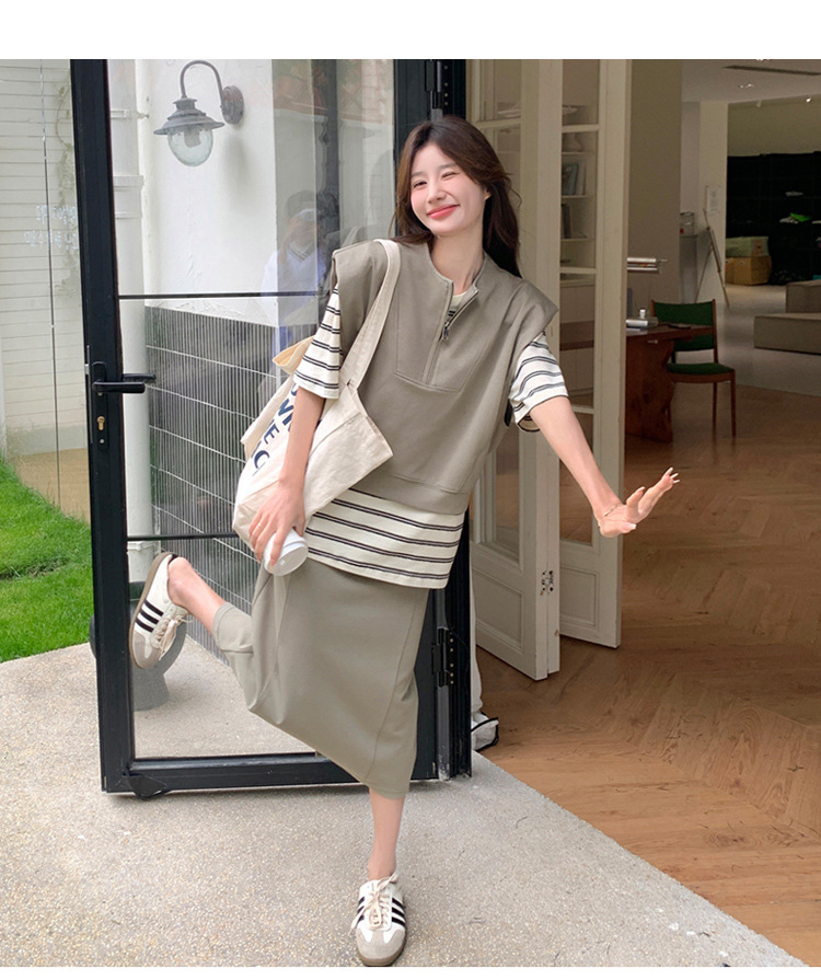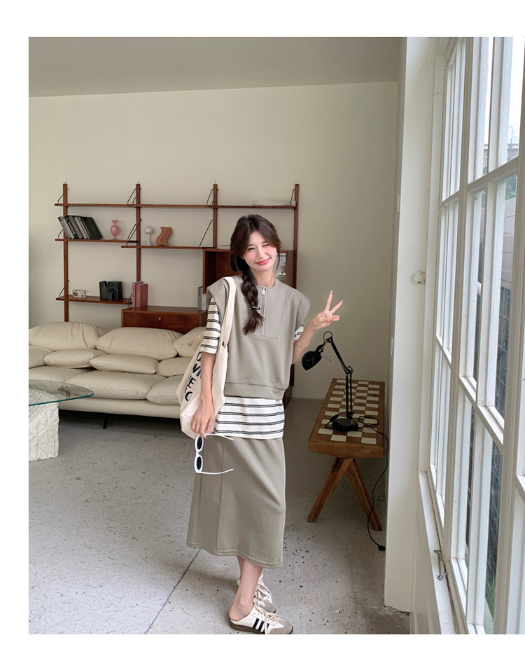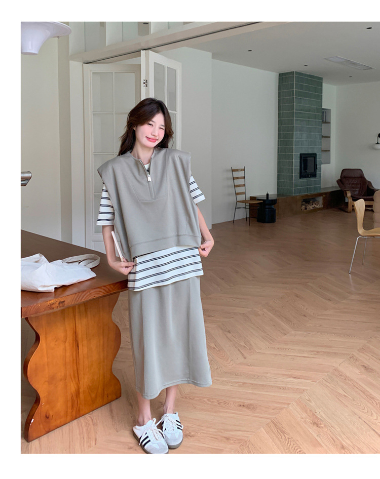 獨家訂製│韓系率性風拉鍊背心+T恤+A字裙三件式套裝組(06H6795)