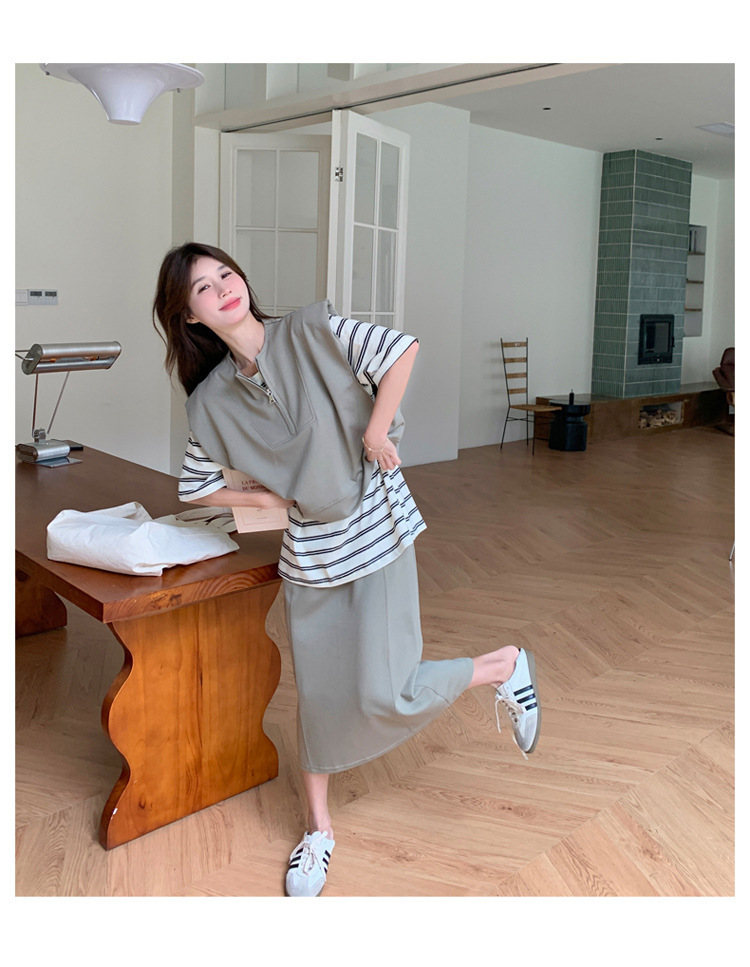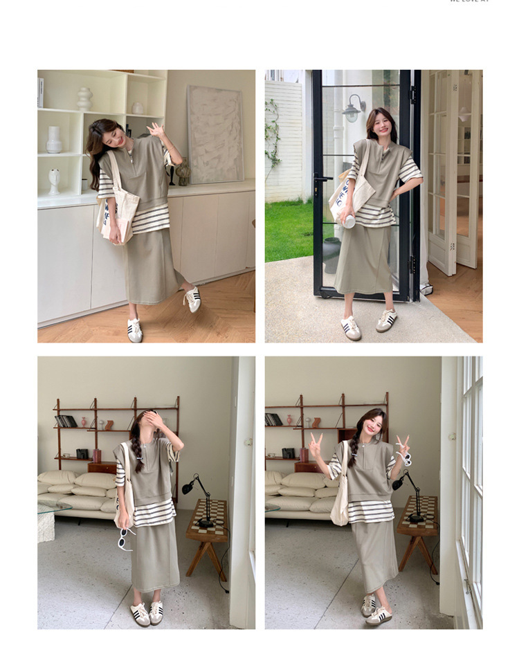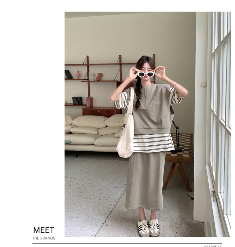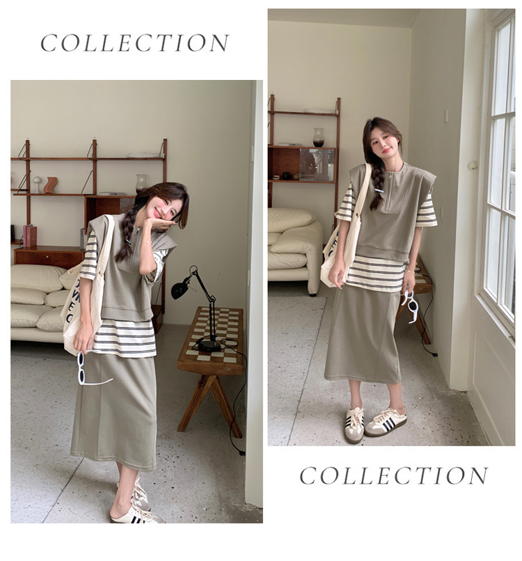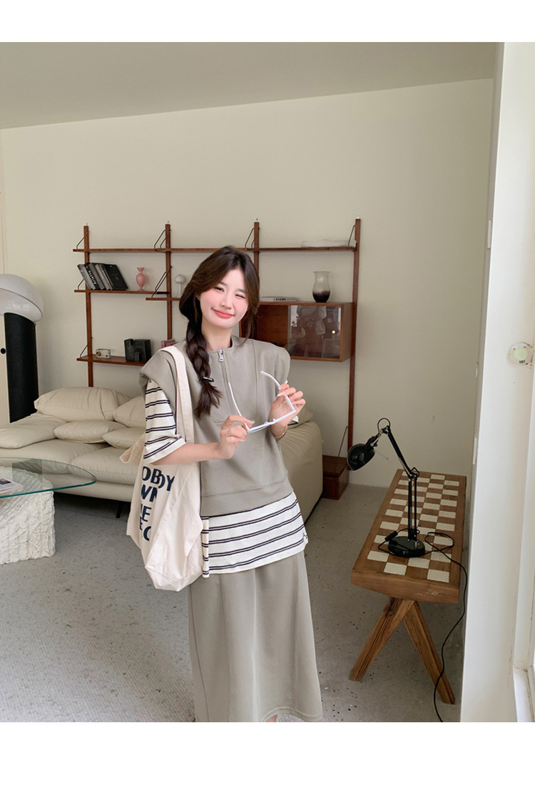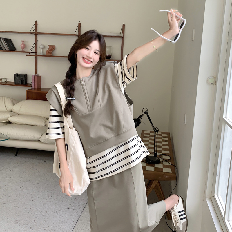 獨家訂製│韓系率性風拉鍊背心+T恤+A字裙三件式套裝組(06H6795)