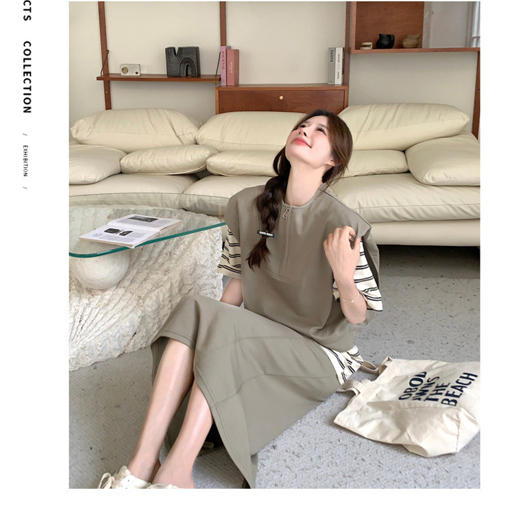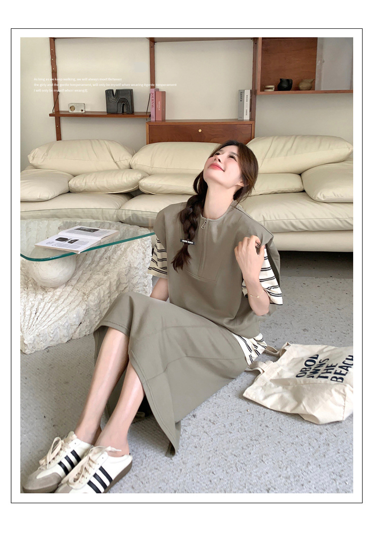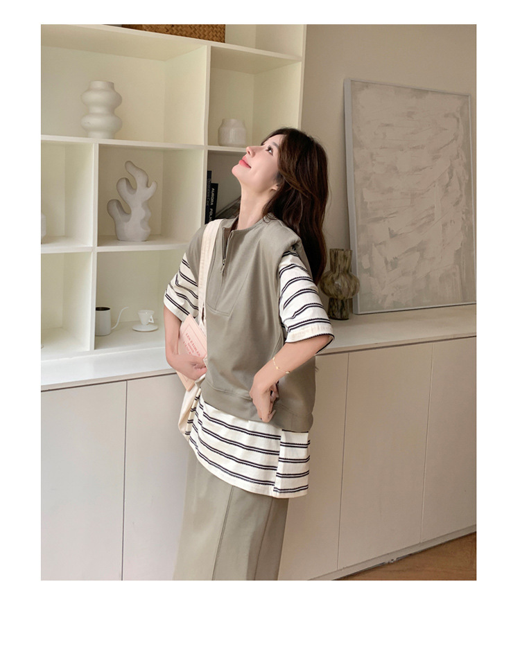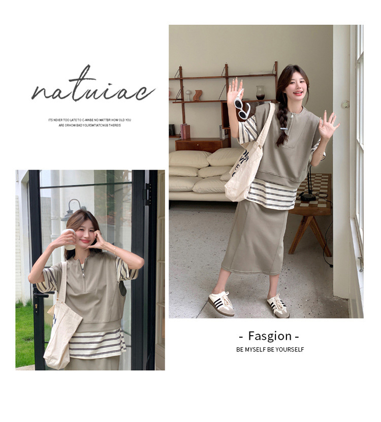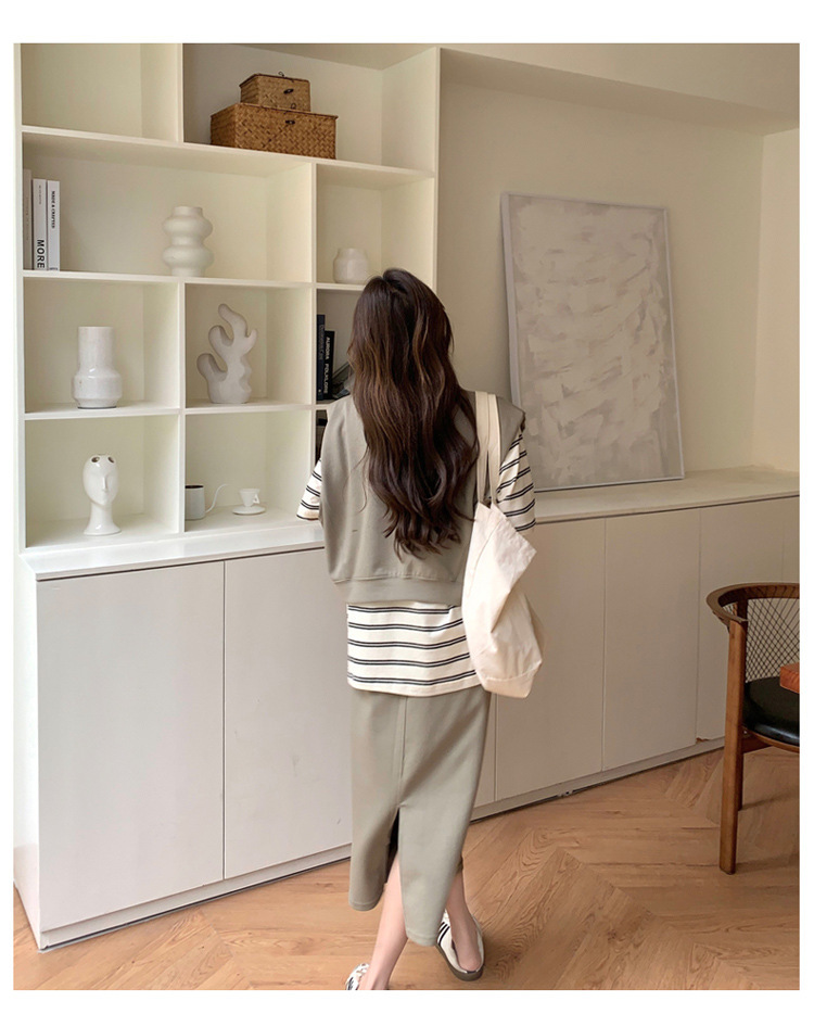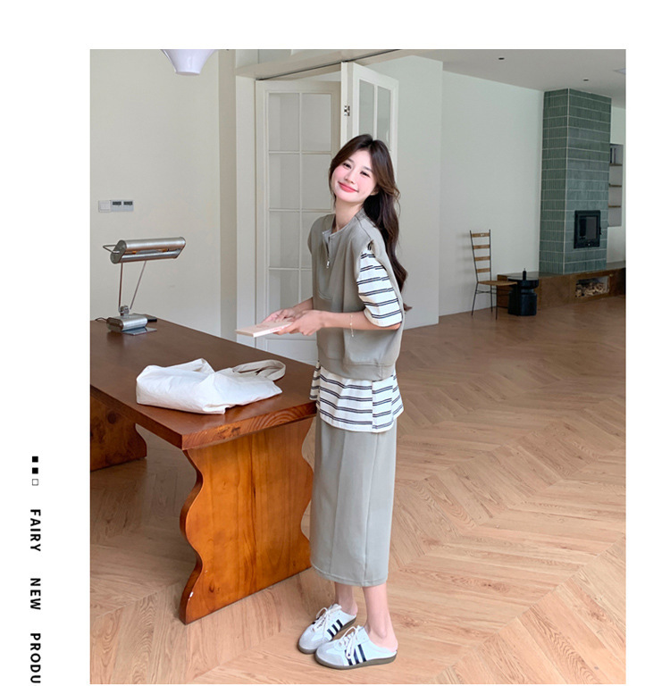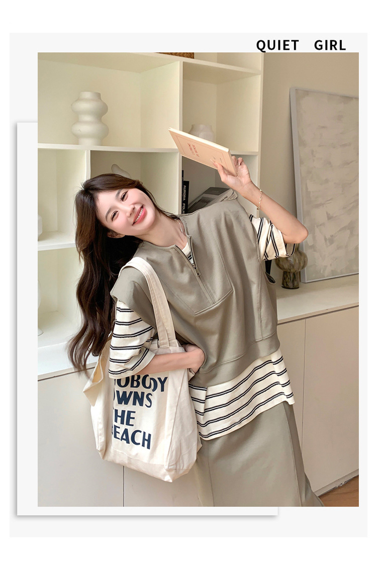 獨家訂製│韓系率性風拉鍊背心+T恤+A字裙三件式套裝組(06H6795)