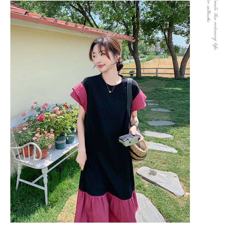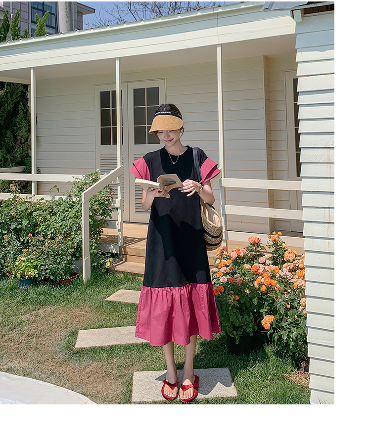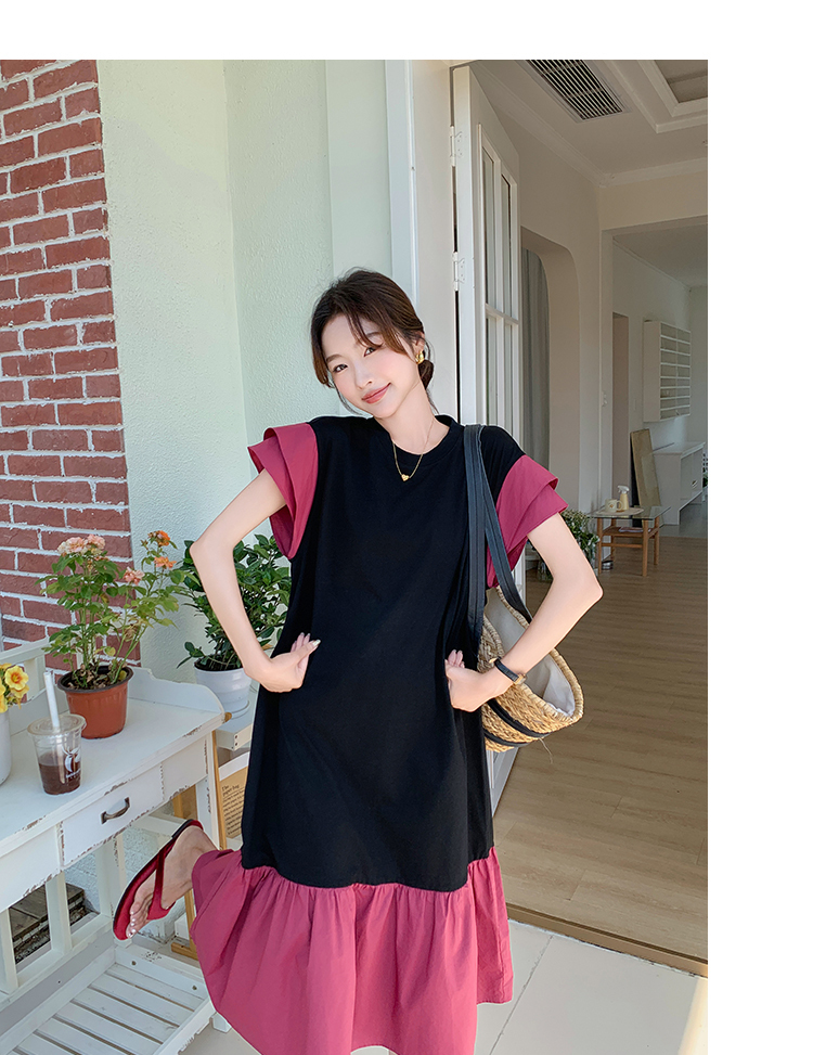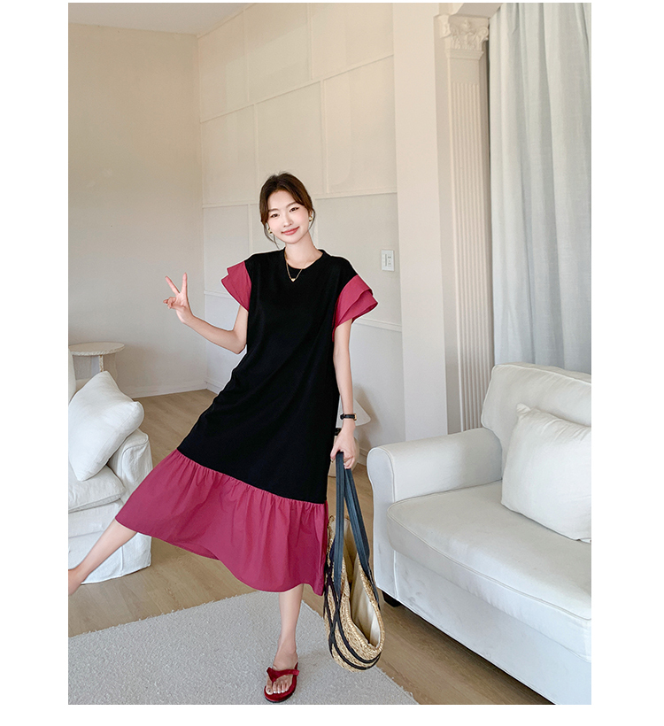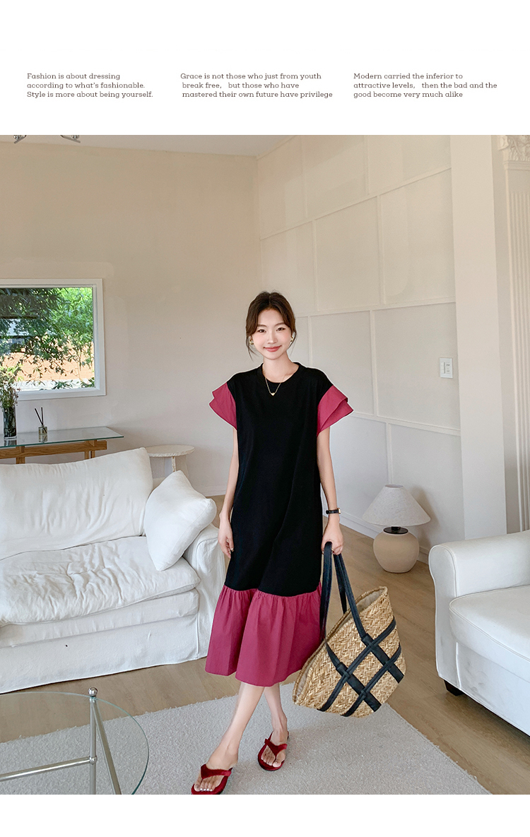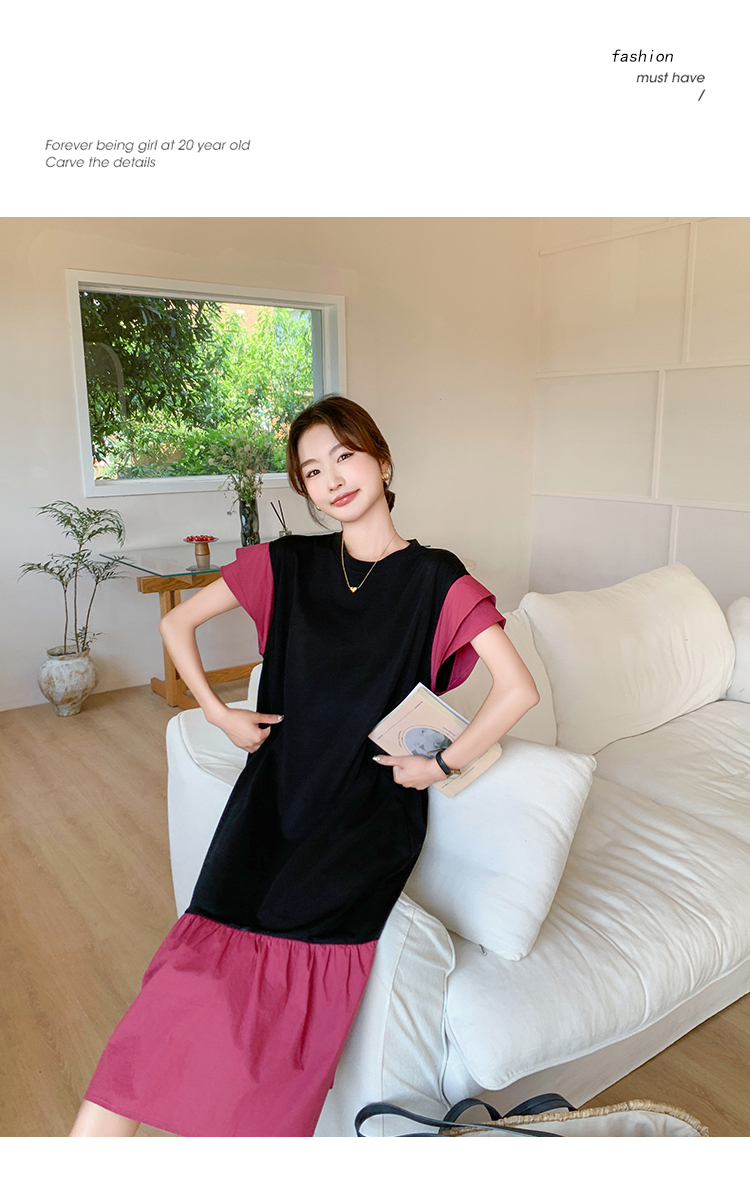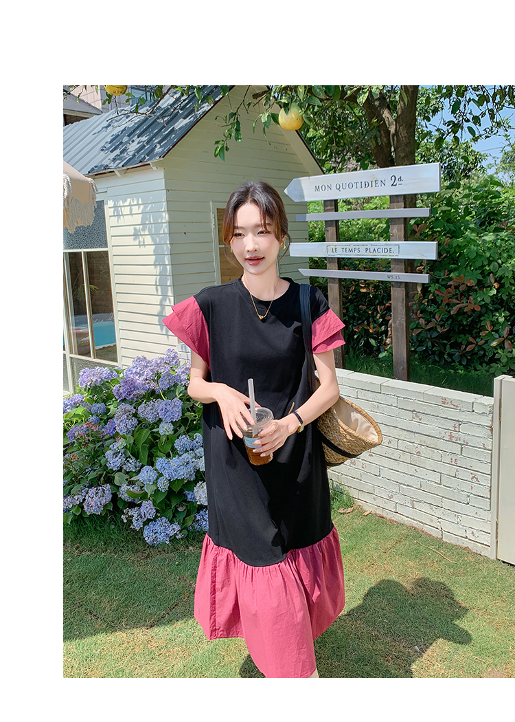 獨家訂製│韓系仙甜感撞色裙襬拼接雙層袖造型連衣裙(06H6828)