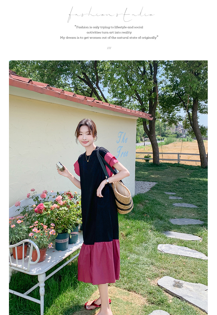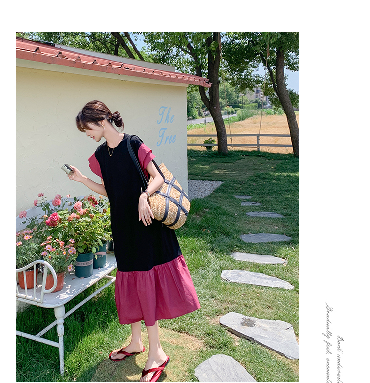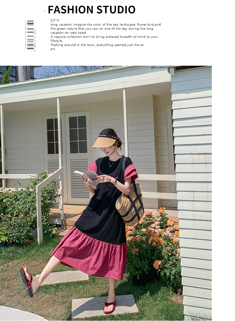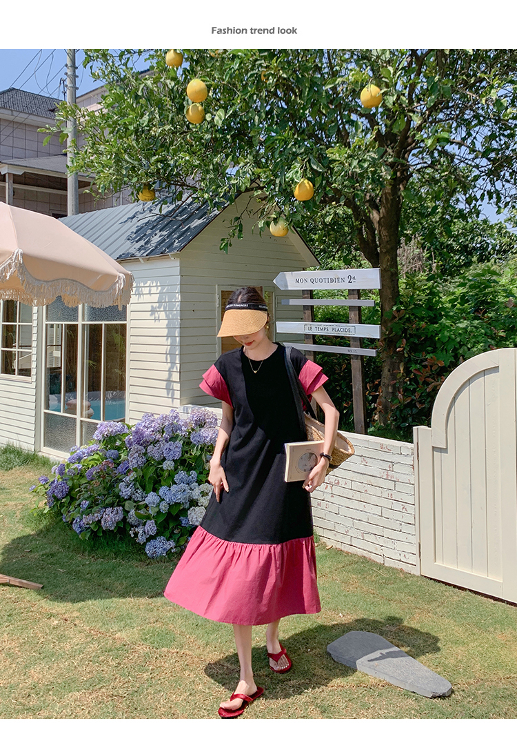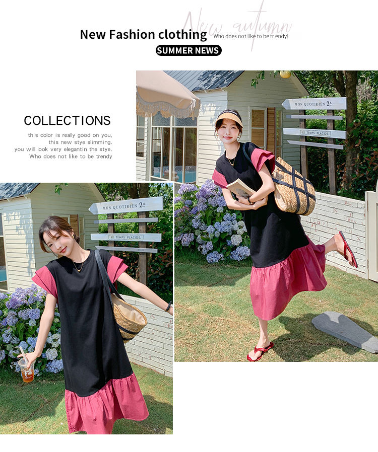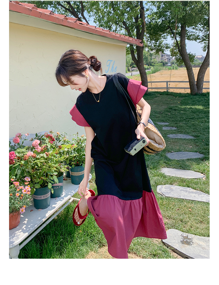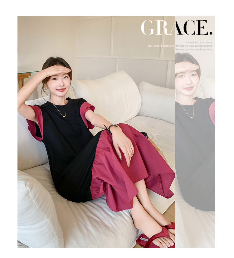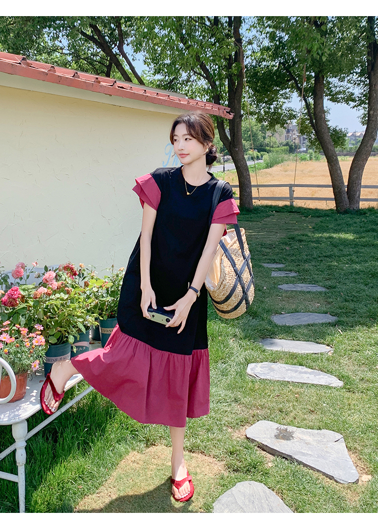 獨家訂製│韓系仙甜感撞色裙襬拼接雙層袖造型連衣裙(06H6828)