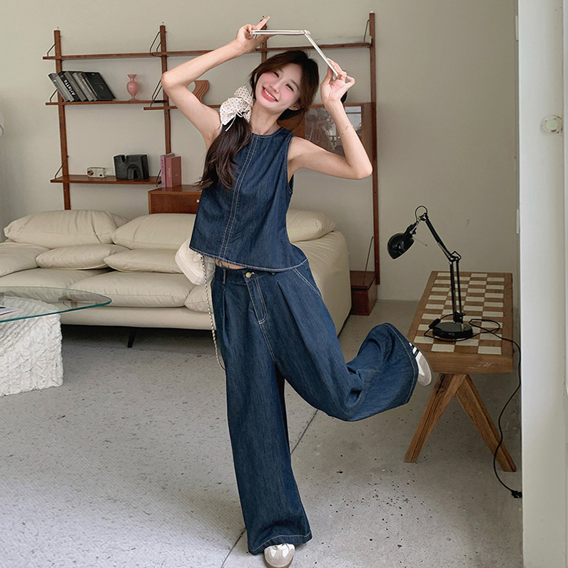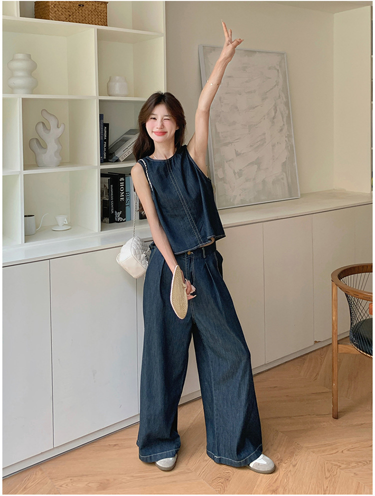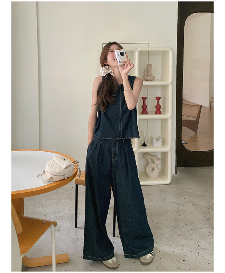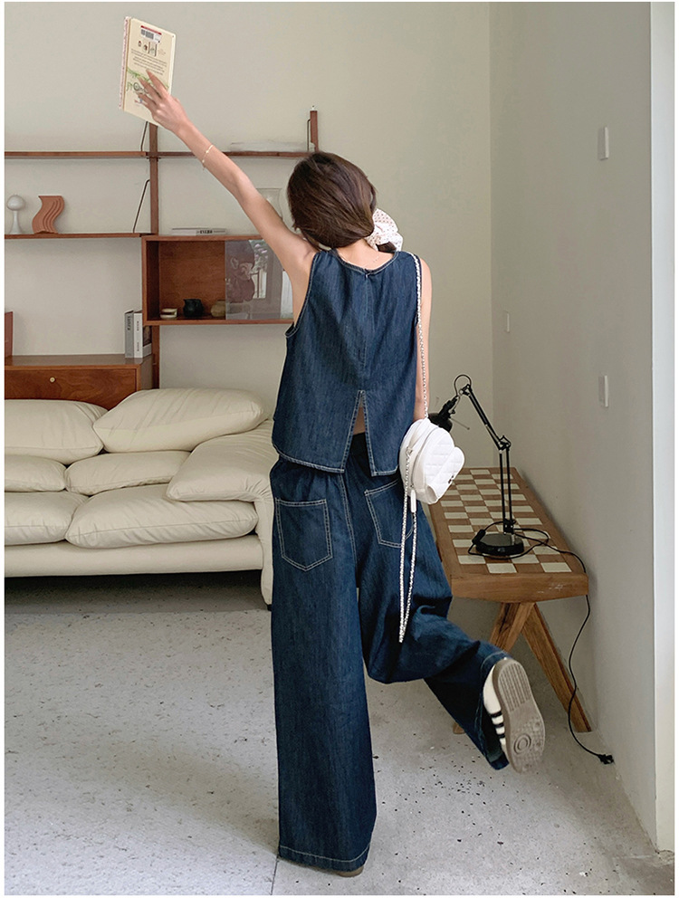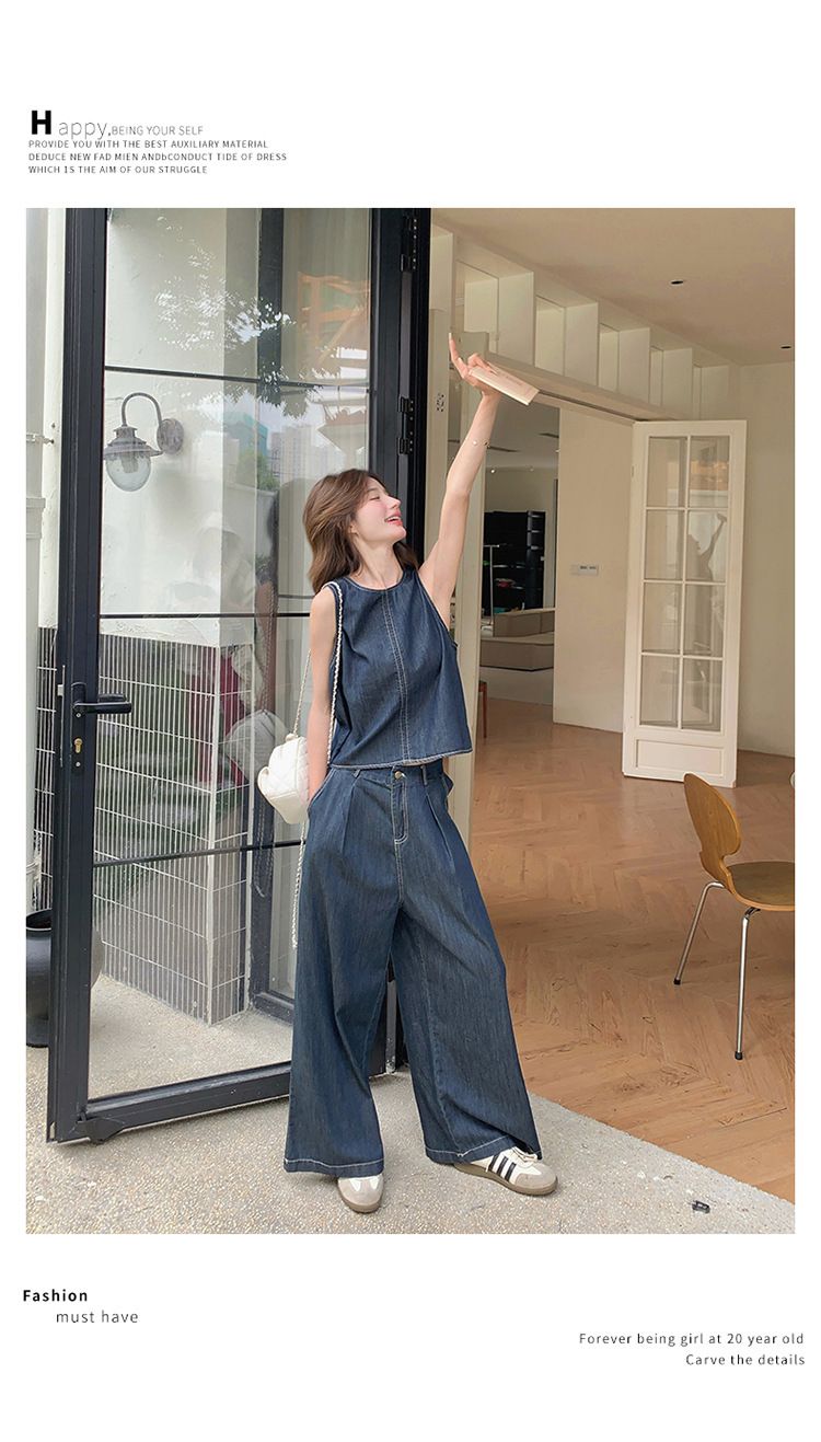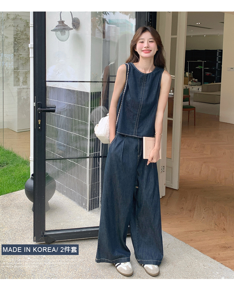 獨家訂製│韓系颯姊風後背開叉上衣+闊腿褲兩件式套裝組(06H6849)