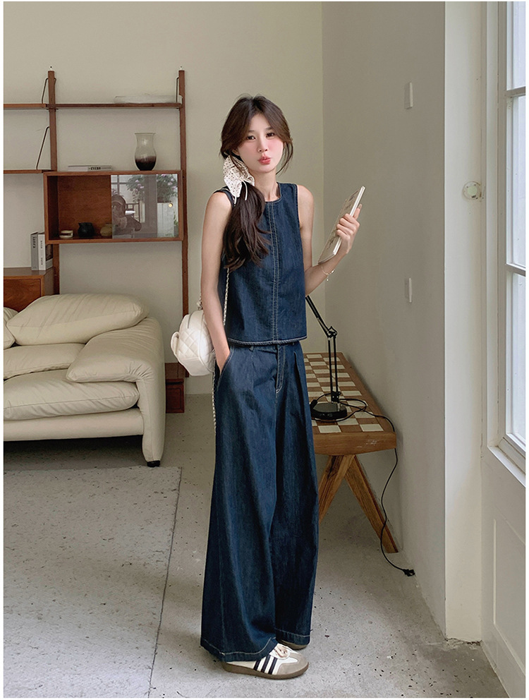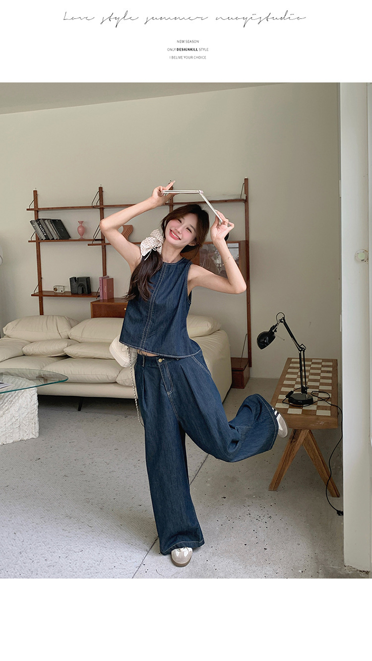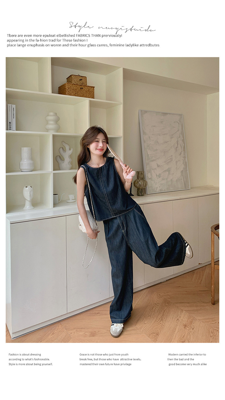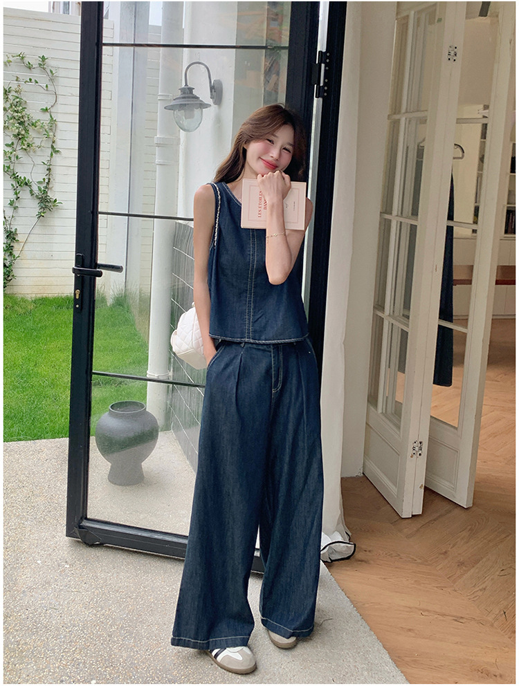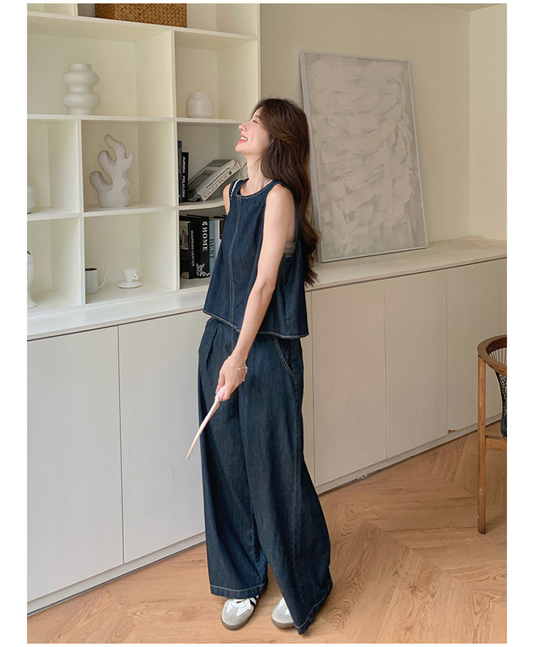 獨家訂製│韓系颯姊風後背開叉上衣+闊腿褲兩件式套裝組(06H6849)