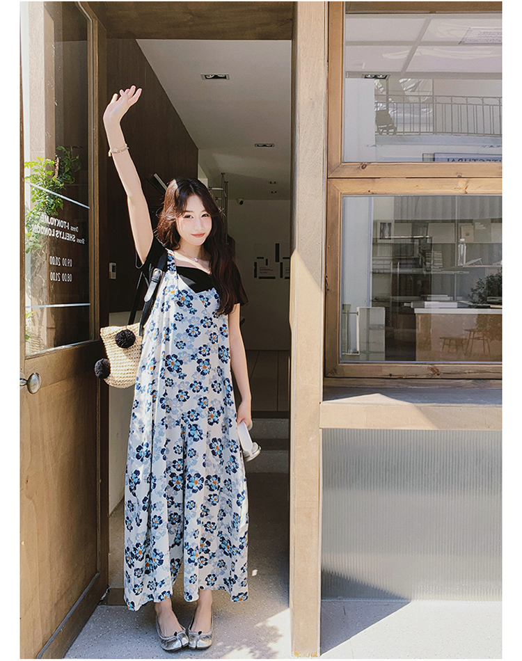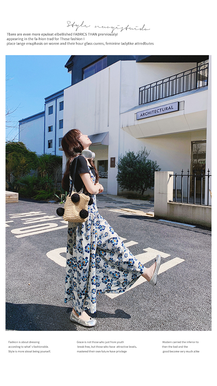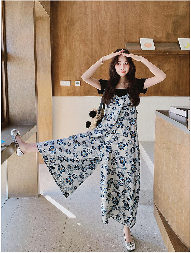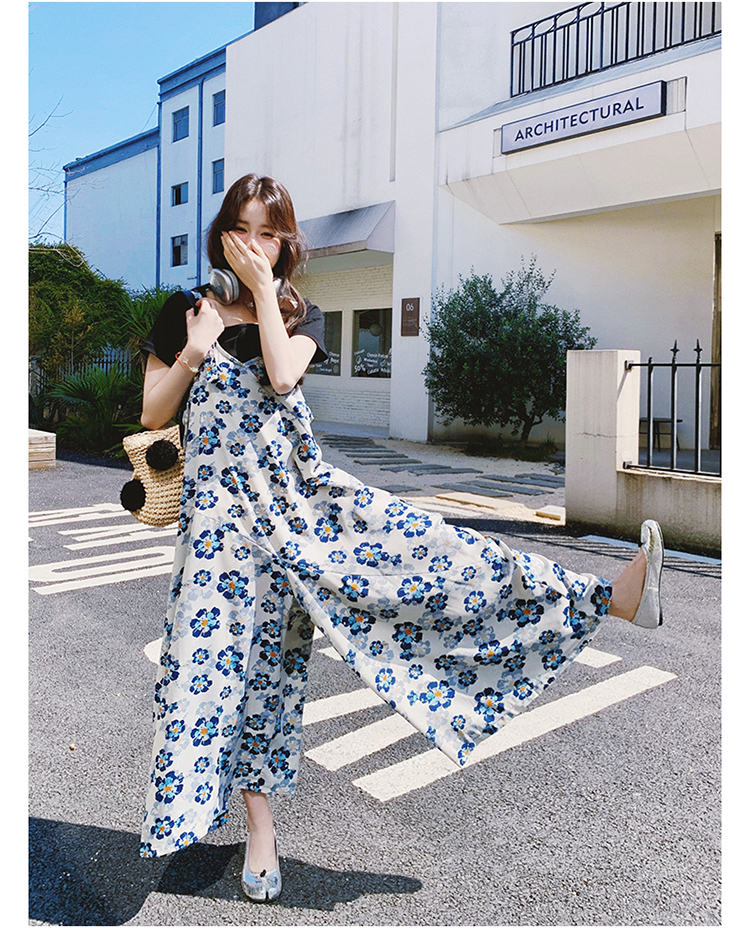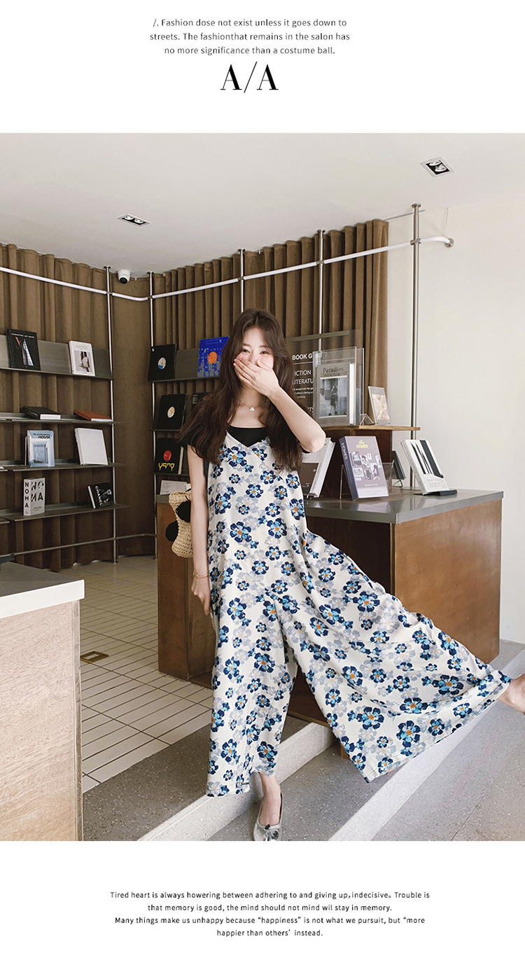 獨家訂製│清新感碎花大闊腿吊帶褲(07A1286)