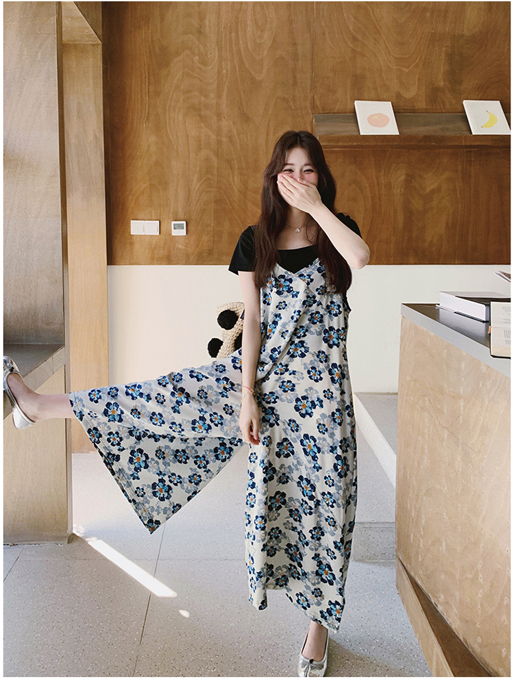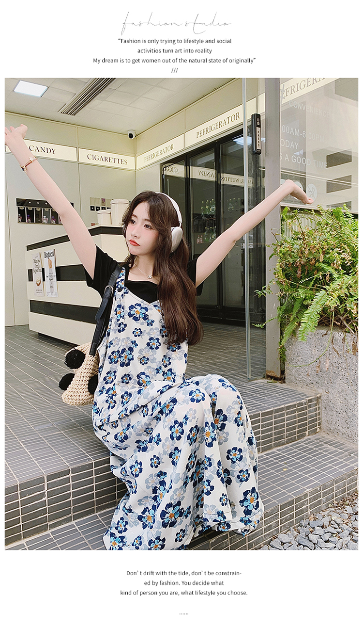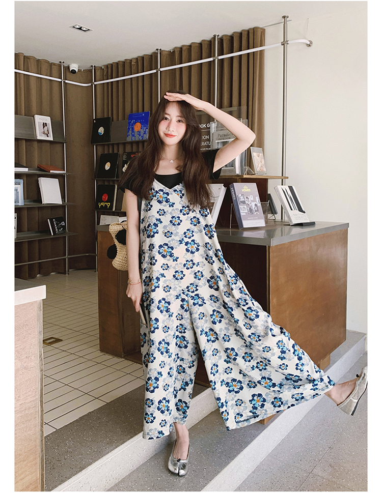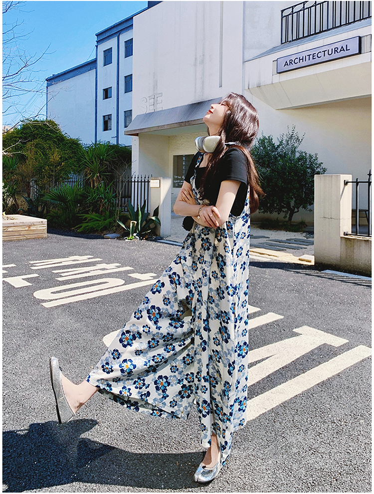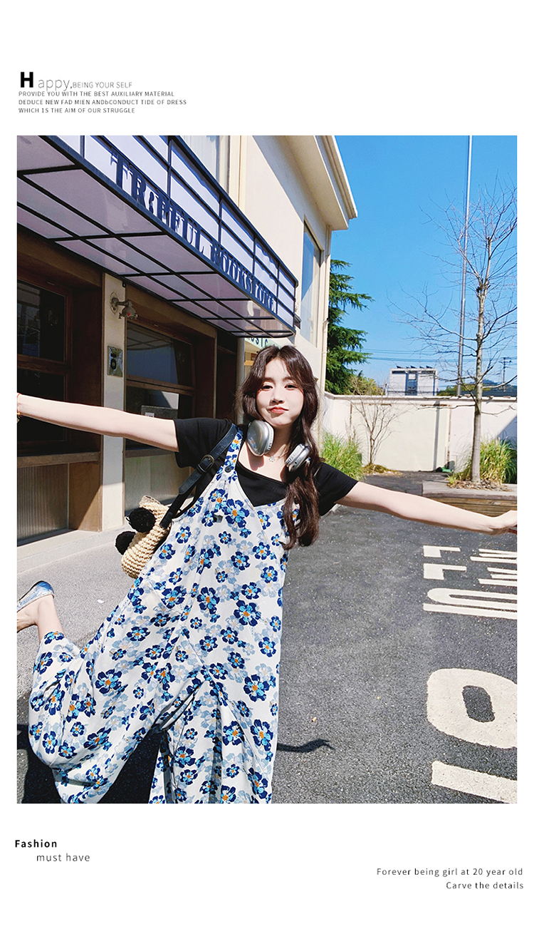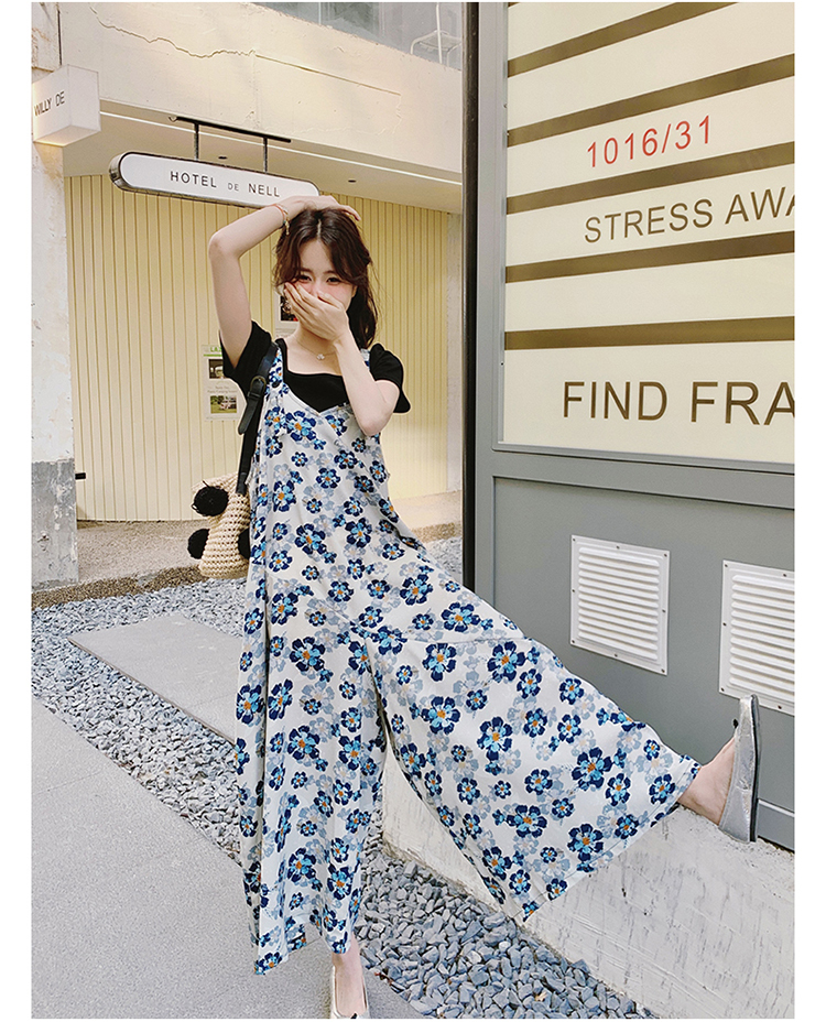 獨家訂製│清新感碎花大闊腿吊帶褲(07A1286)