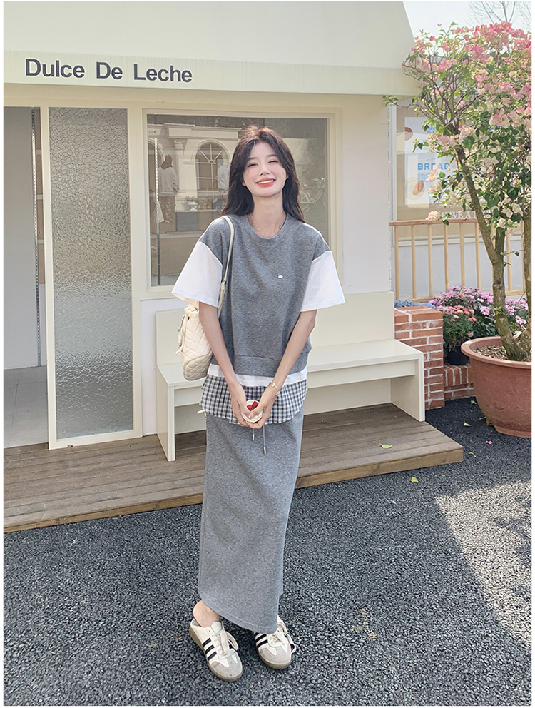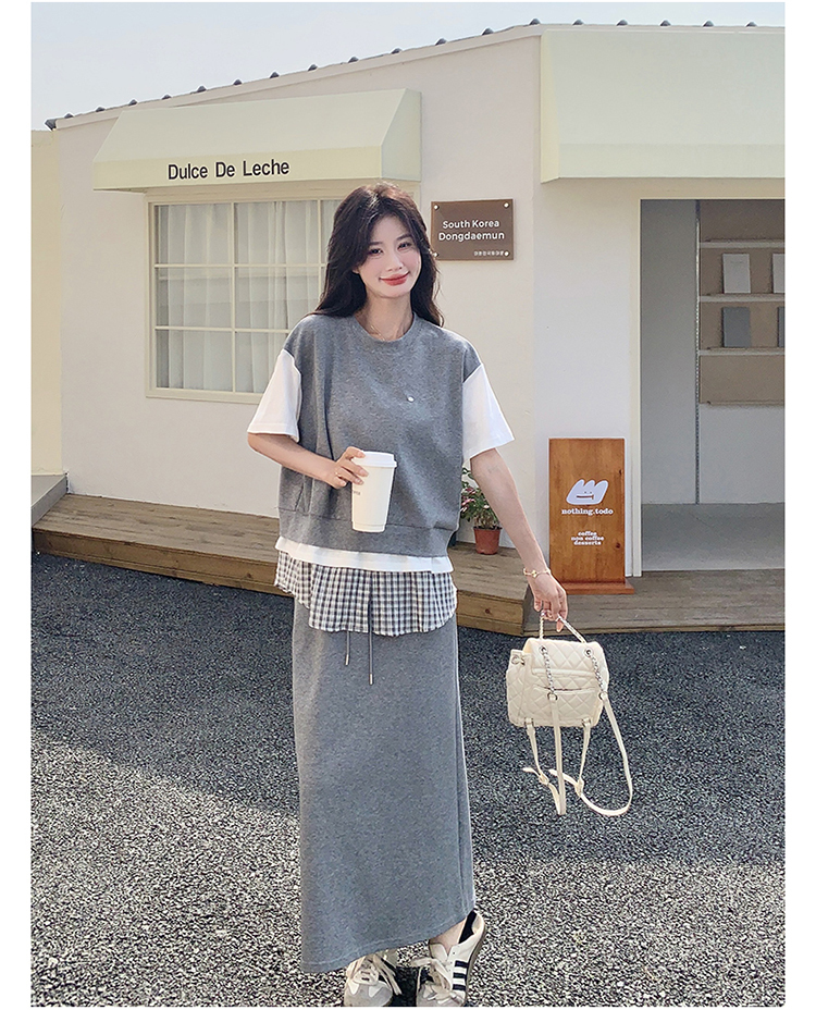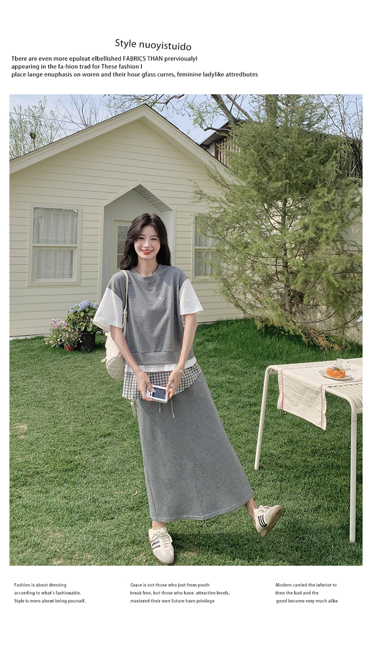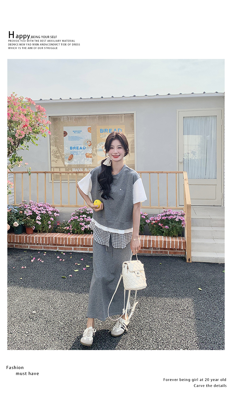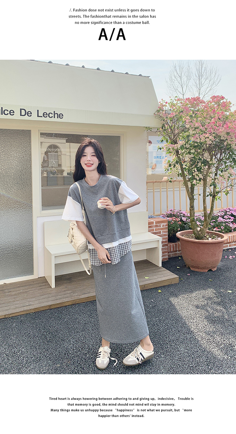 獨家訂製│2件式 撞色拼接假兩件式上衣+A字裙(07A1302)