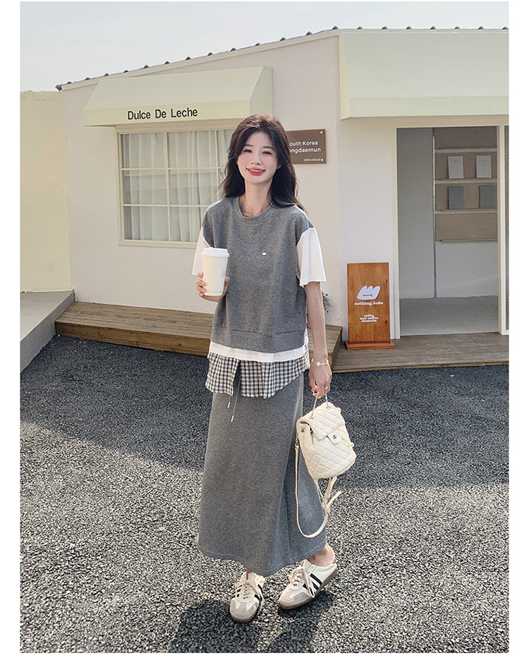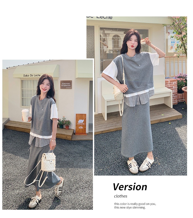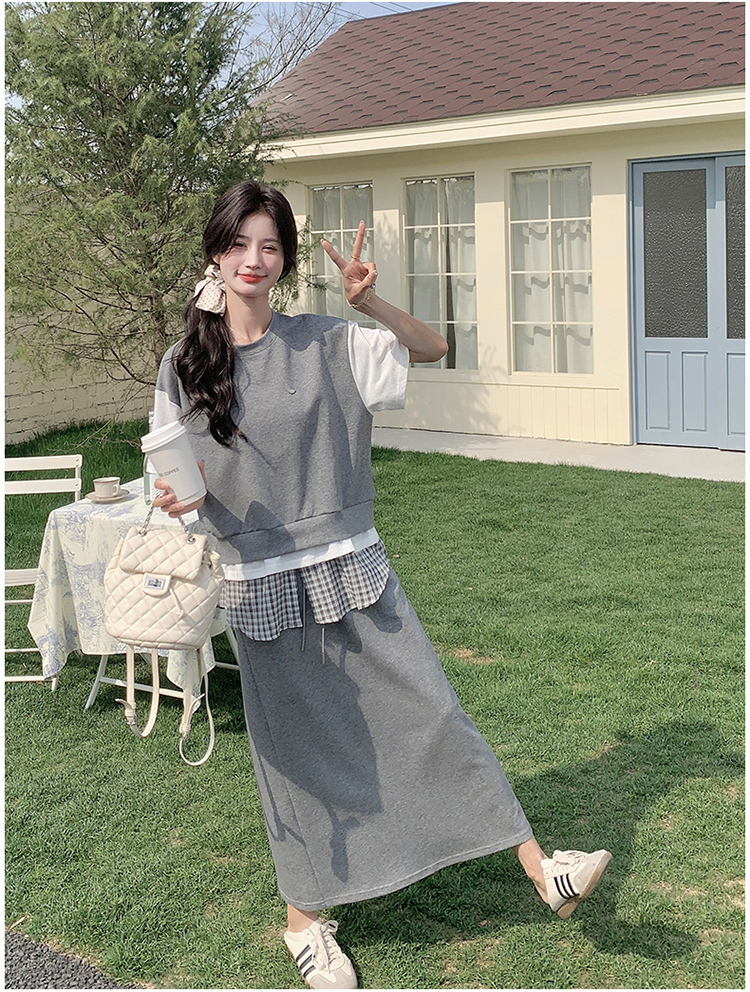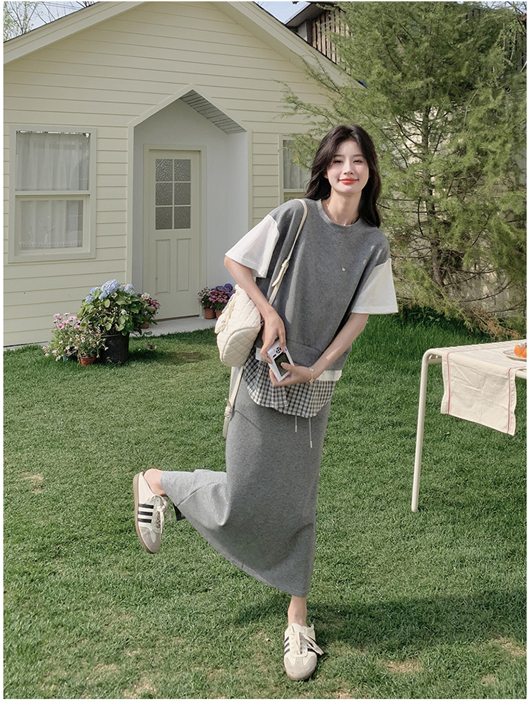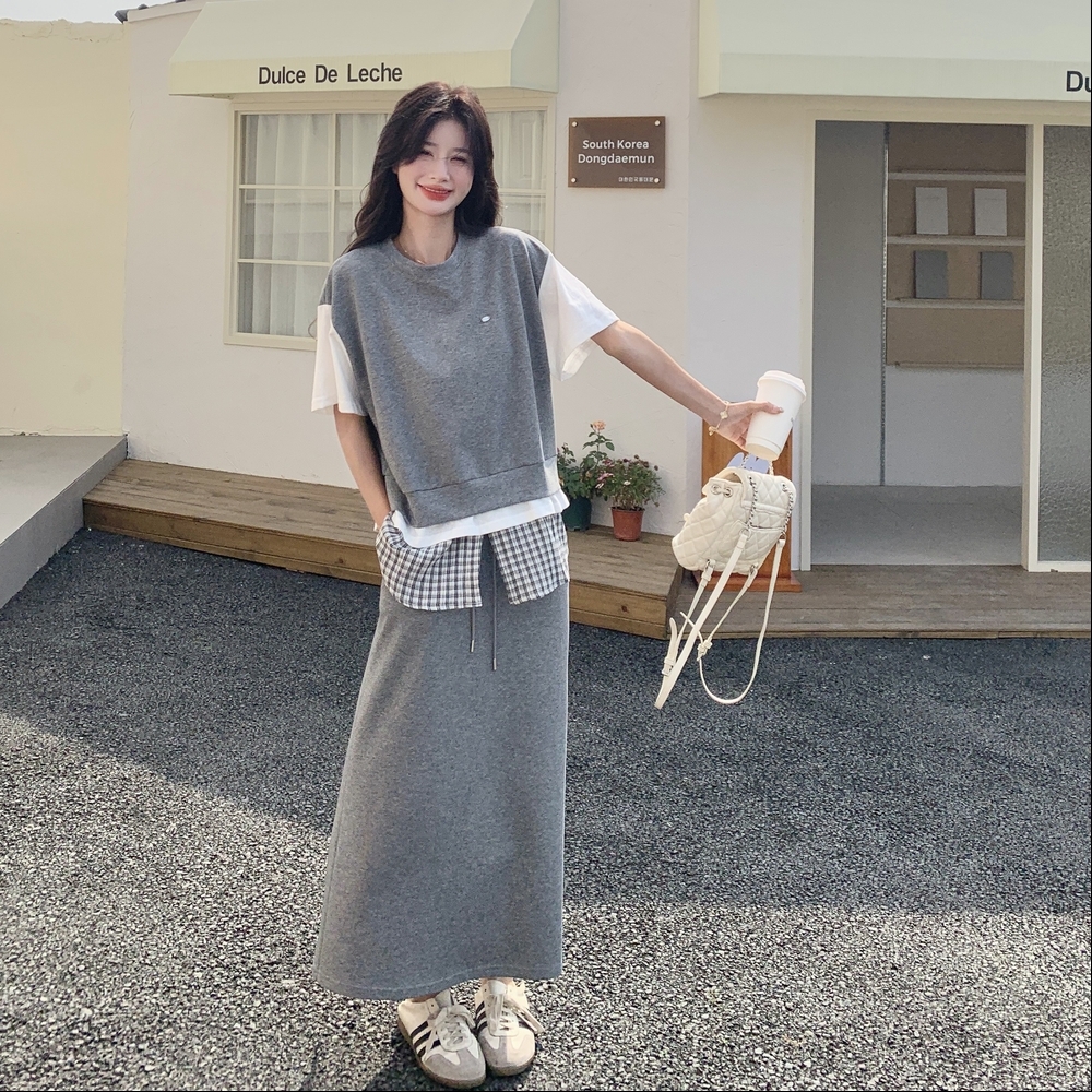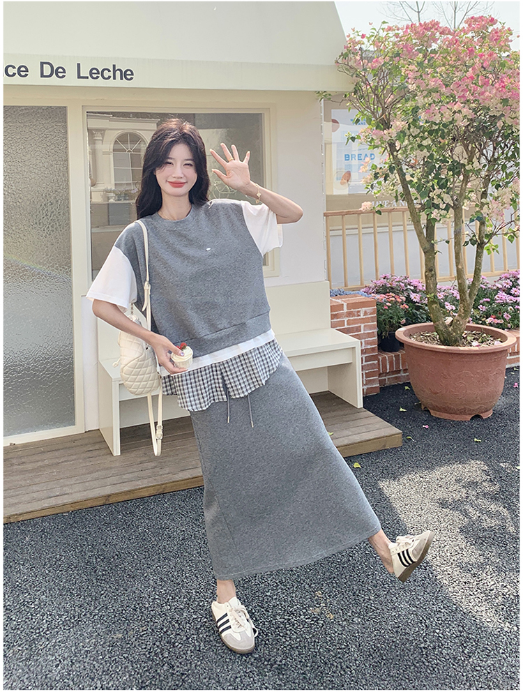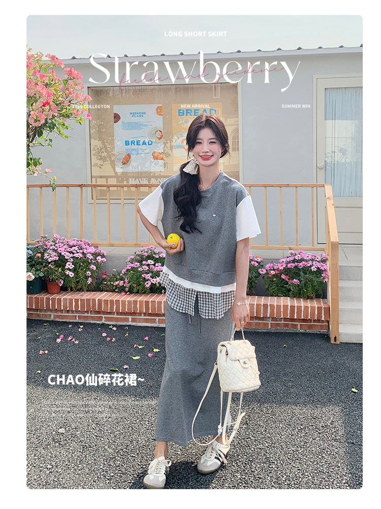 獨家訂製│2件式 撞色拼接假兩件式上衣+A字裙(07A1302)