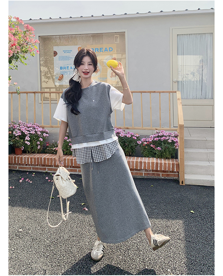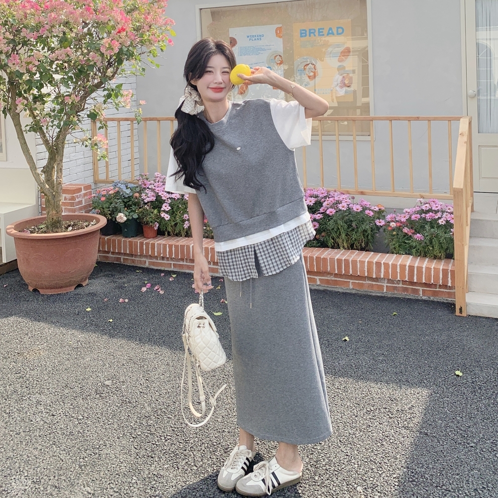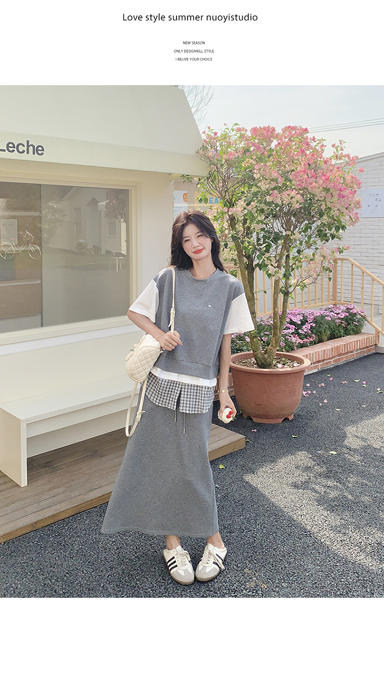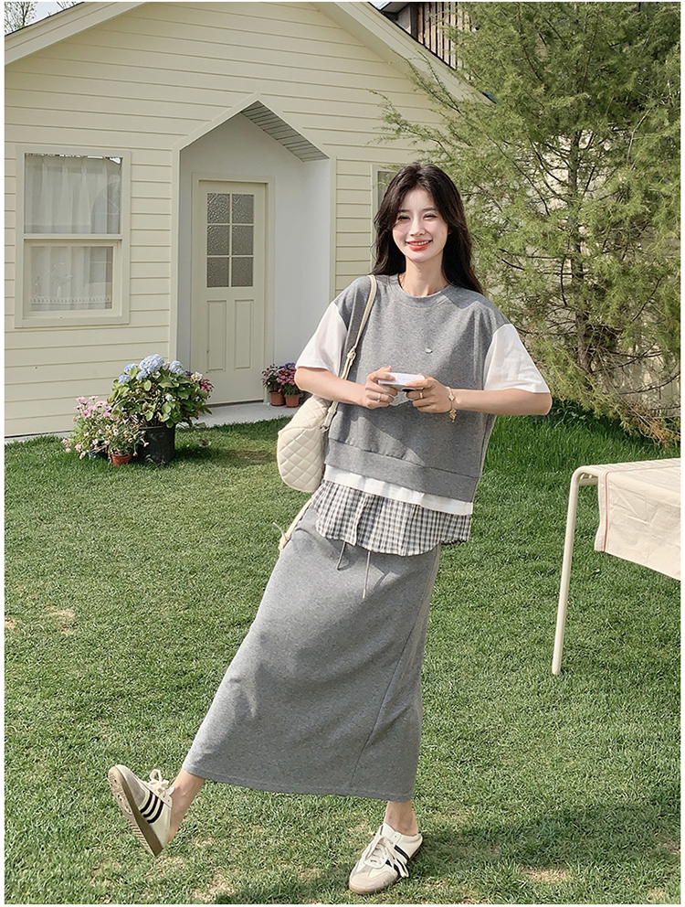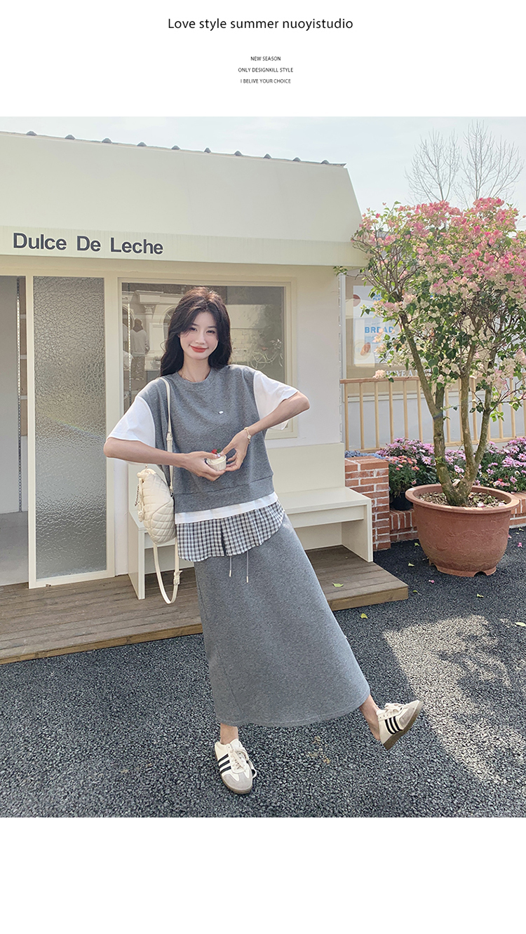 獨家訂製│2件式 撞色拼接假兩件式上衣+A字裙(07A1302)