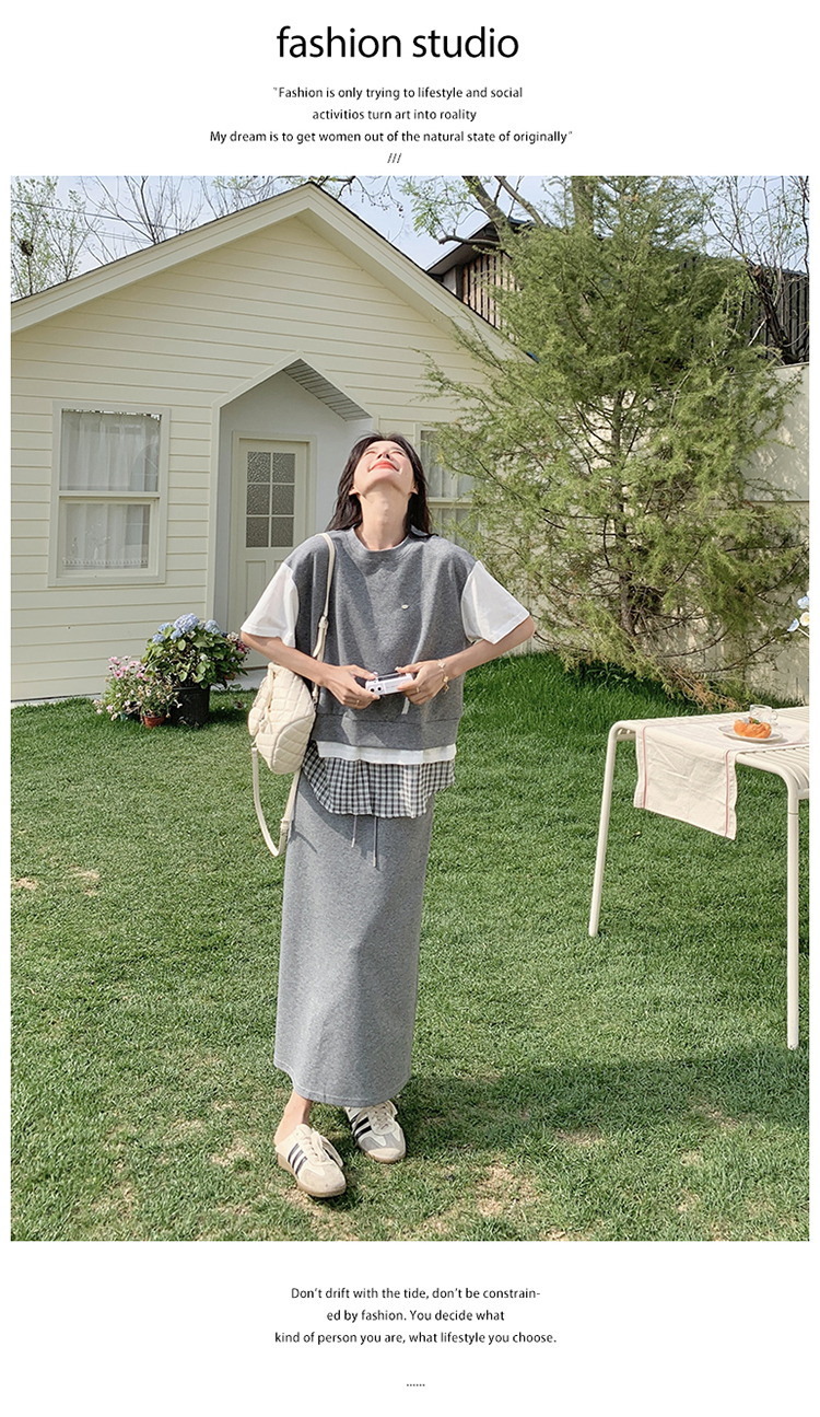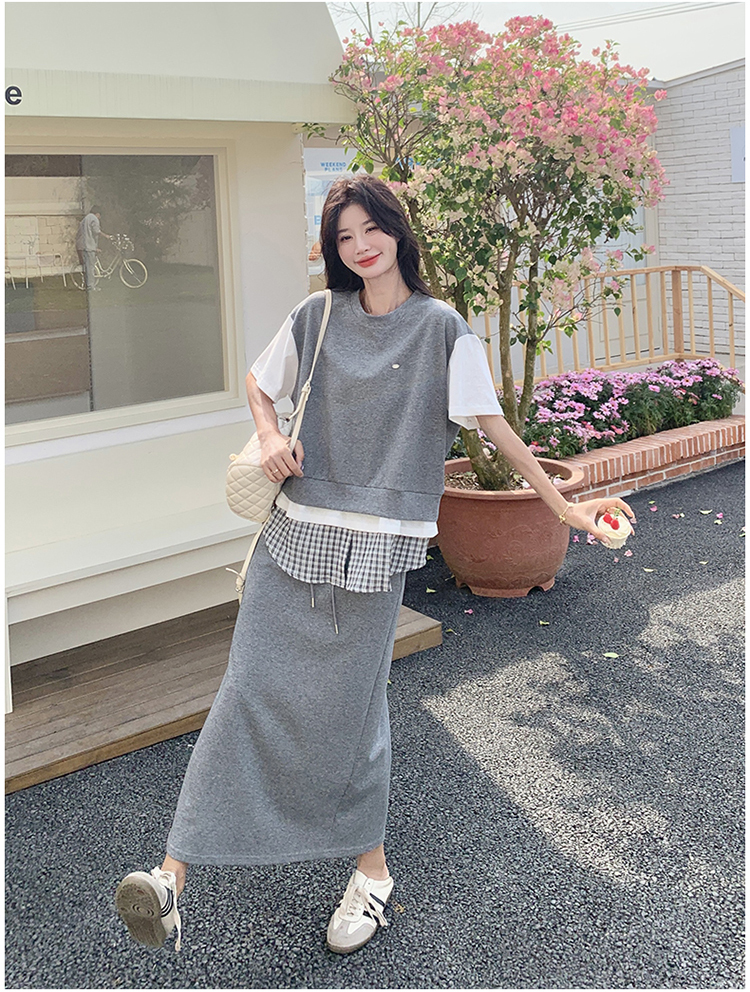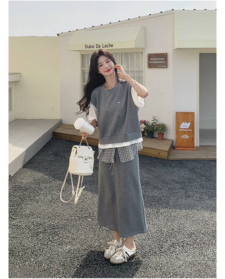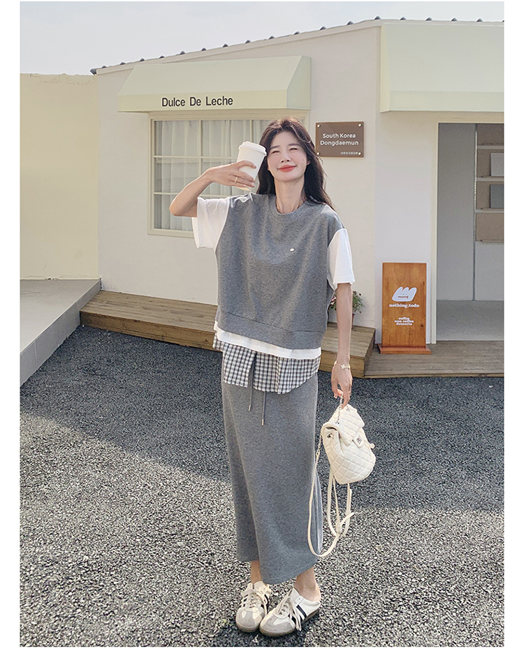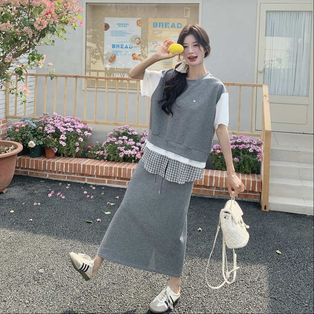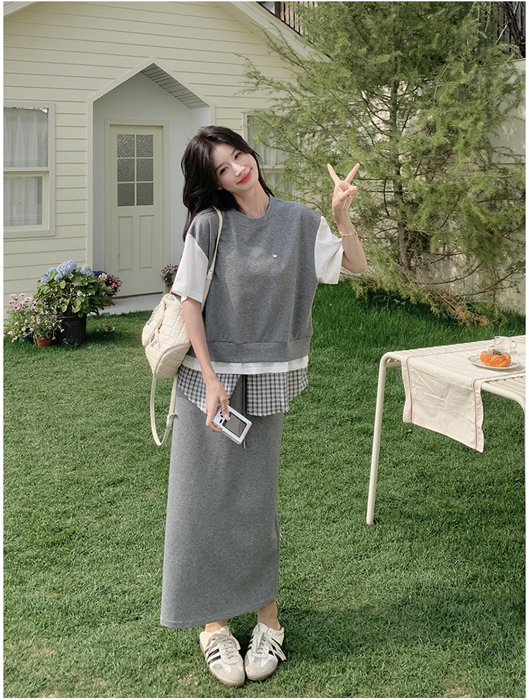 獨家訂製│2件式 撞色拼接假兩件式上衣+A字裙(07A1302)