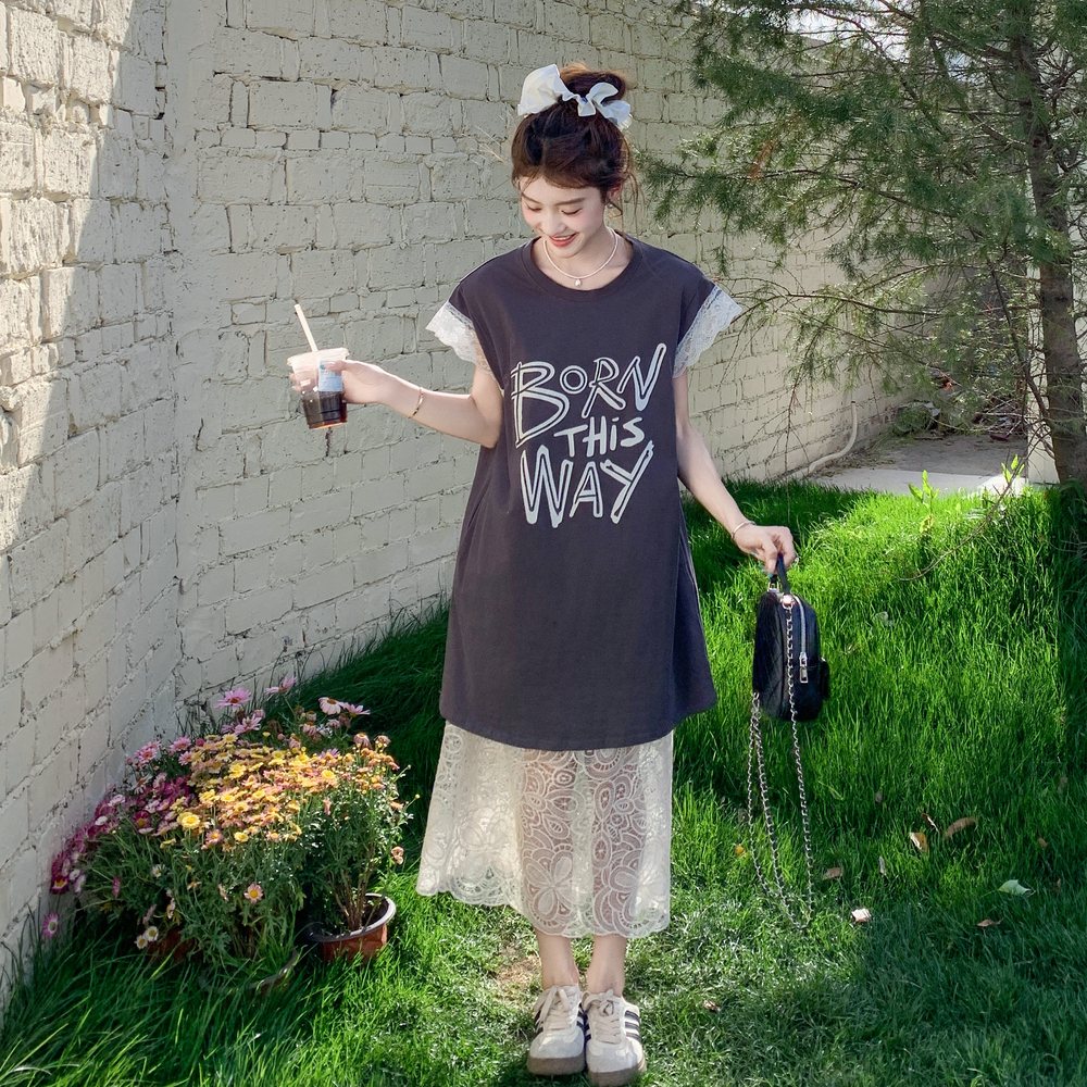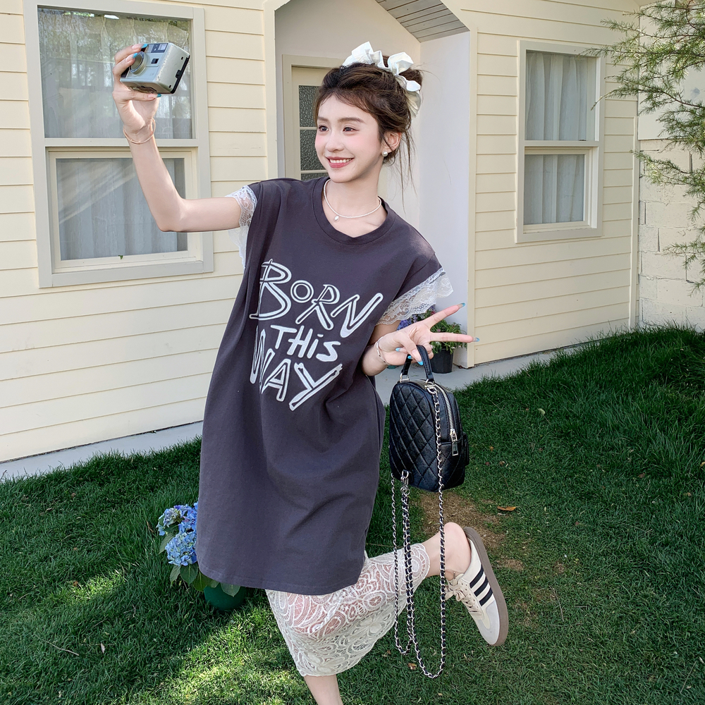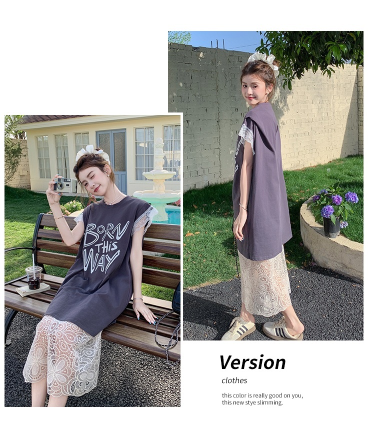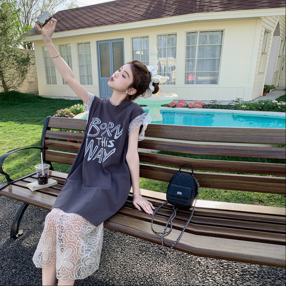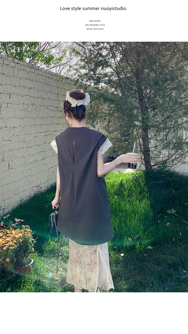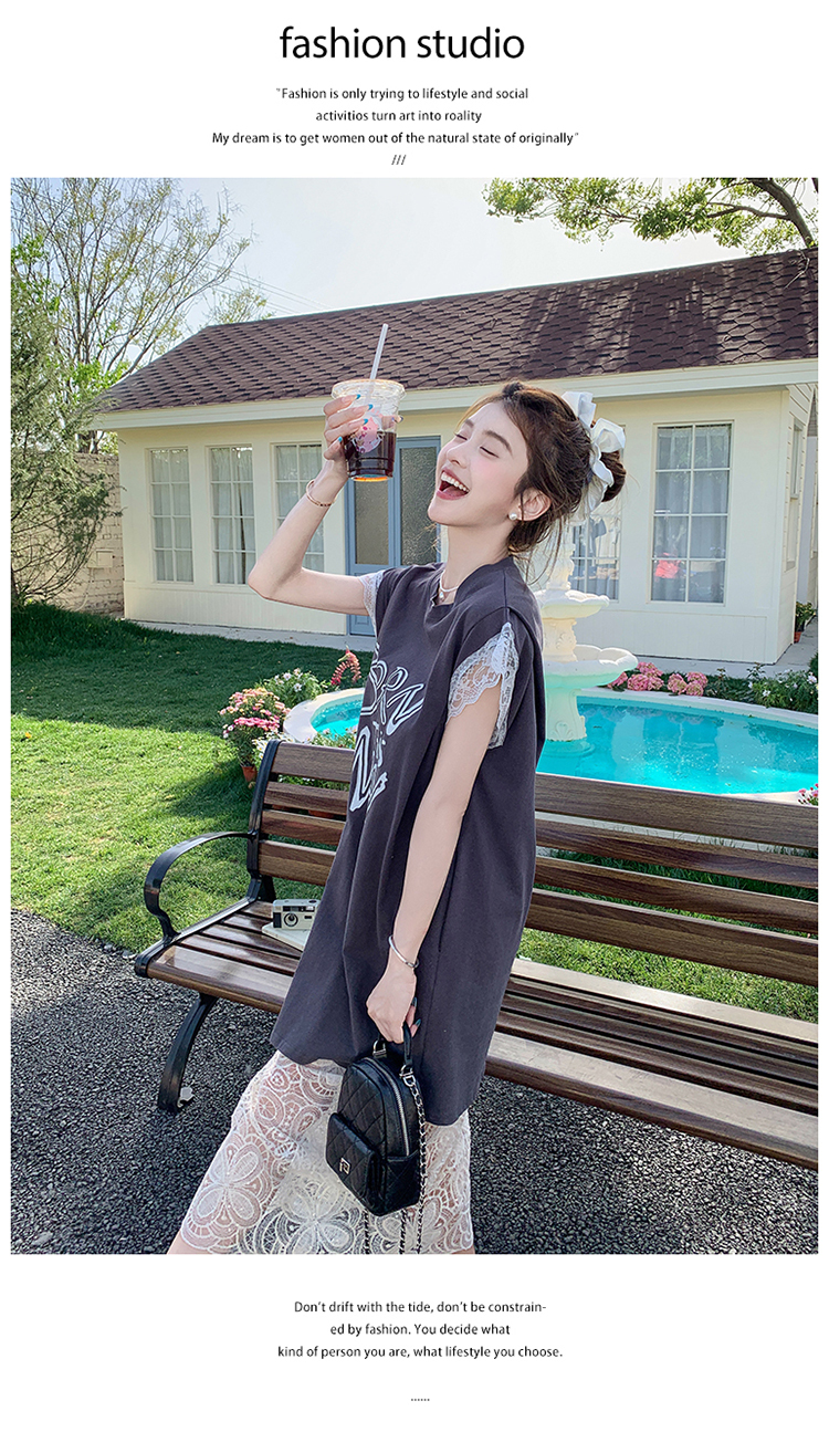 獨家訂製│2件式 蕾絲拼接長版衣+蕾絲A字裙(07A1318)