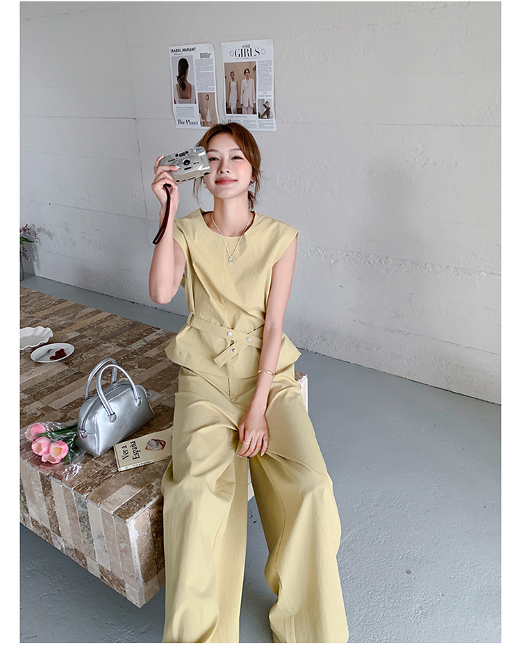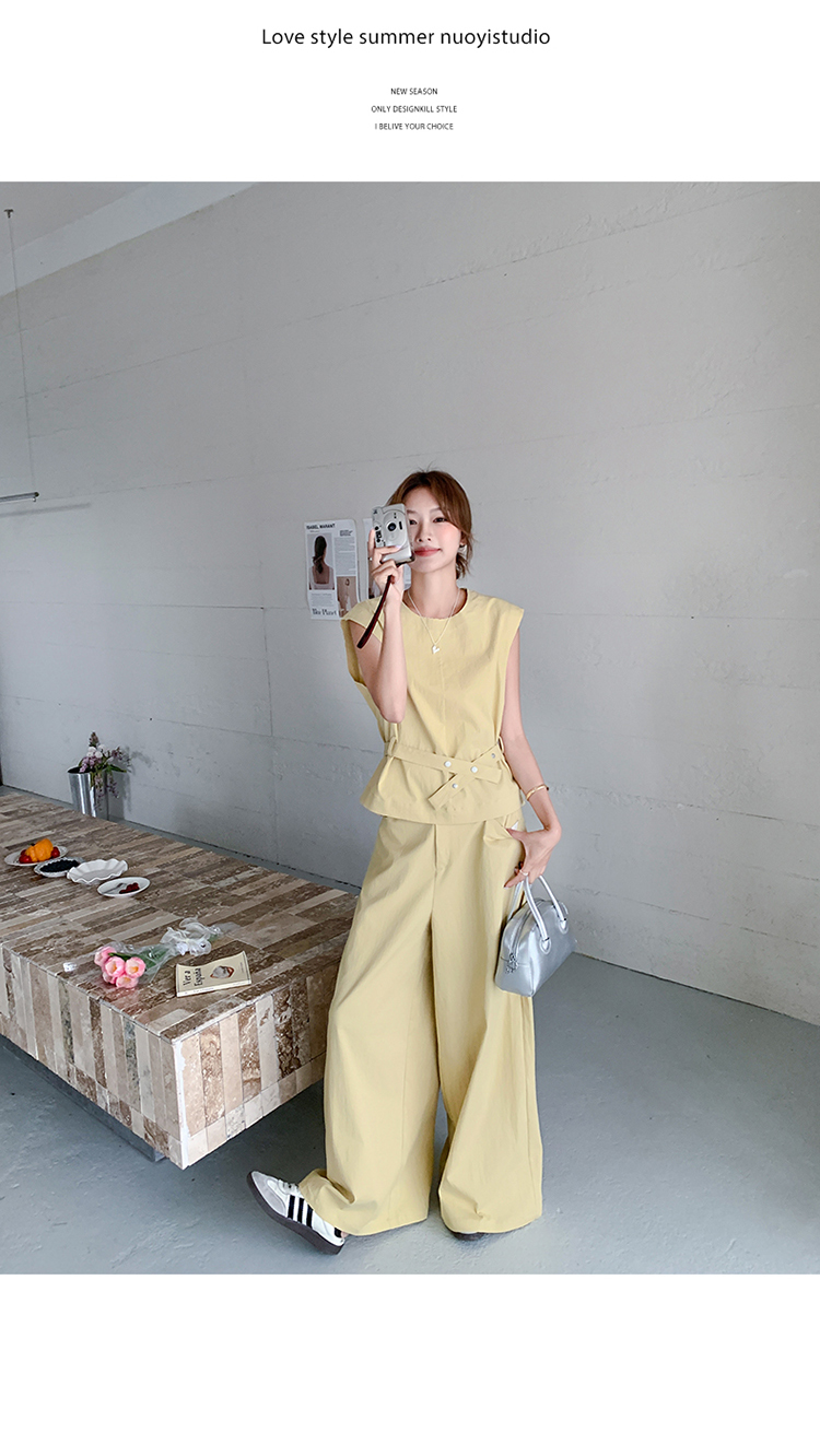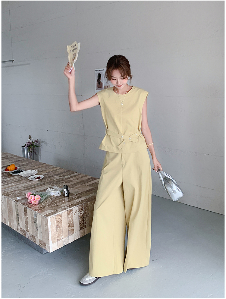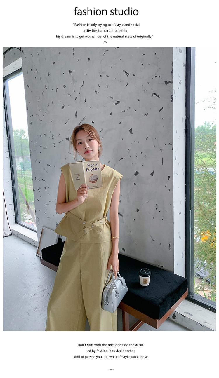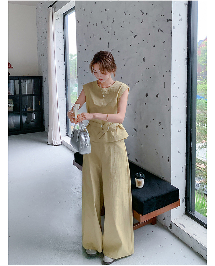 獨家訂製│2件式 收腰繫帶上衣+闊腿褲(07A1325)
