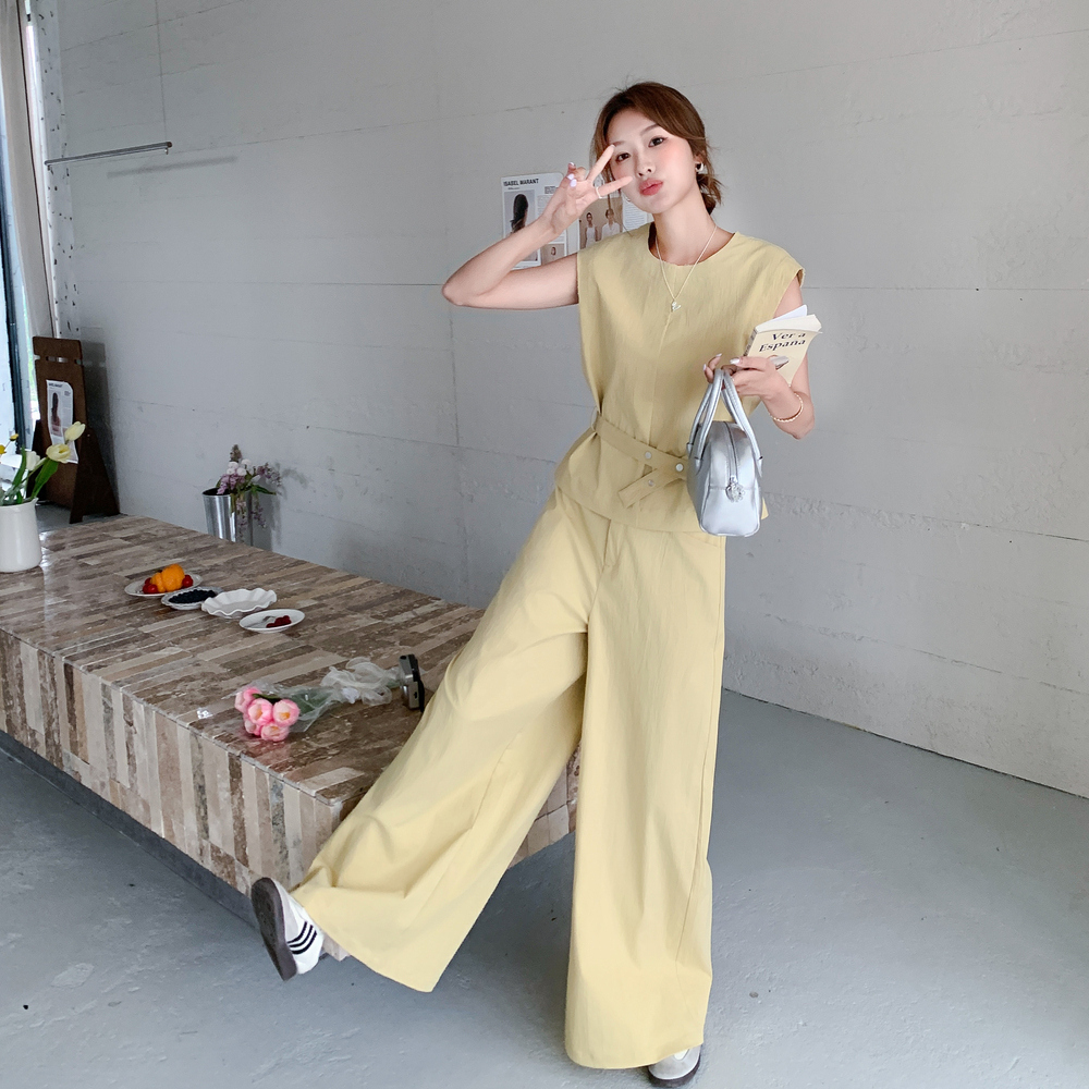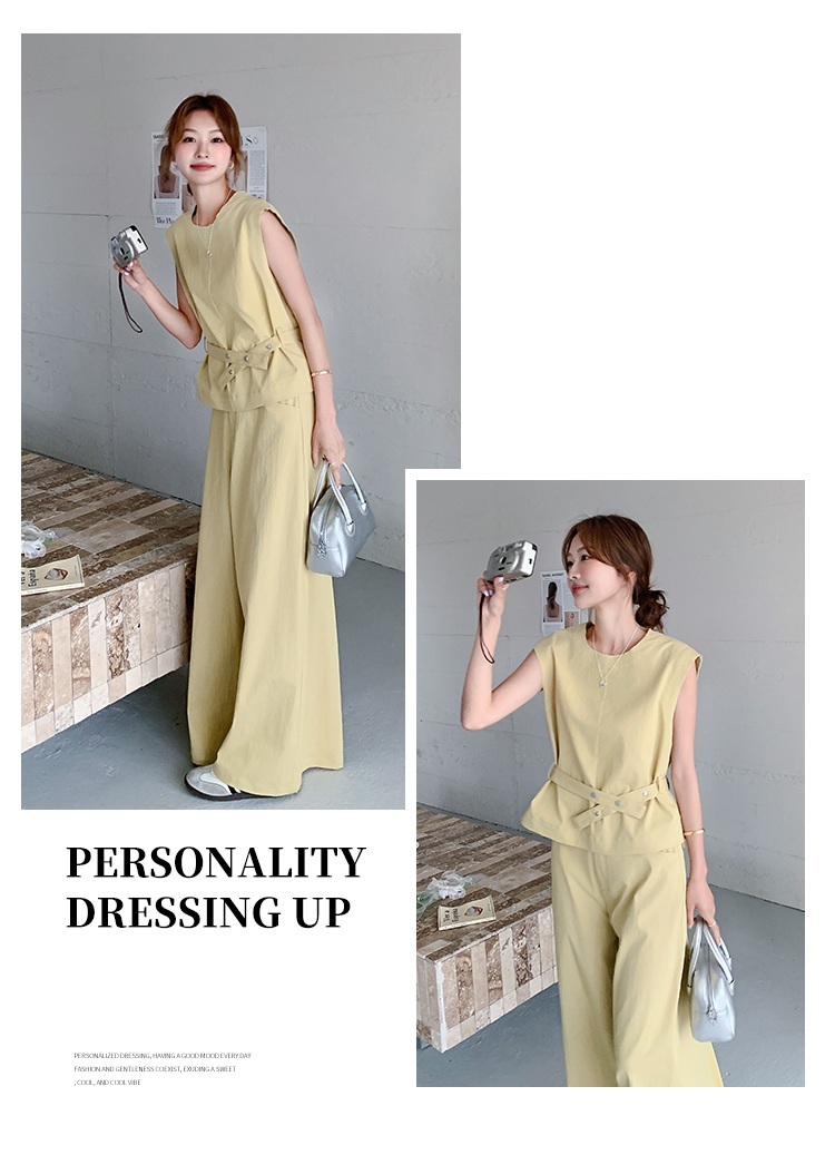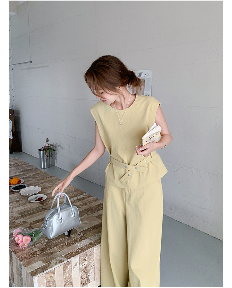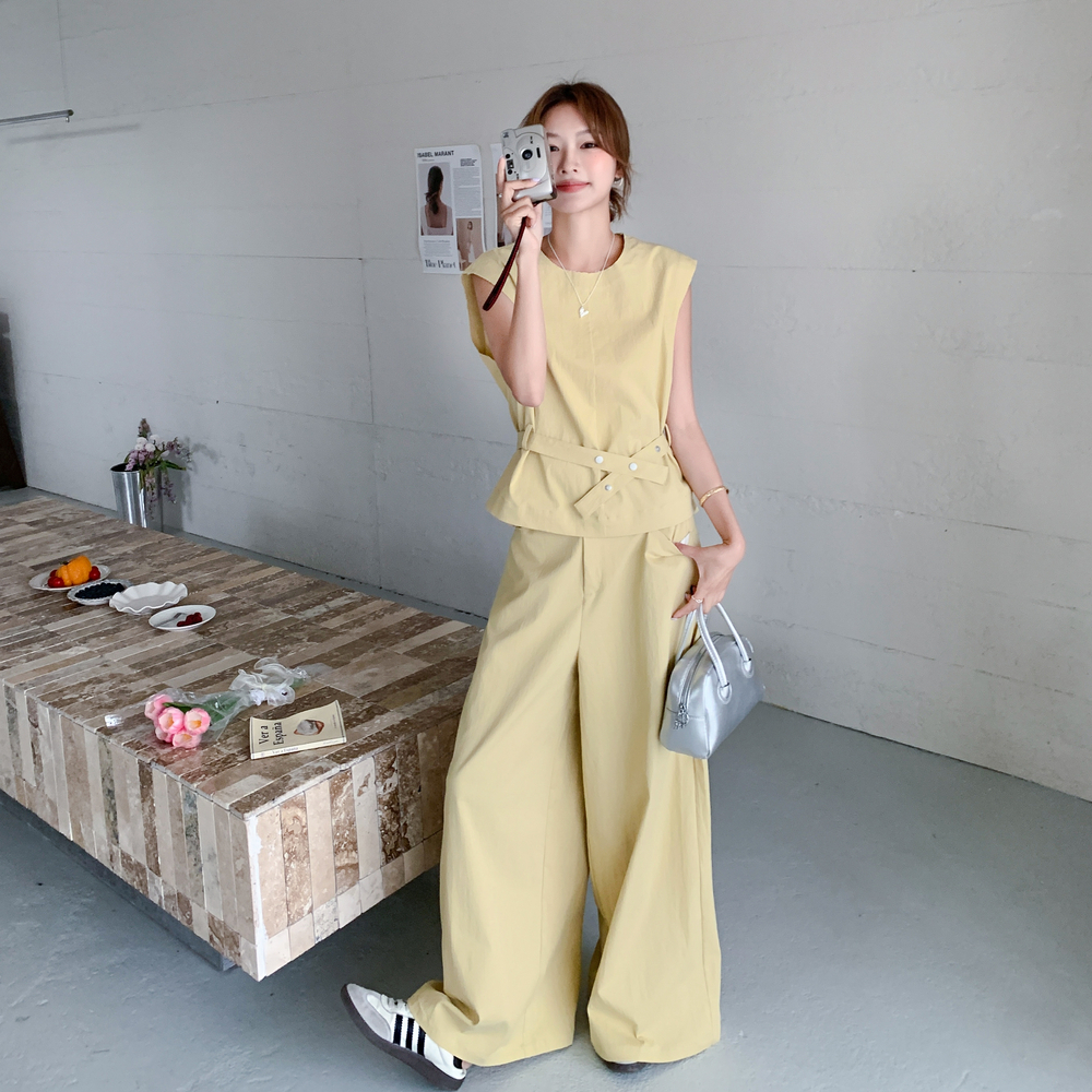 獨家訂製│2件式 收腰繫帶上衣+闊腿褲(07A1325)