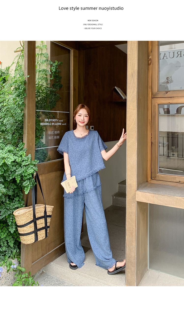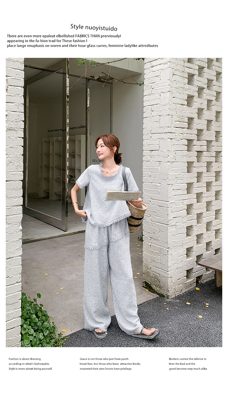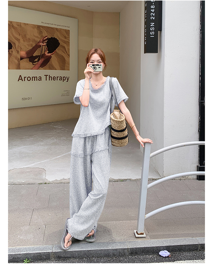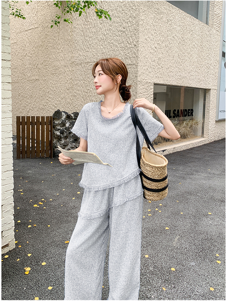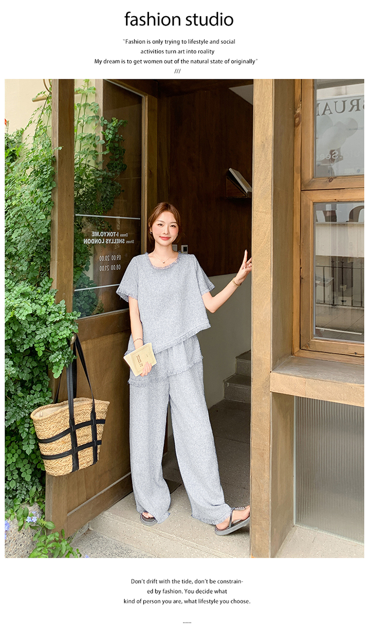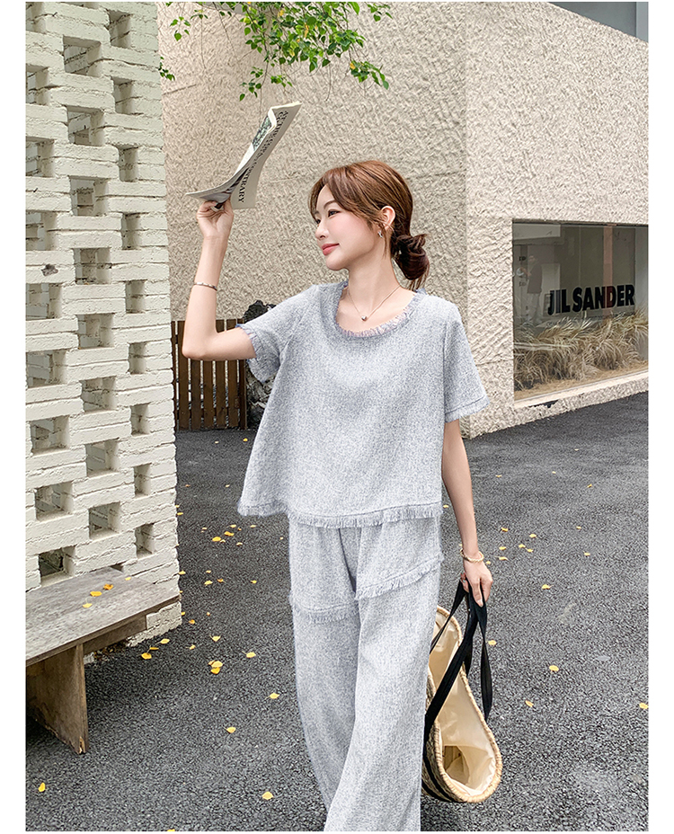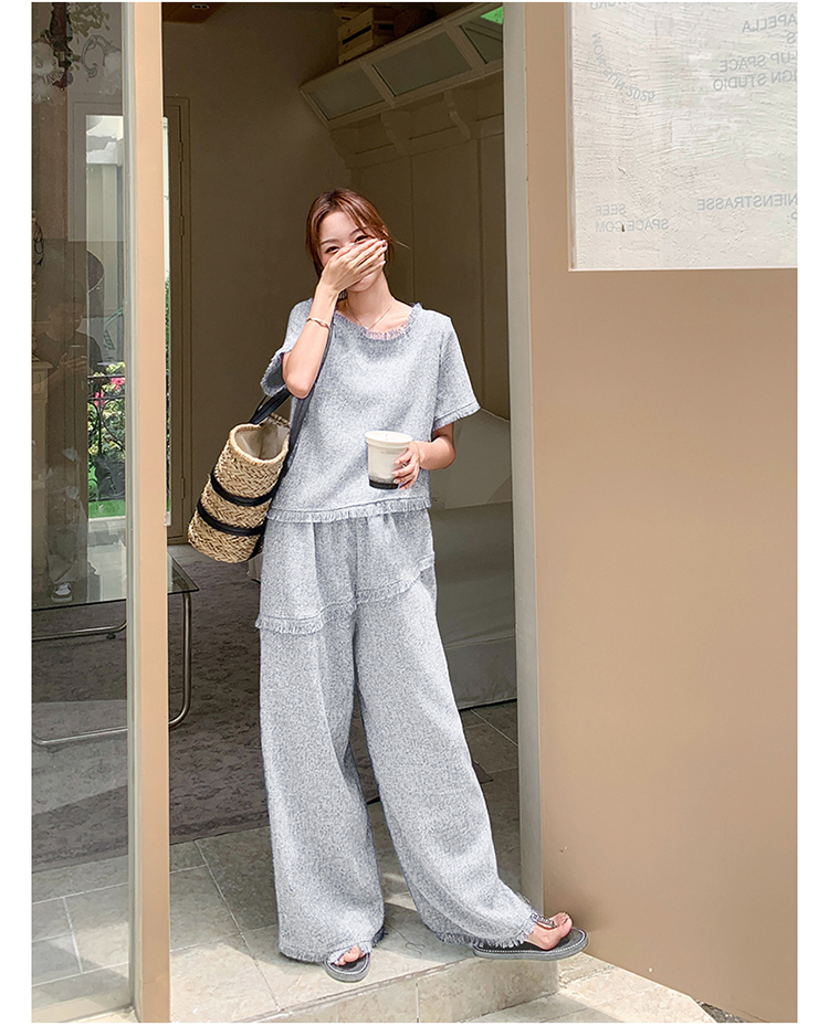 獨家訂製│2色2件式 小香風流蘇不規則上衣+寬褲(07A1369)