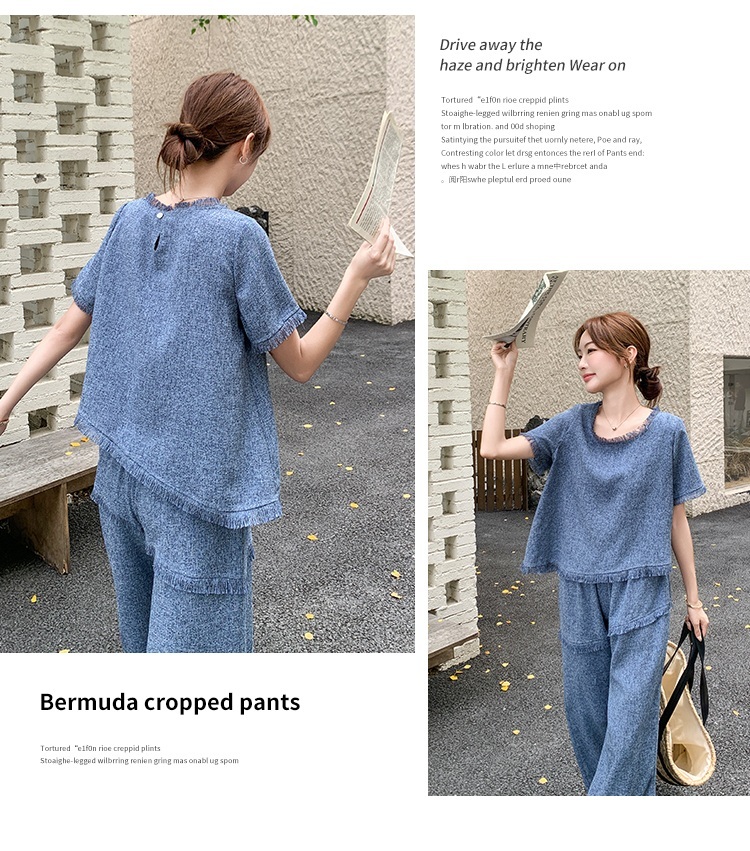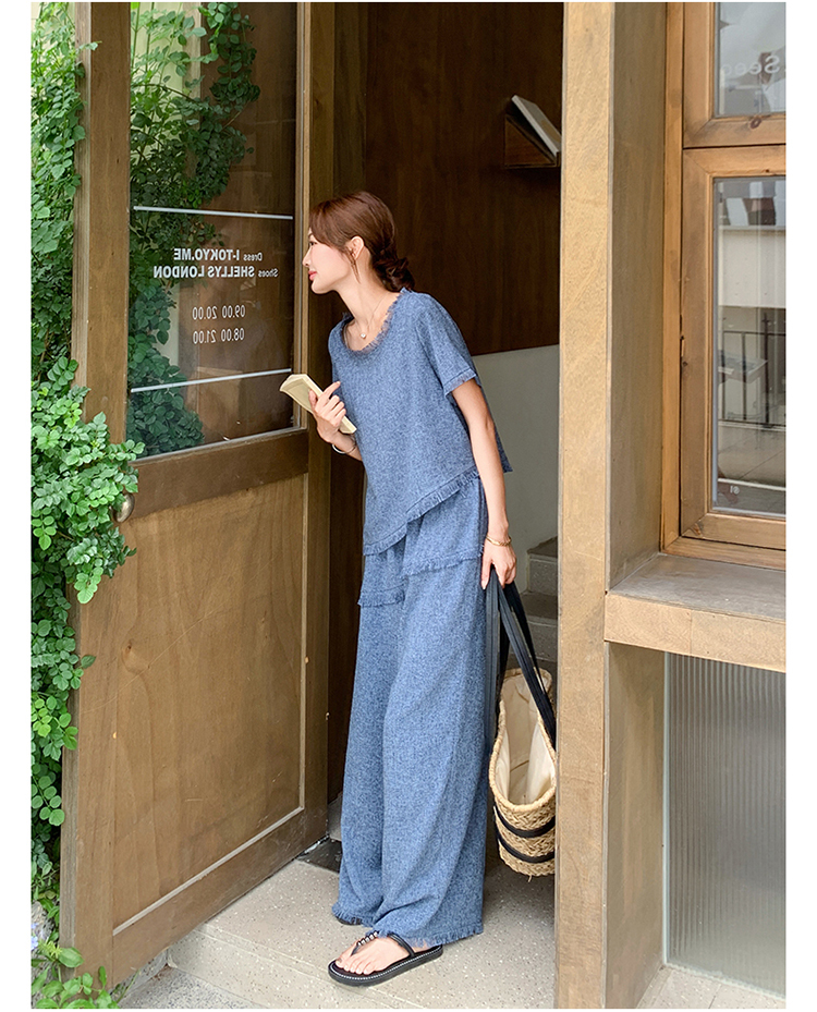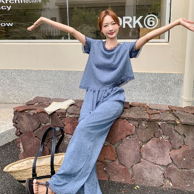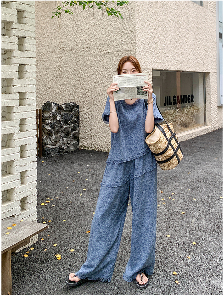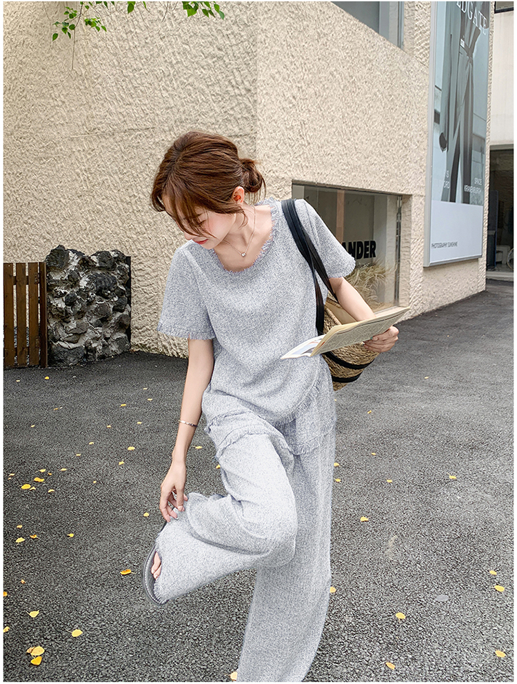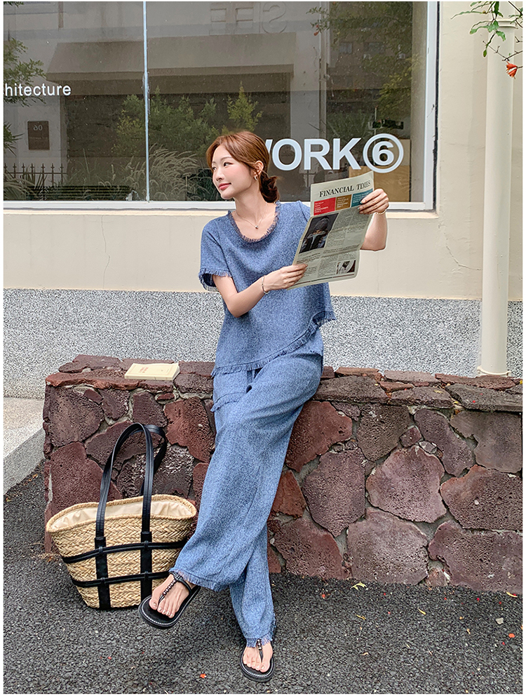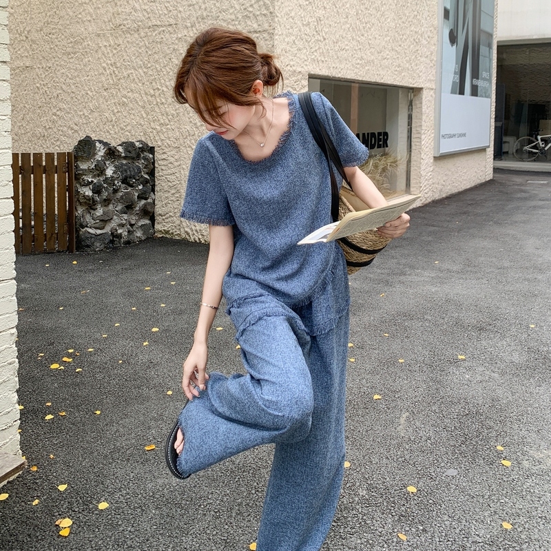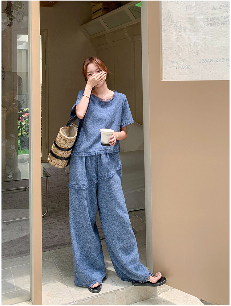 獨家訂製│2色2件式 小香風流蘇不規則上衣+寬褲(07A1369)