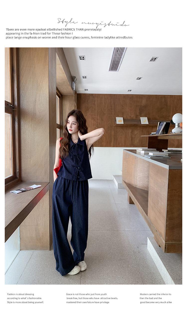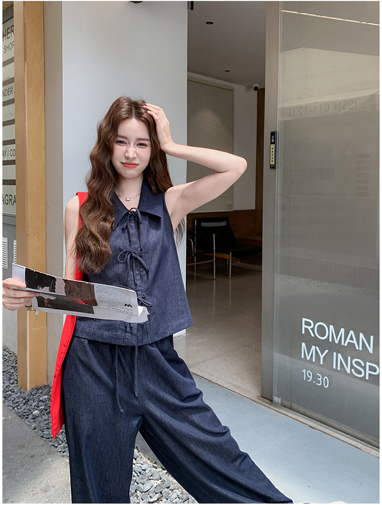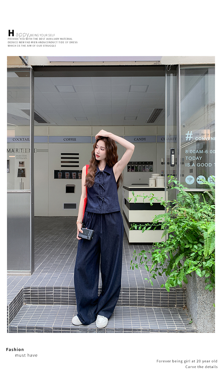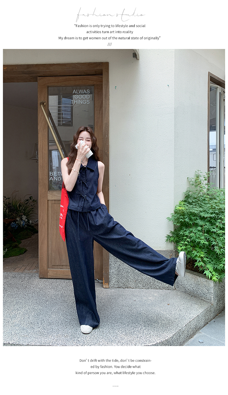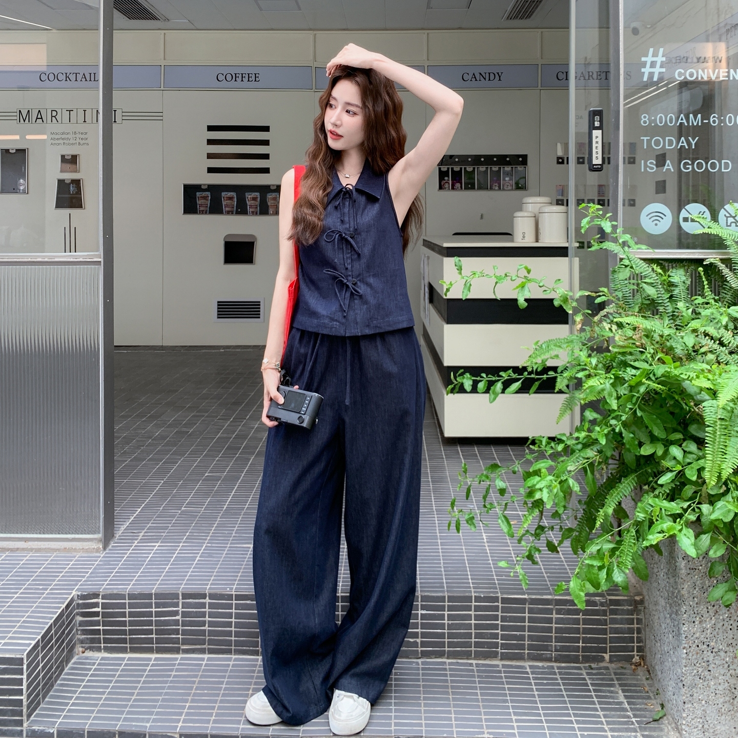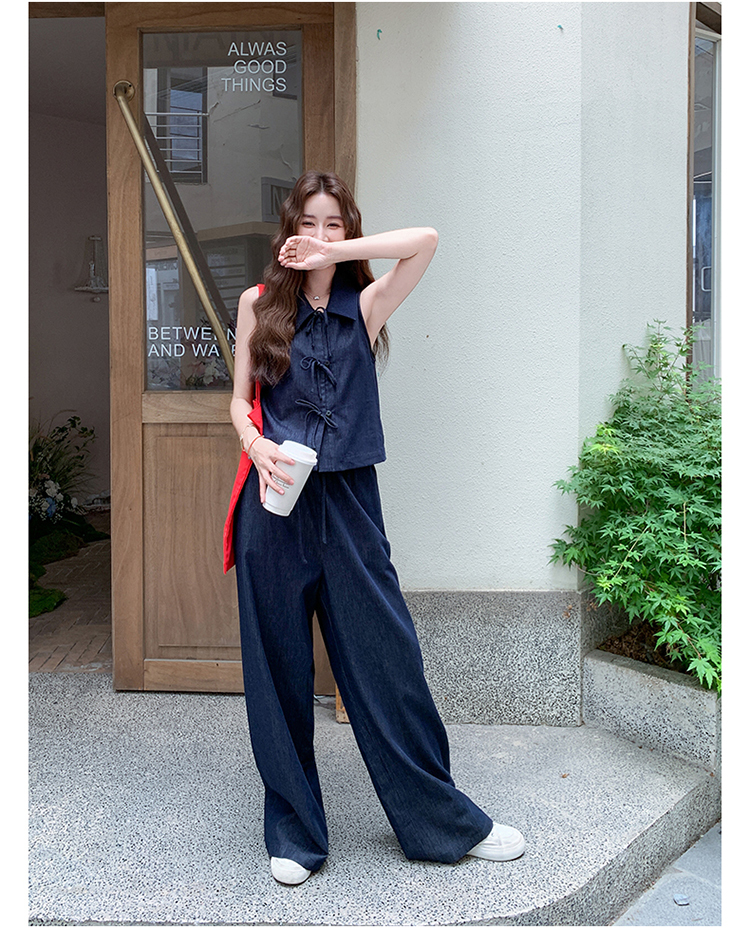 獨家訂製│2件式 綁帶翻領上衣+寬褲(07A1397)