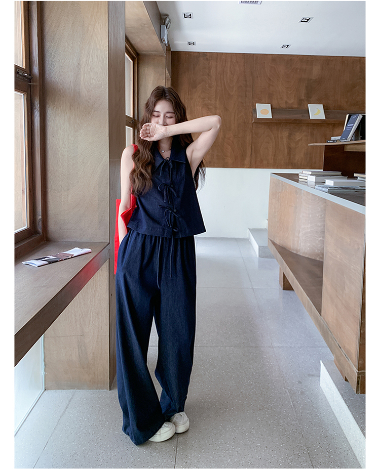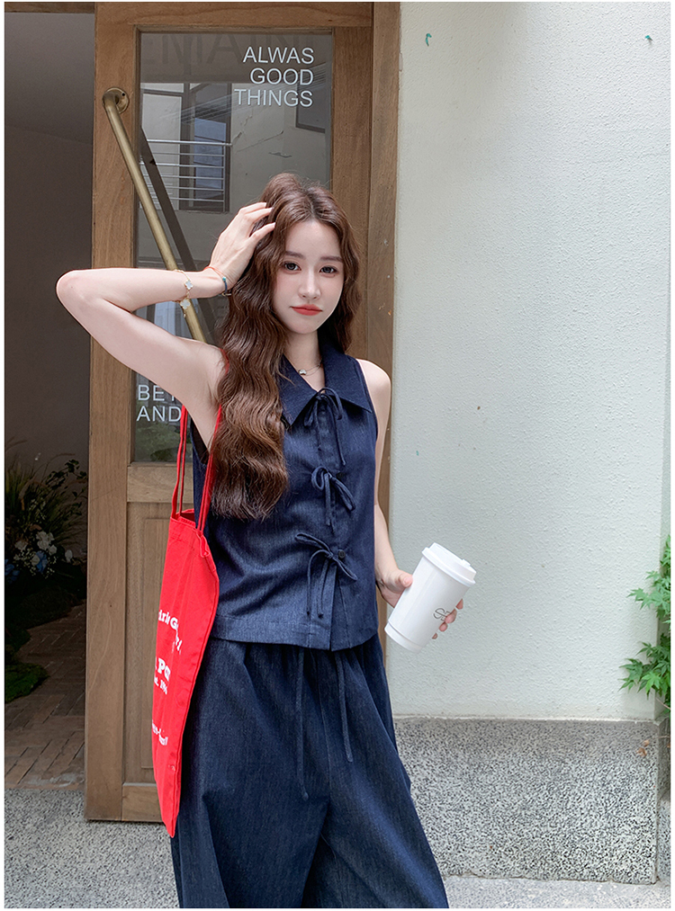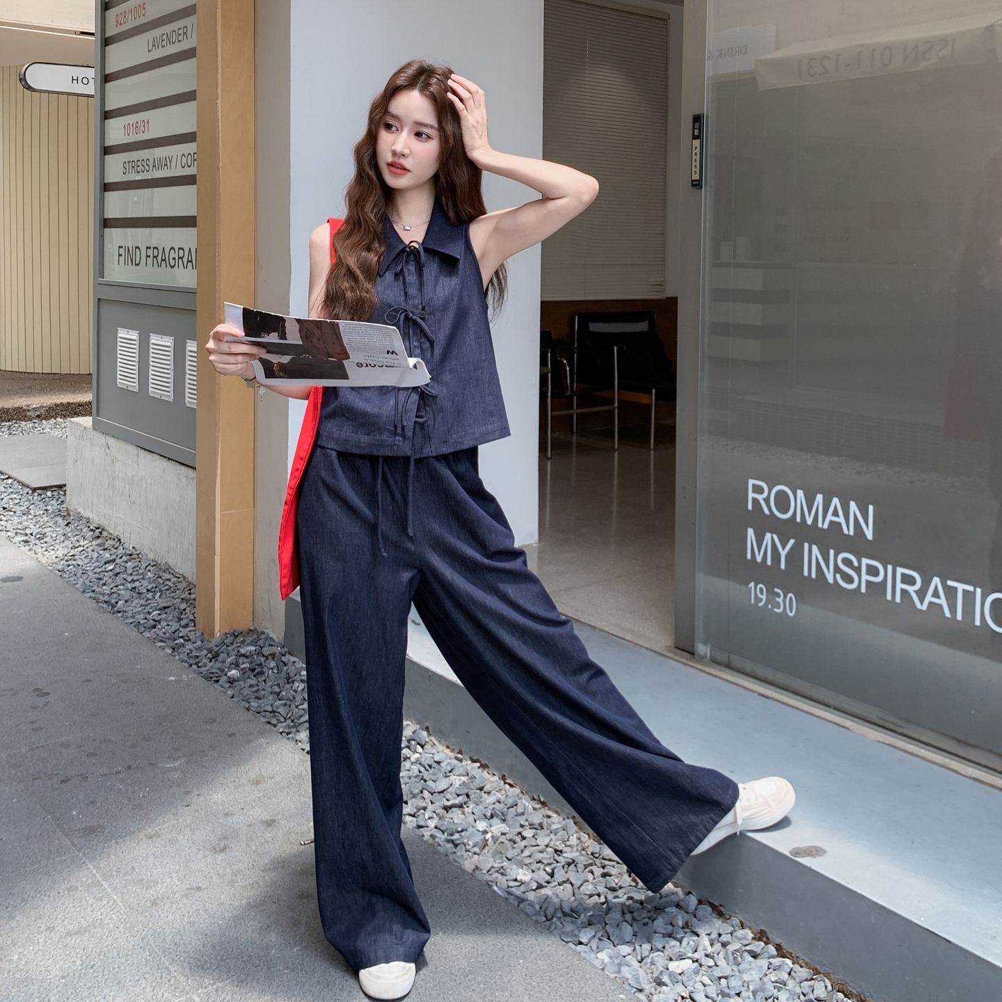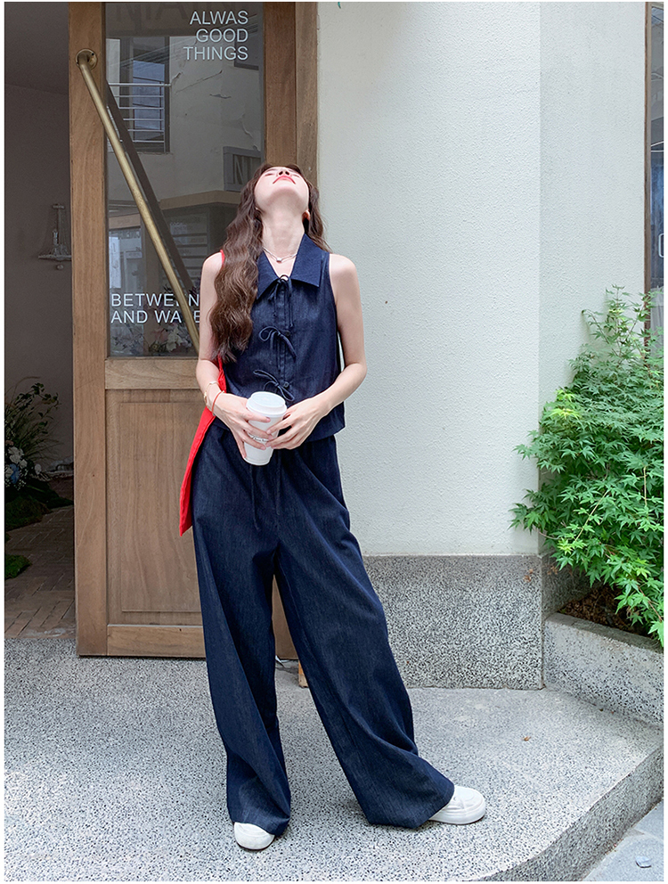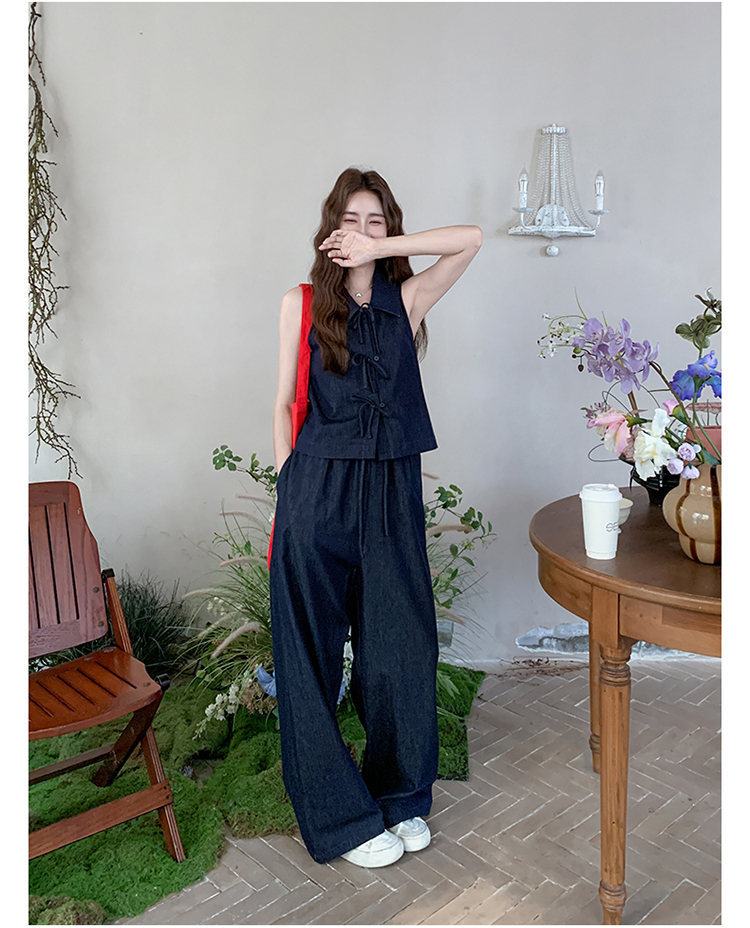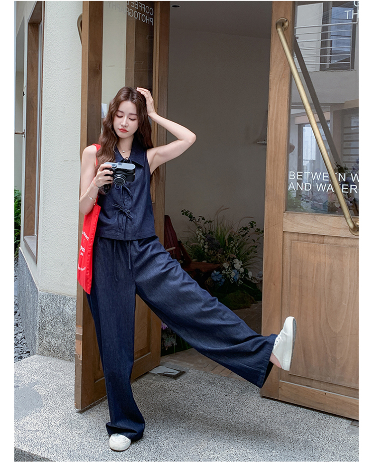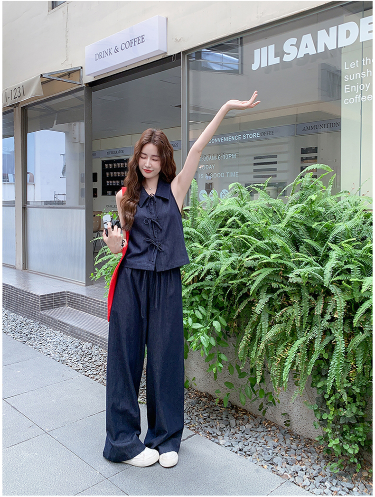 獨家訂製│2件式 綁帶翻領上衣+寬褲(07A1397)