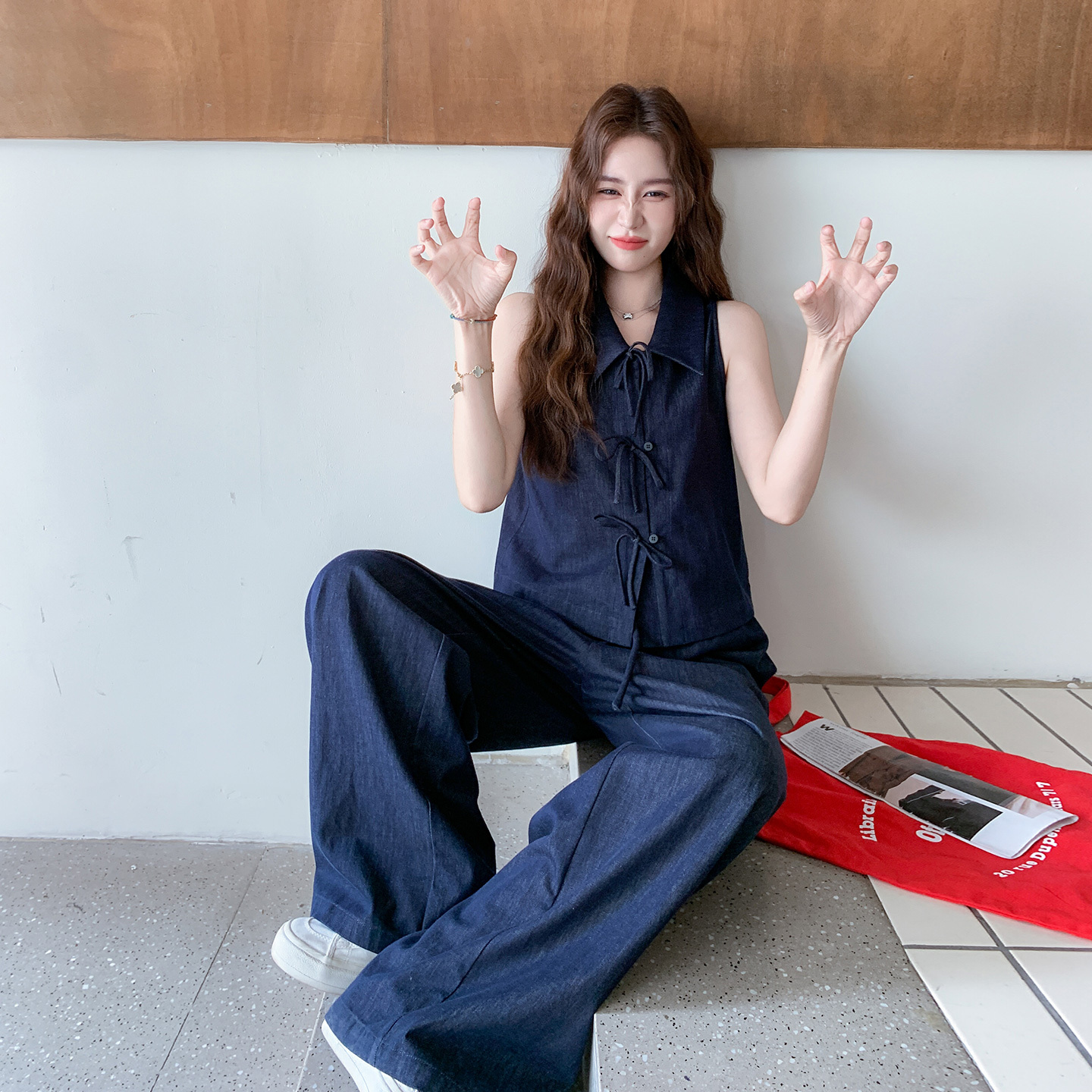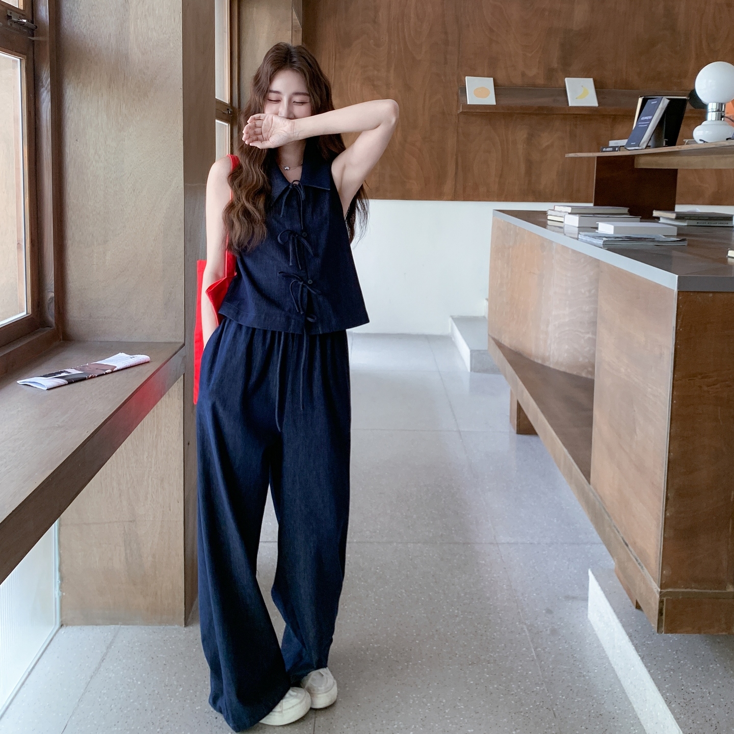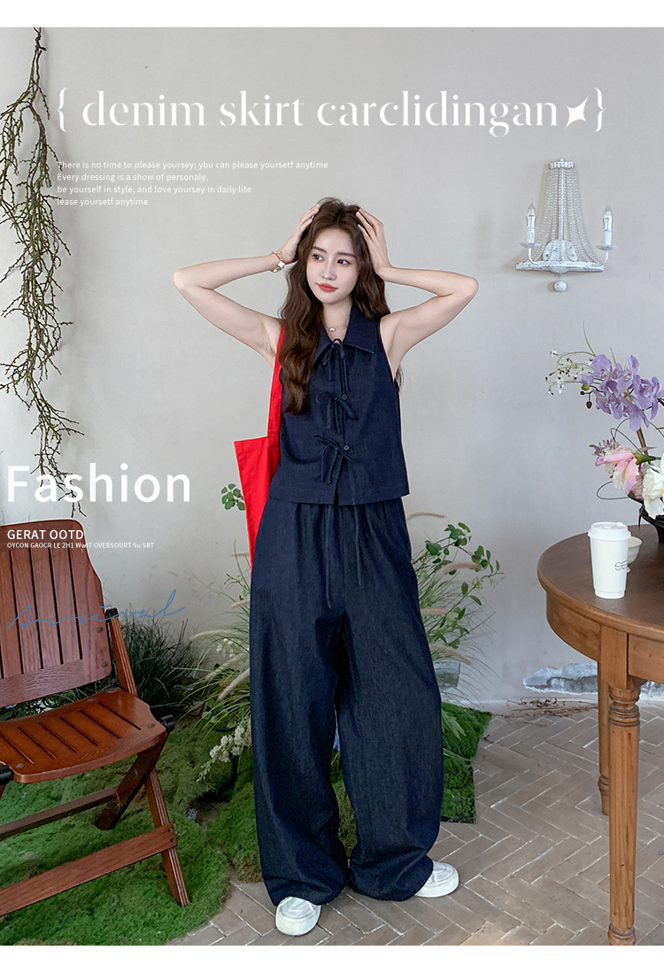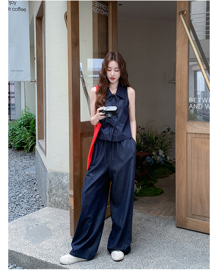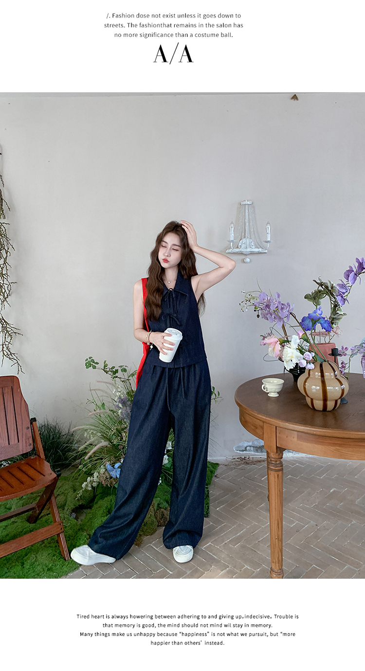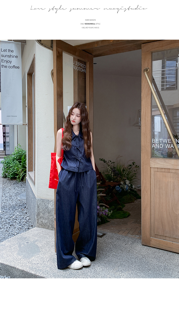 獨家訂製│2件式 綁帶翻領上衣+寬褲(07A1397)