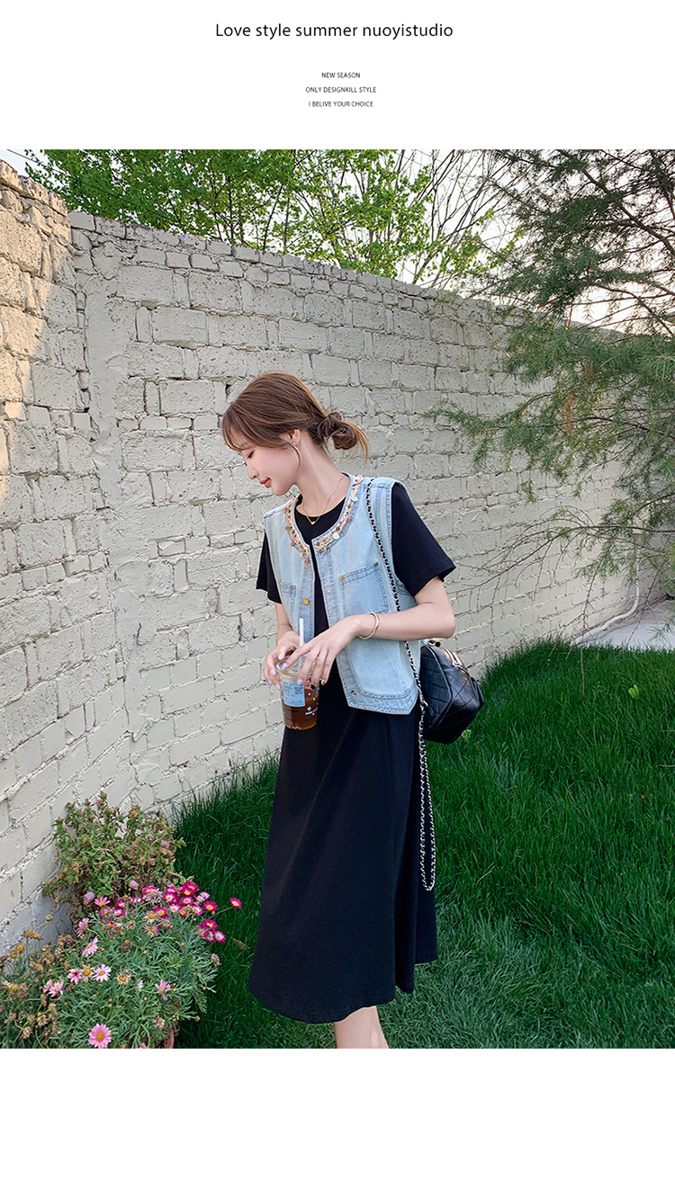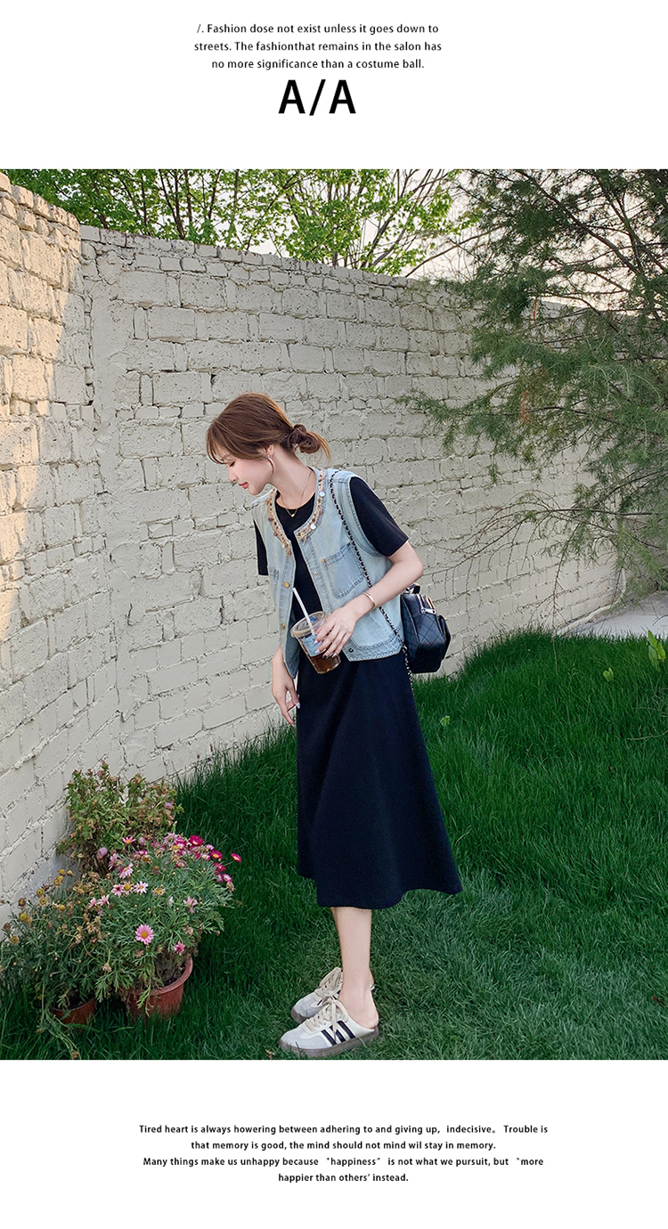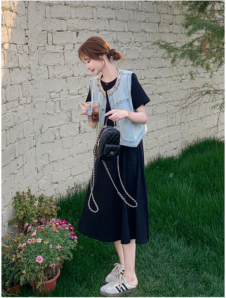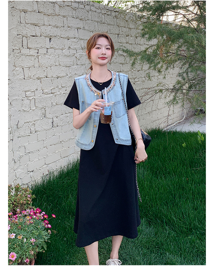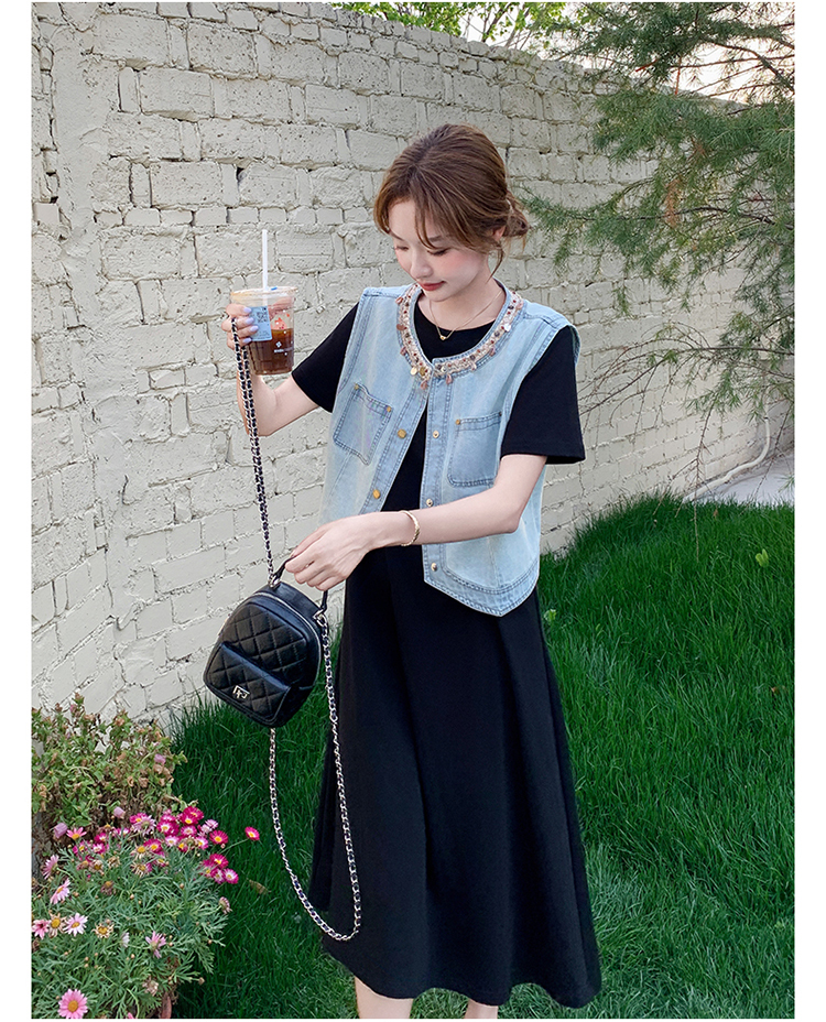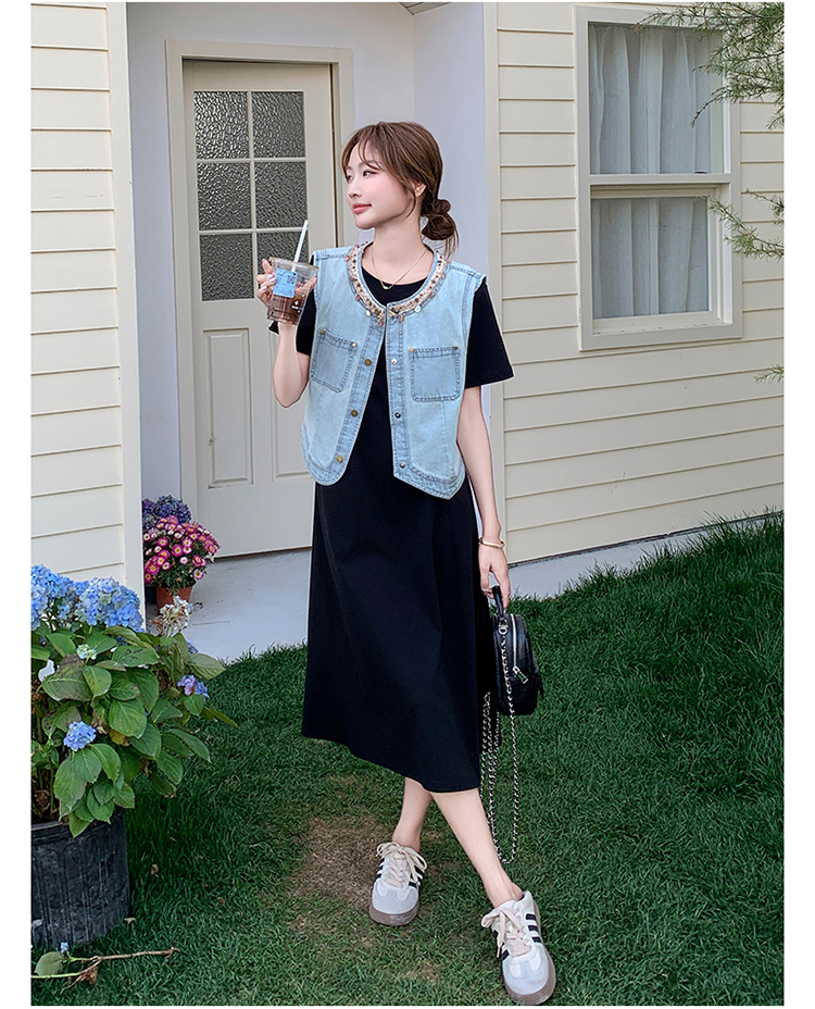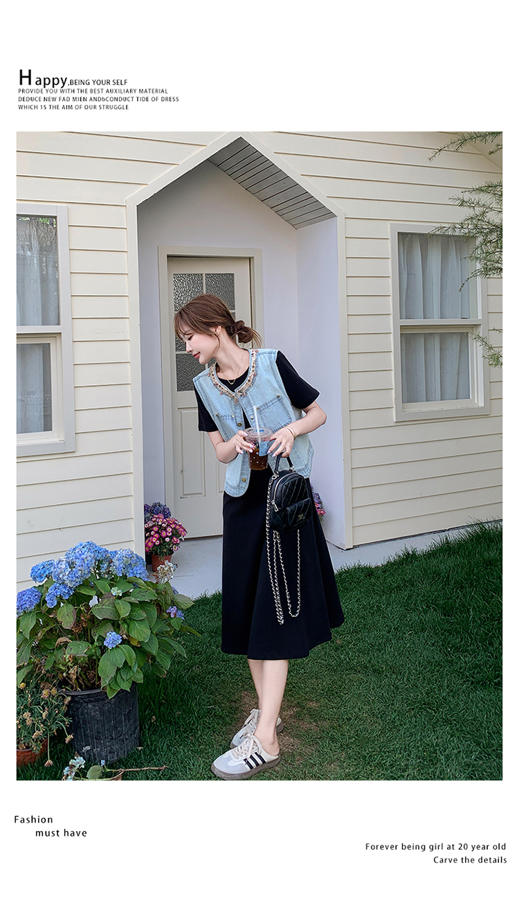 獨家訂製│2件式 亮片牛仔背心+T恤裙(07A1414)