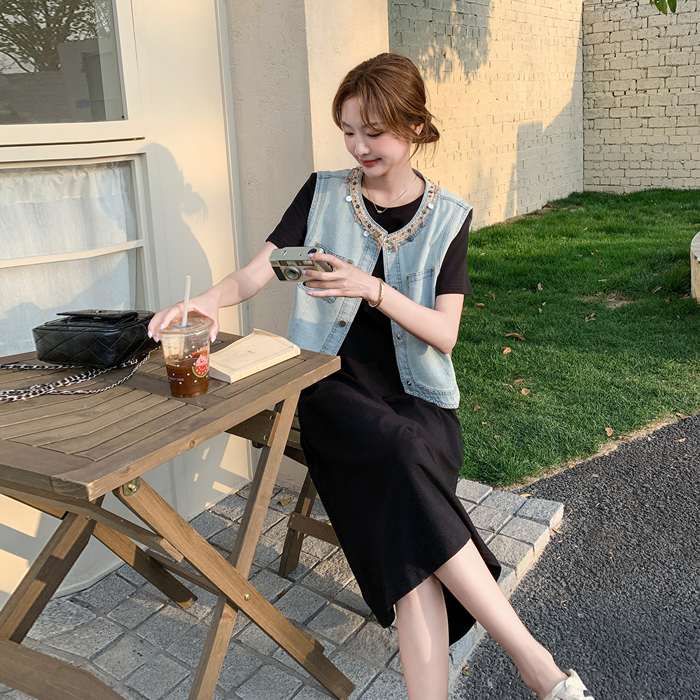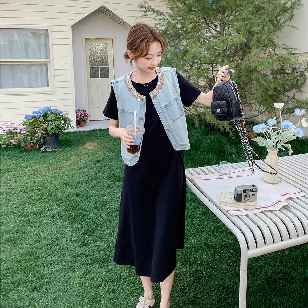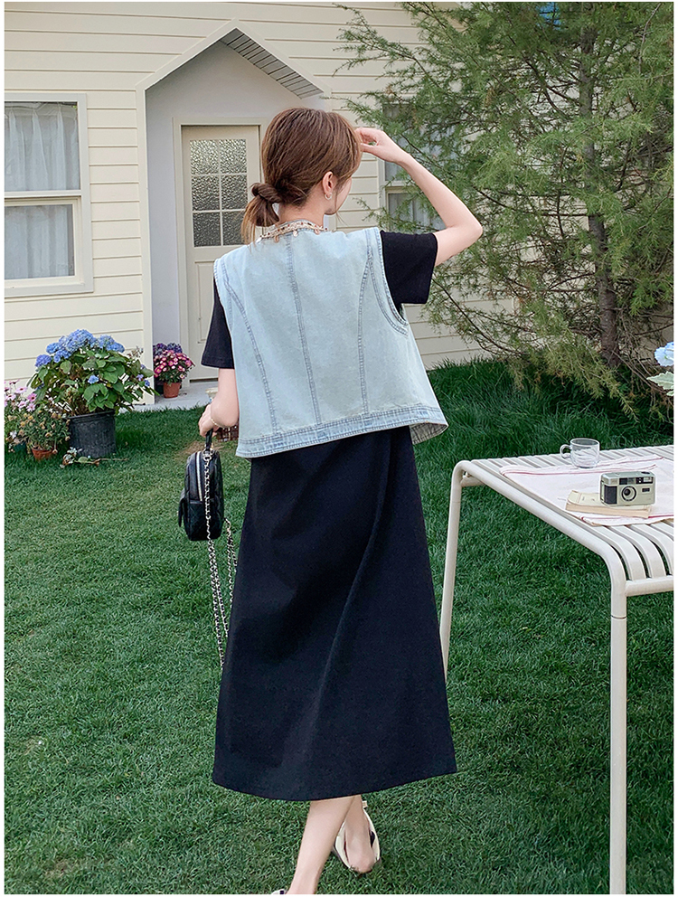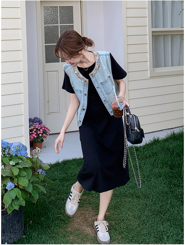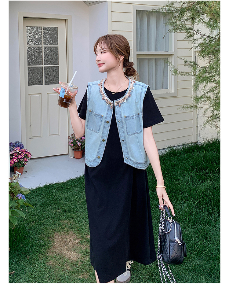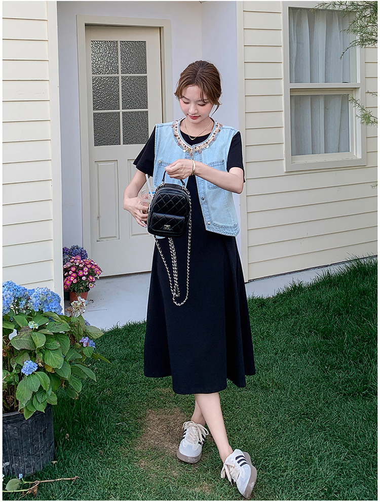 獨家訂製│2件式 亮片牛仔背心+T恤裙(07A1414)