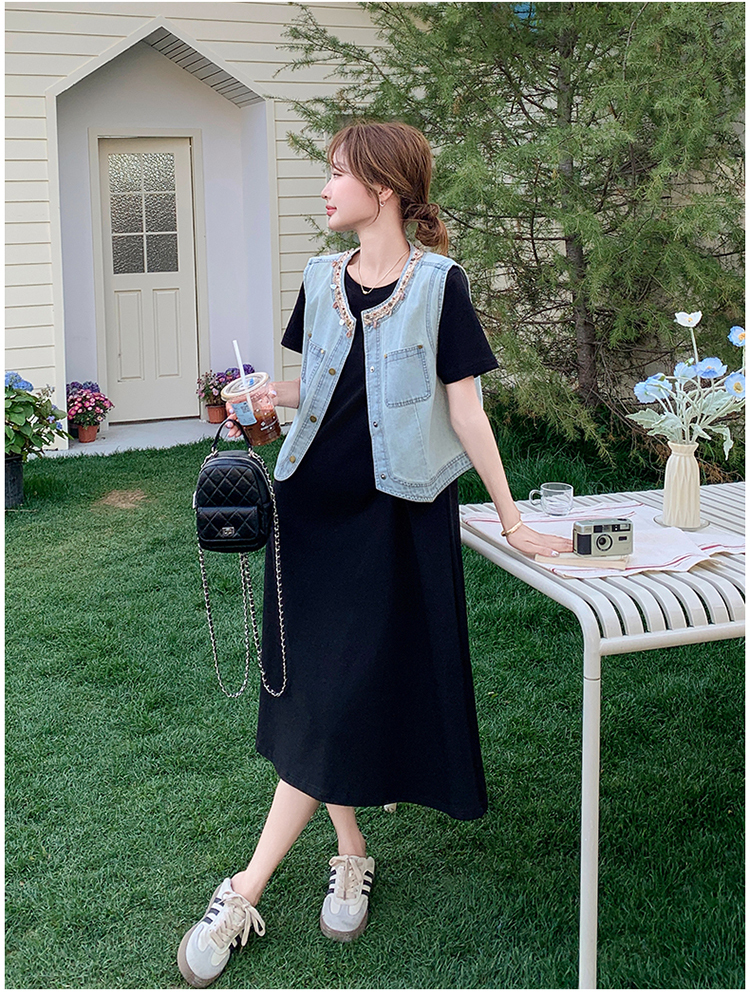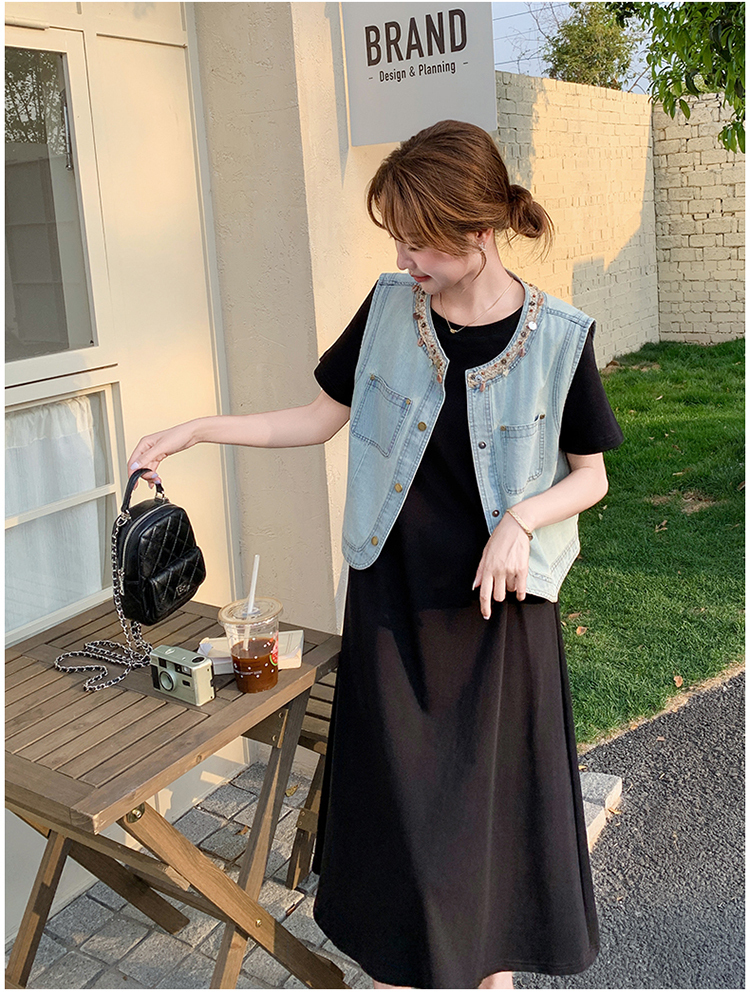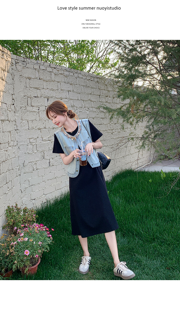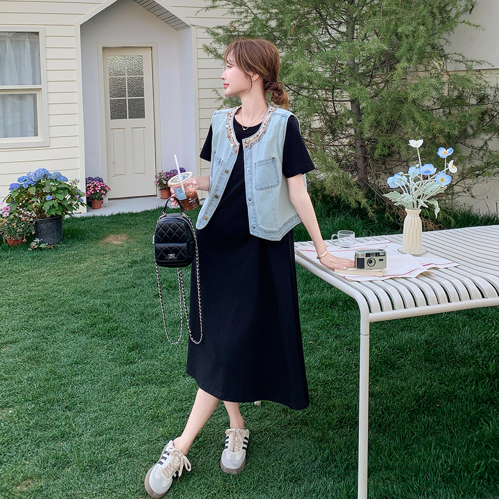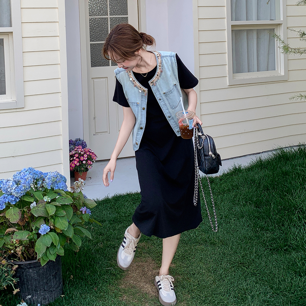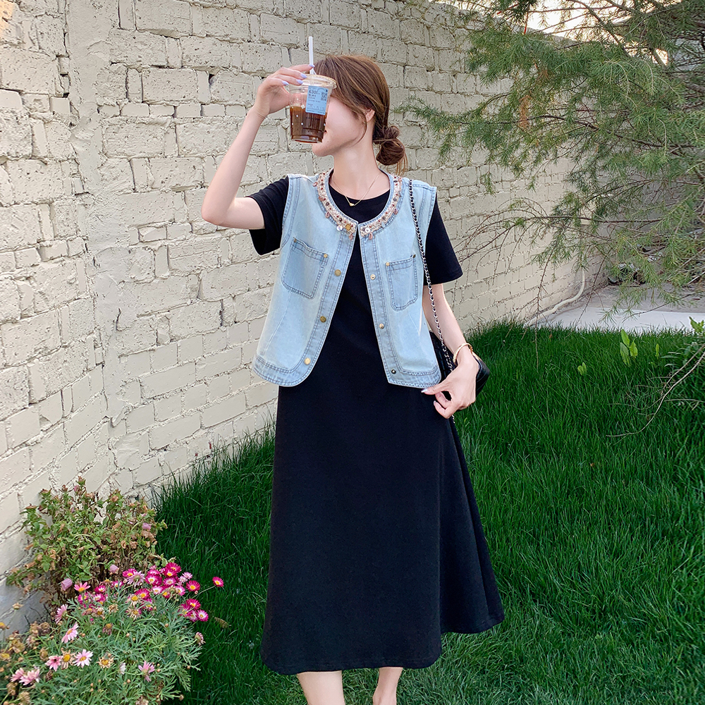 獨家訂製│2件式 亮片牛仔背心+T恤裙(07A1414)