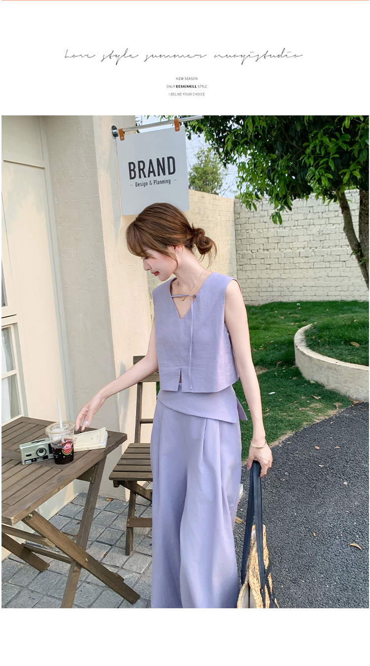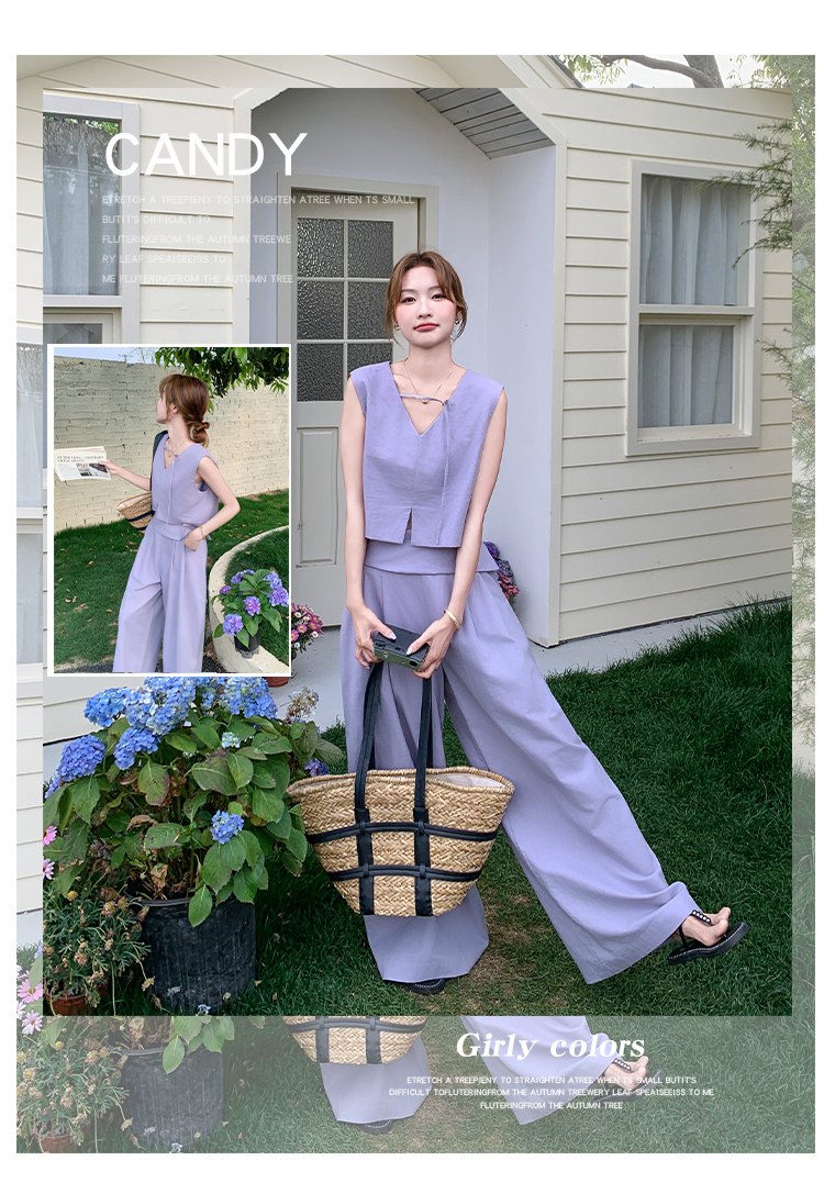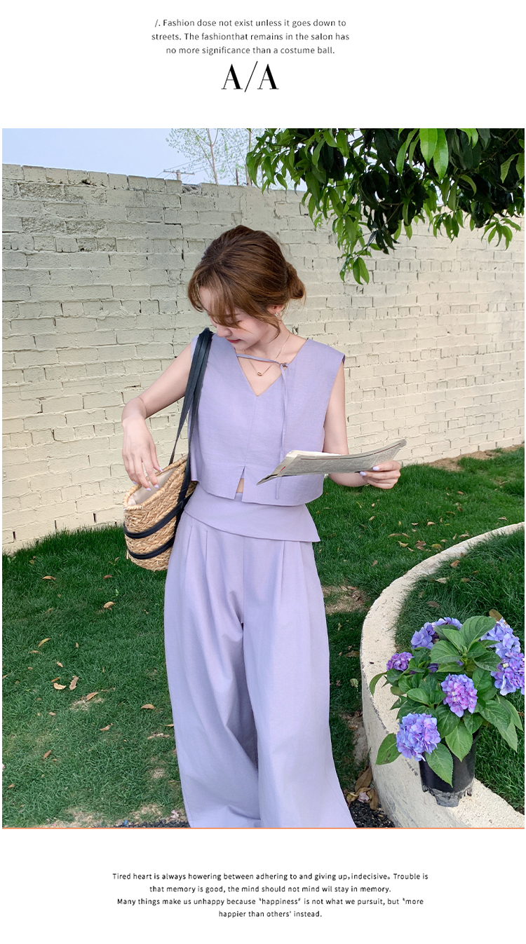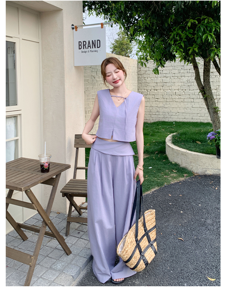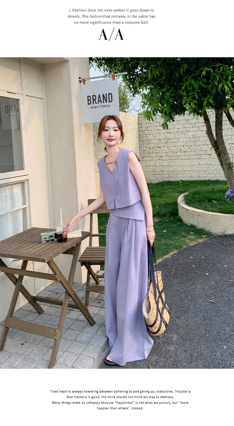 獨家訂製│2件式 V領短款背心+拼接式寬褲(07A1420)