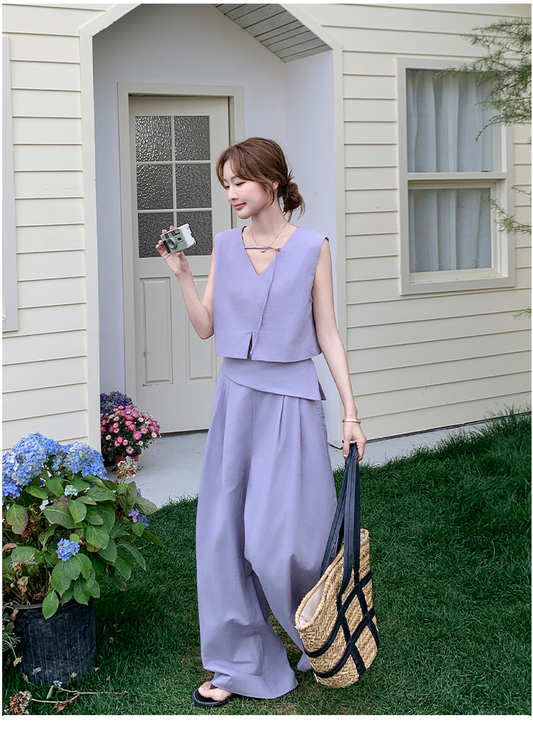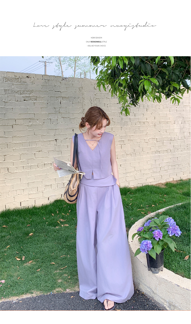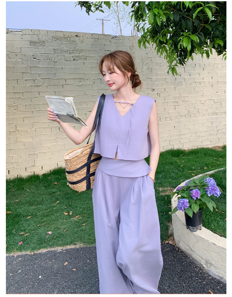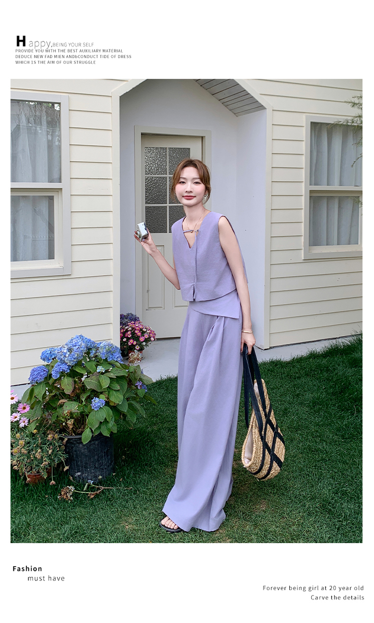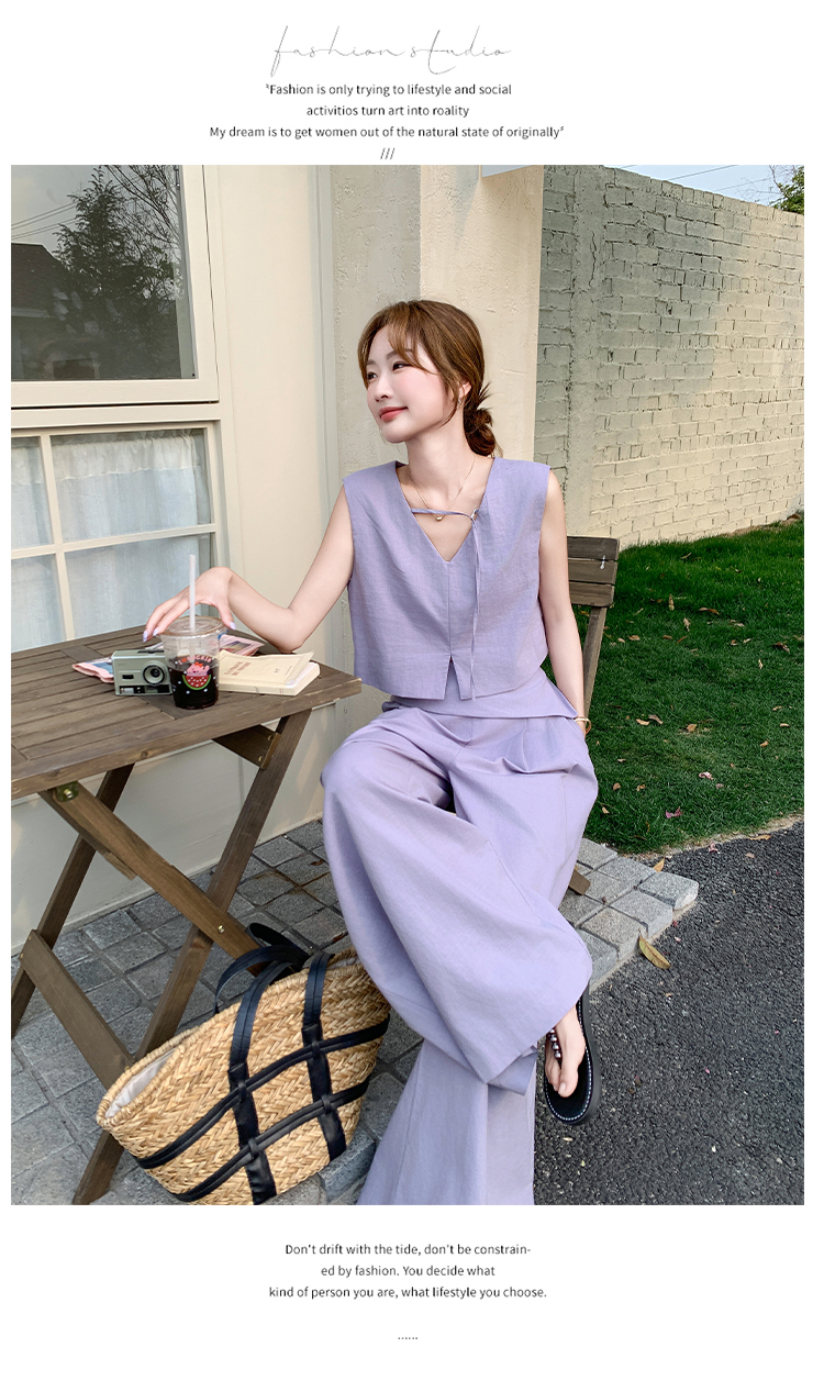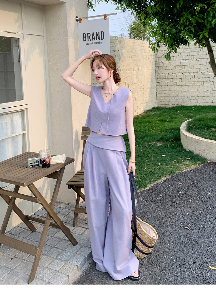 獨家訂製│2件式 V領短款背心+拼接式寬褲(07A1420)