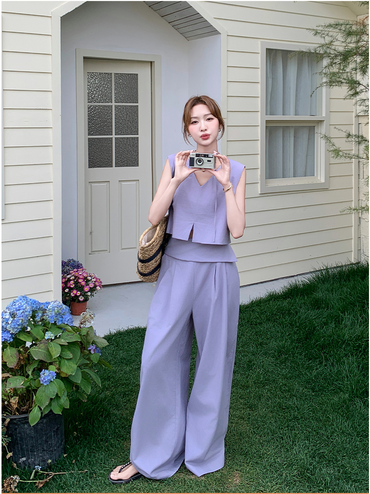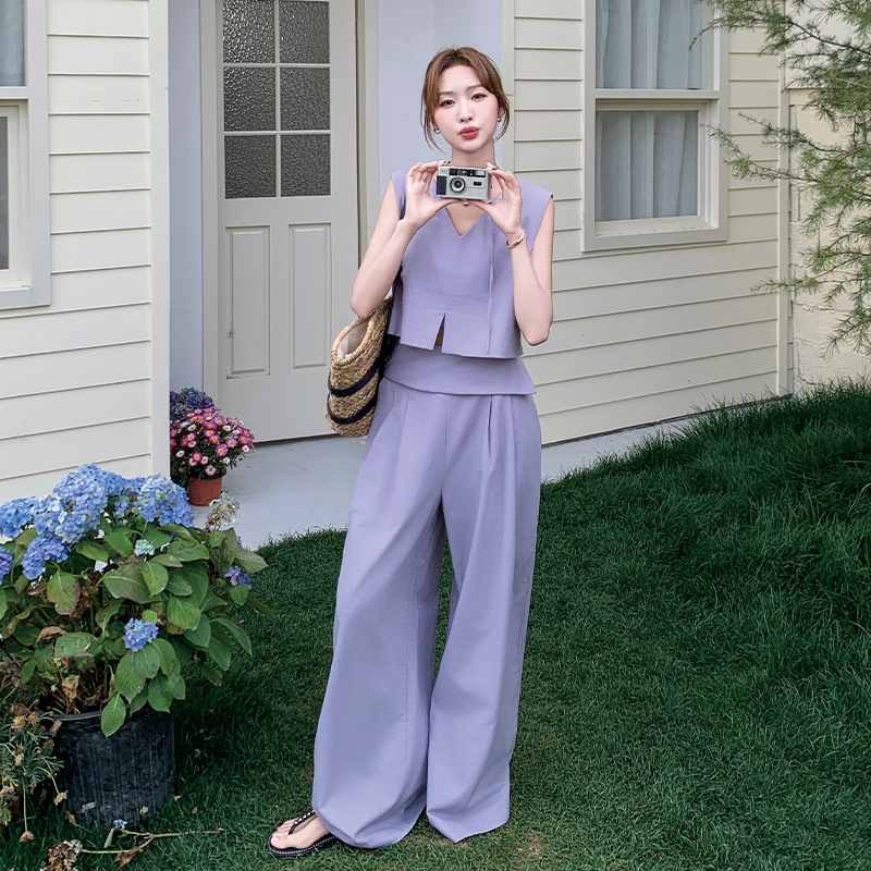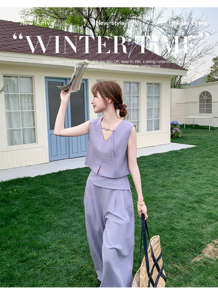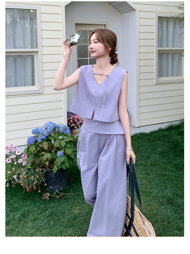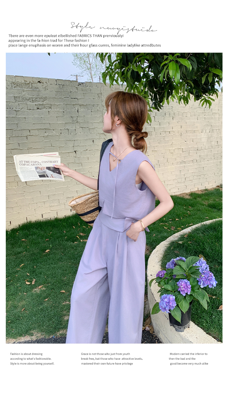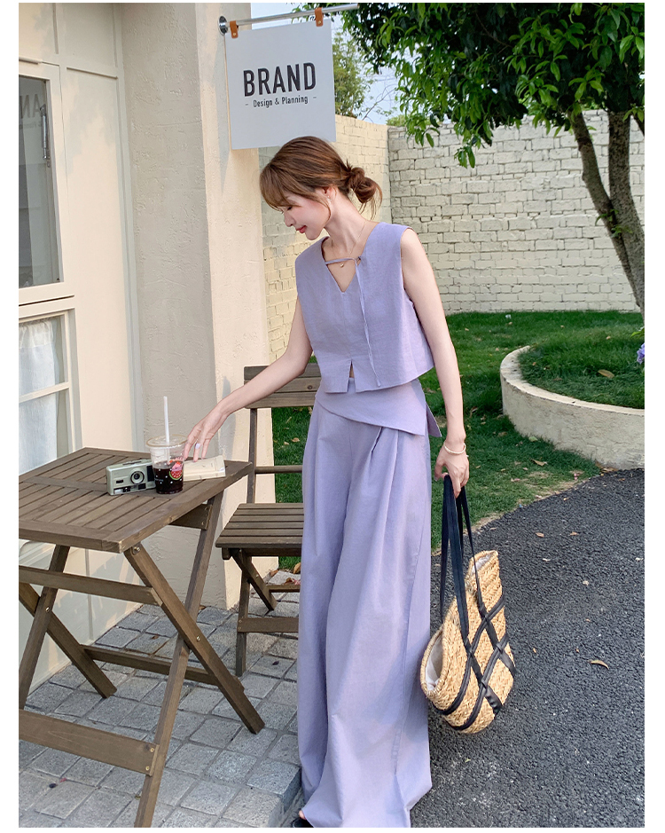 獨家訂製│2件式 V領短款背心+拼接式寬褲(07A1420)