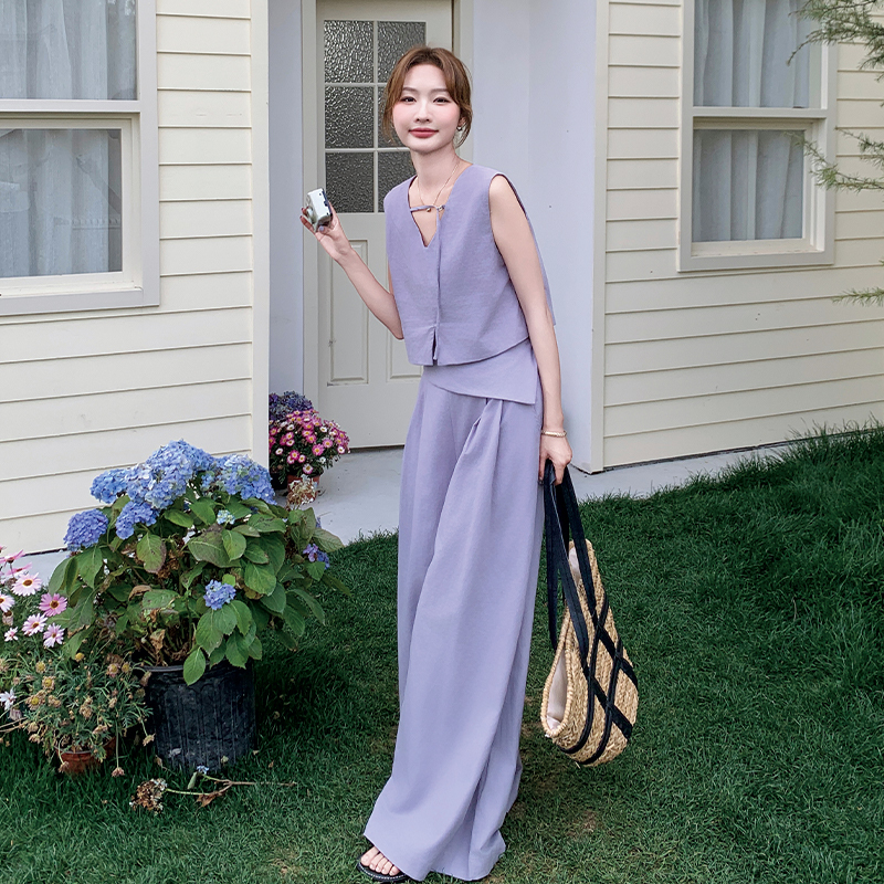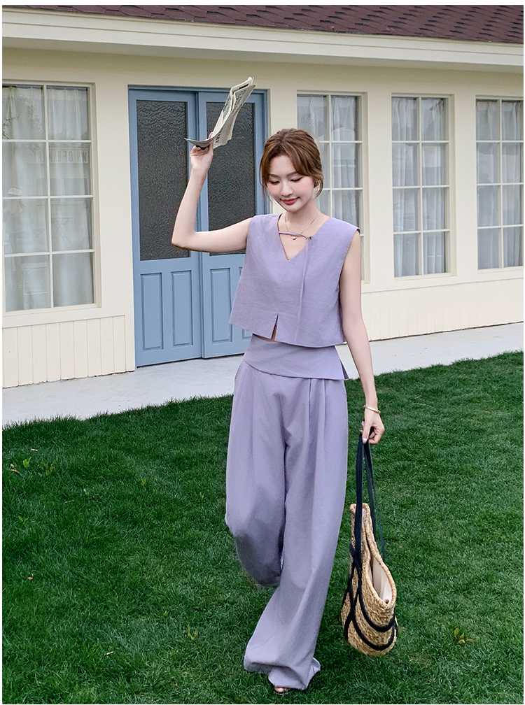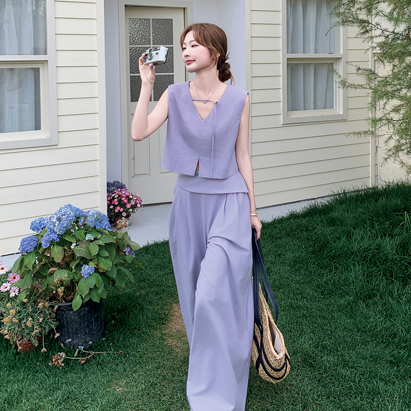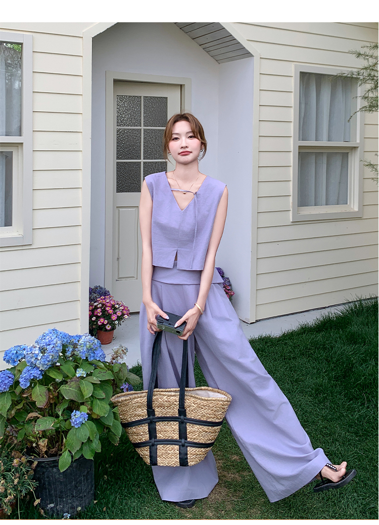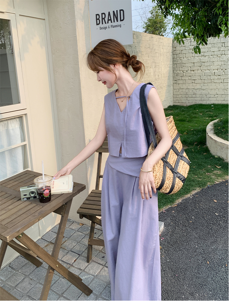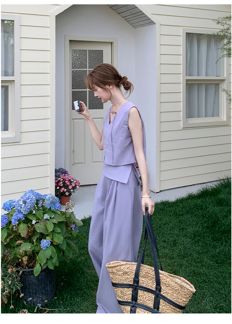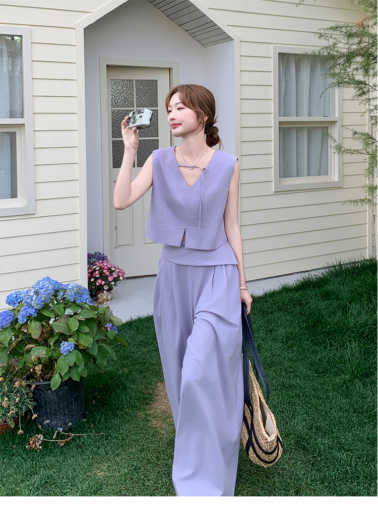 獨家訂製│2件式 V領短款背心+拼接式寬褲(07A1420)