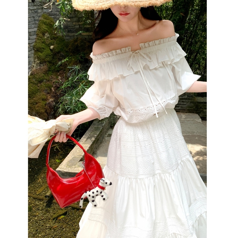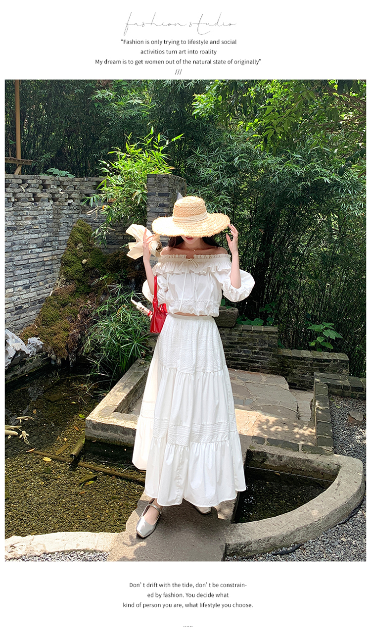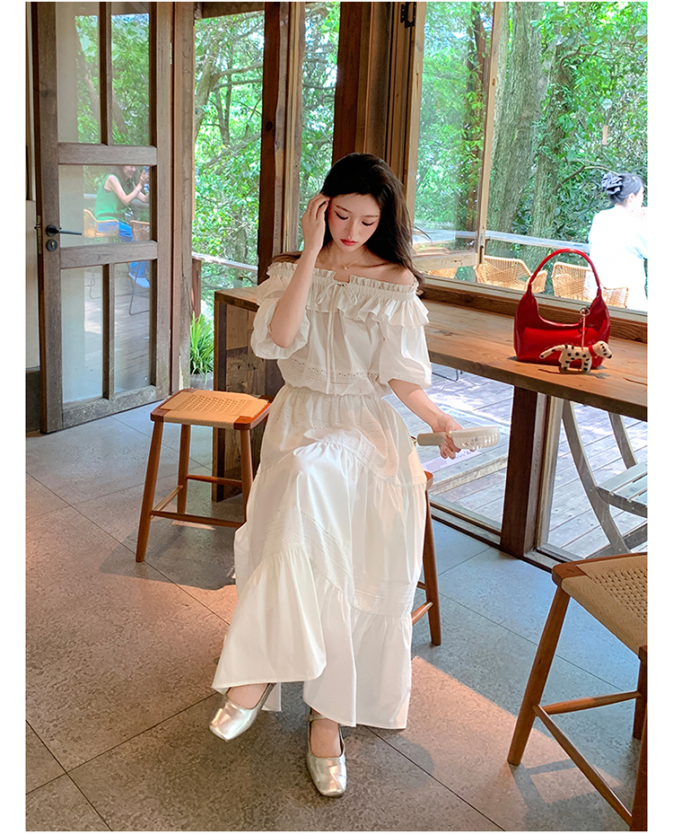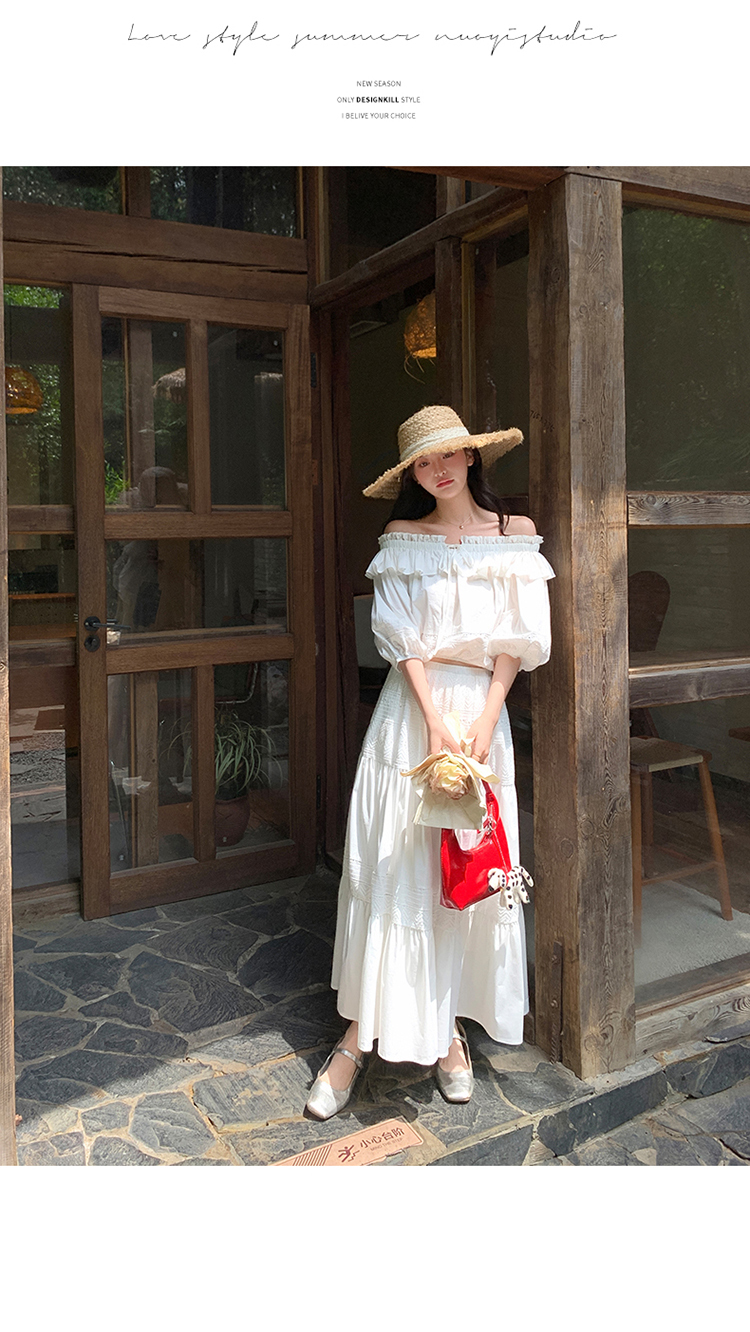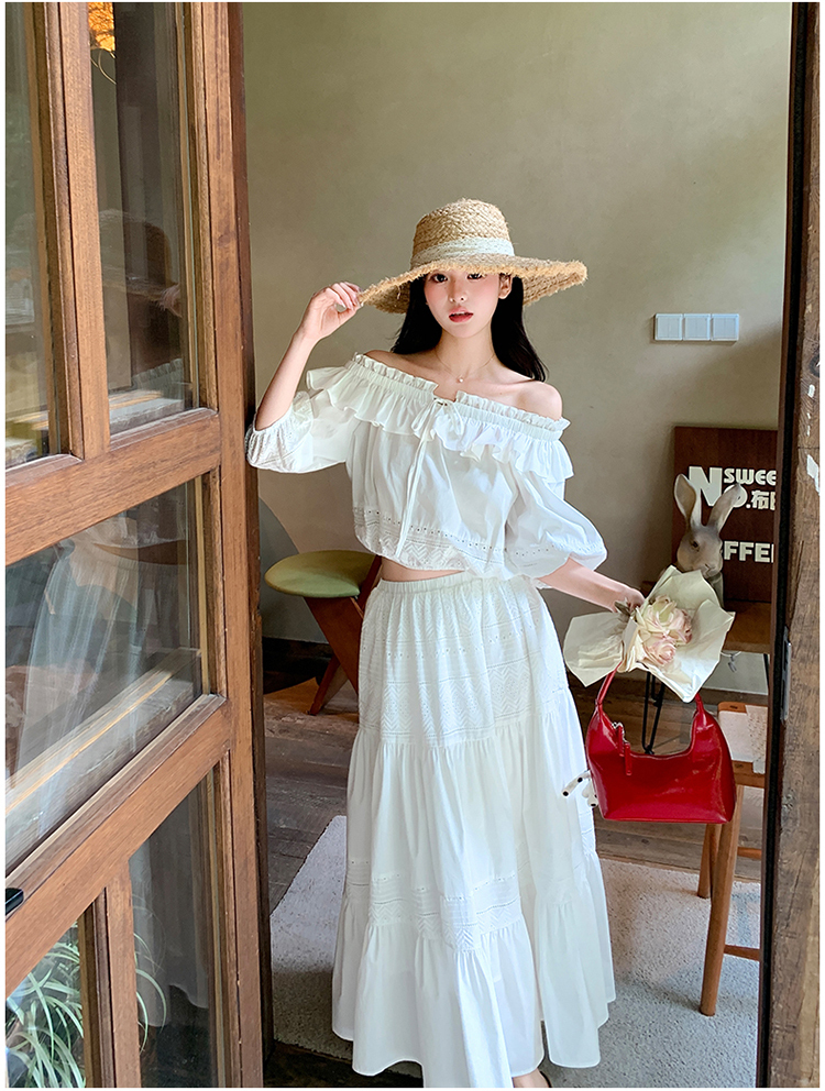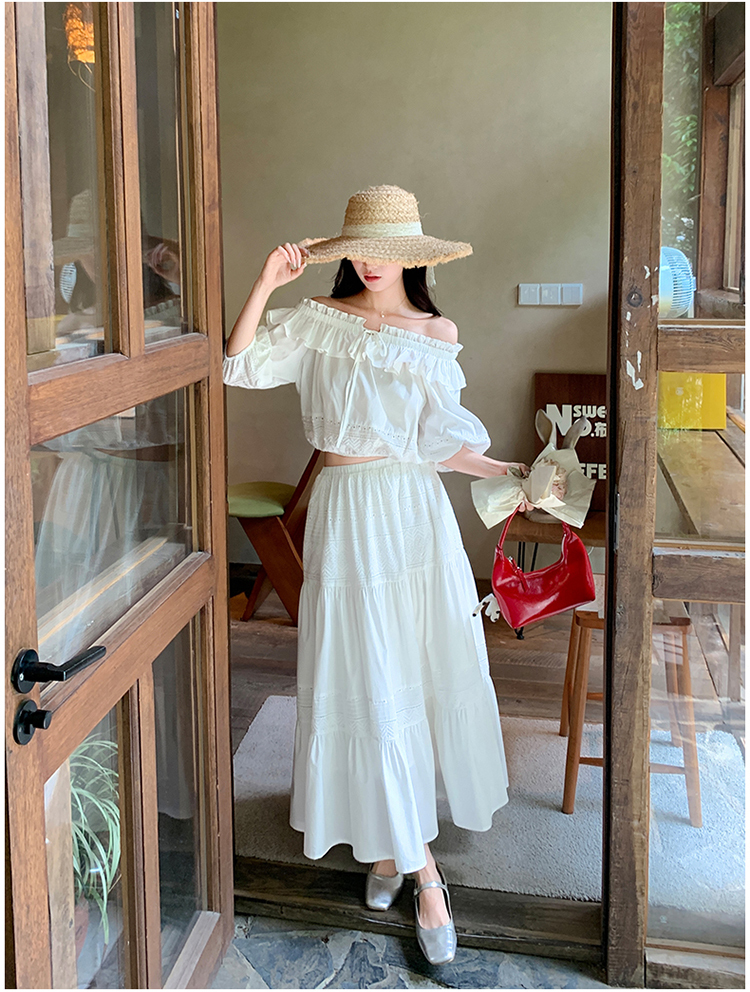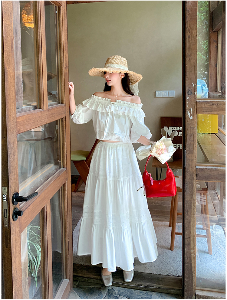 獨家訂製│2件式 露肩小短款上衣+A字裙(07A1470)