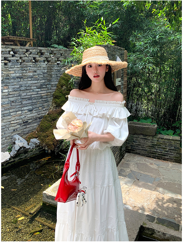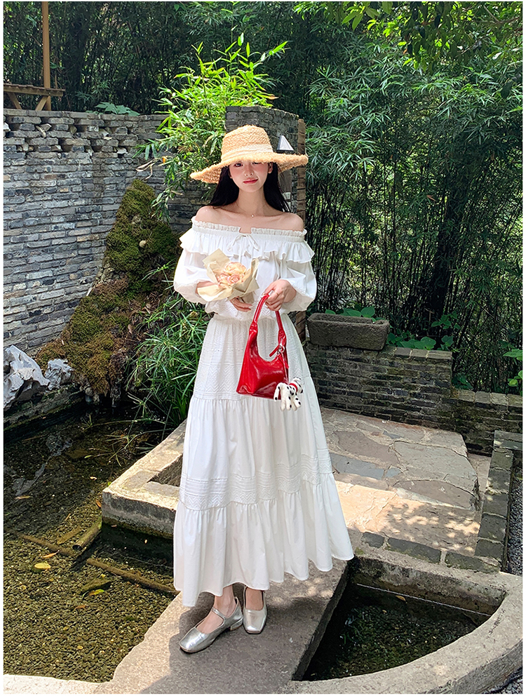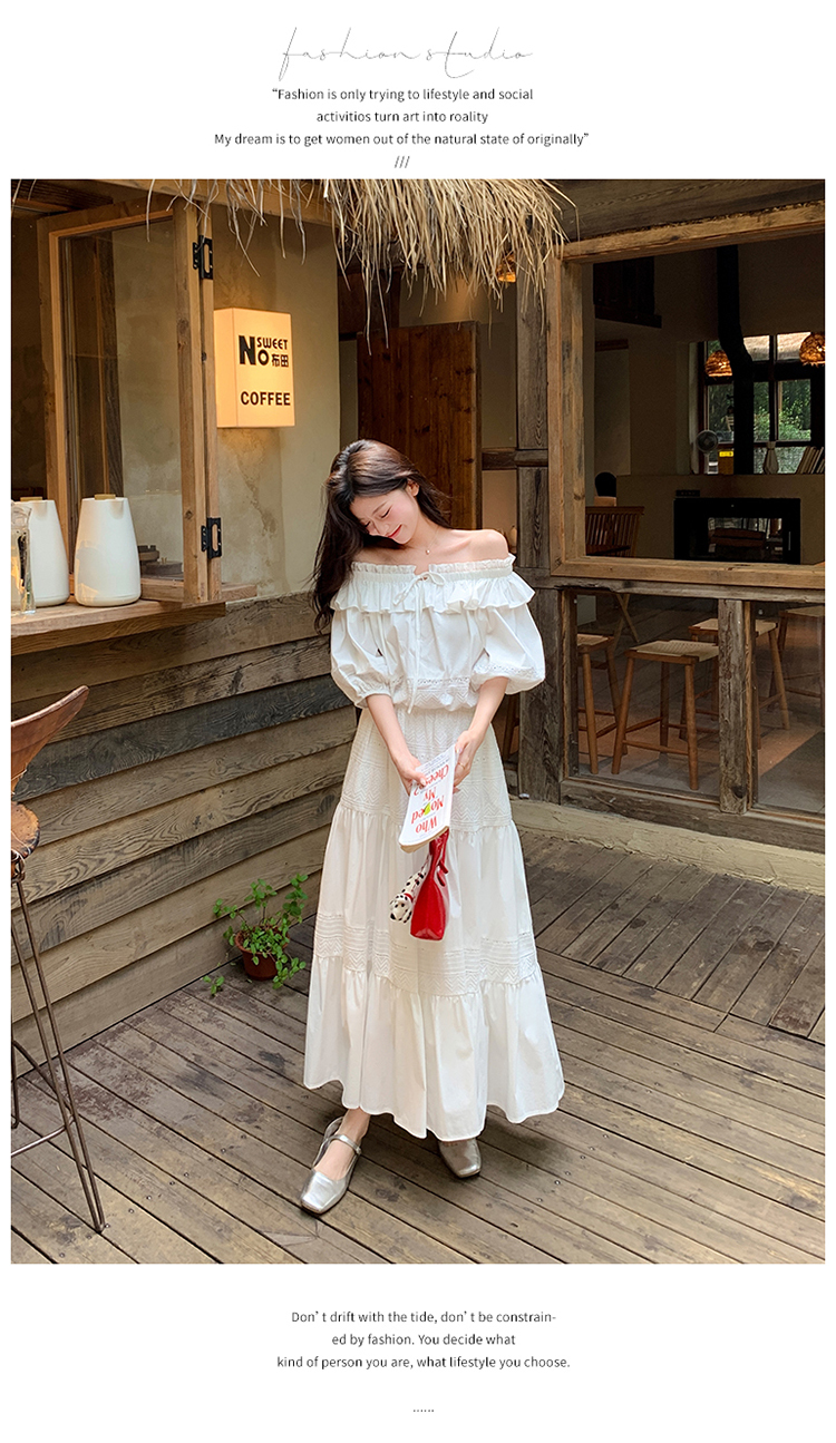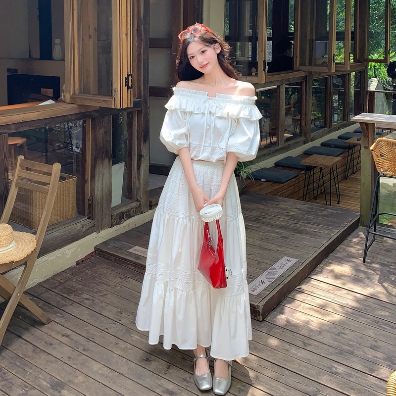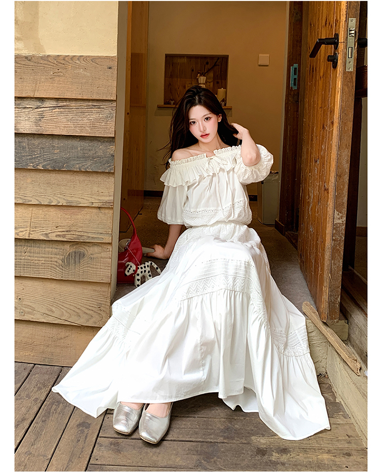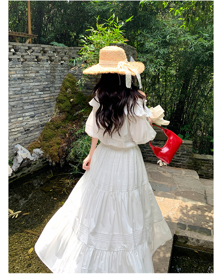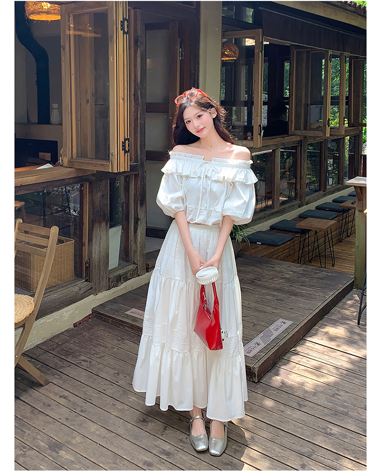 獨家訂製│2件式 露肩小短款上衣+A字裙(07A1470)