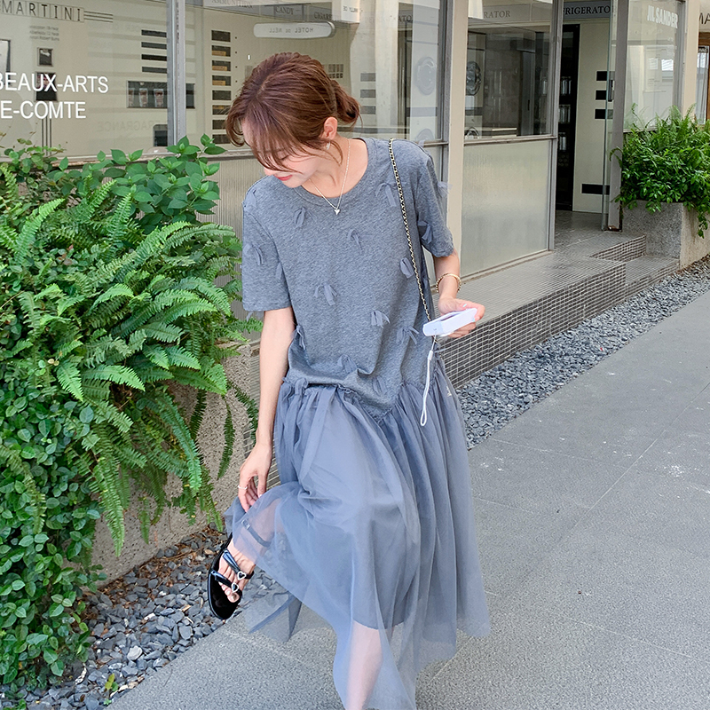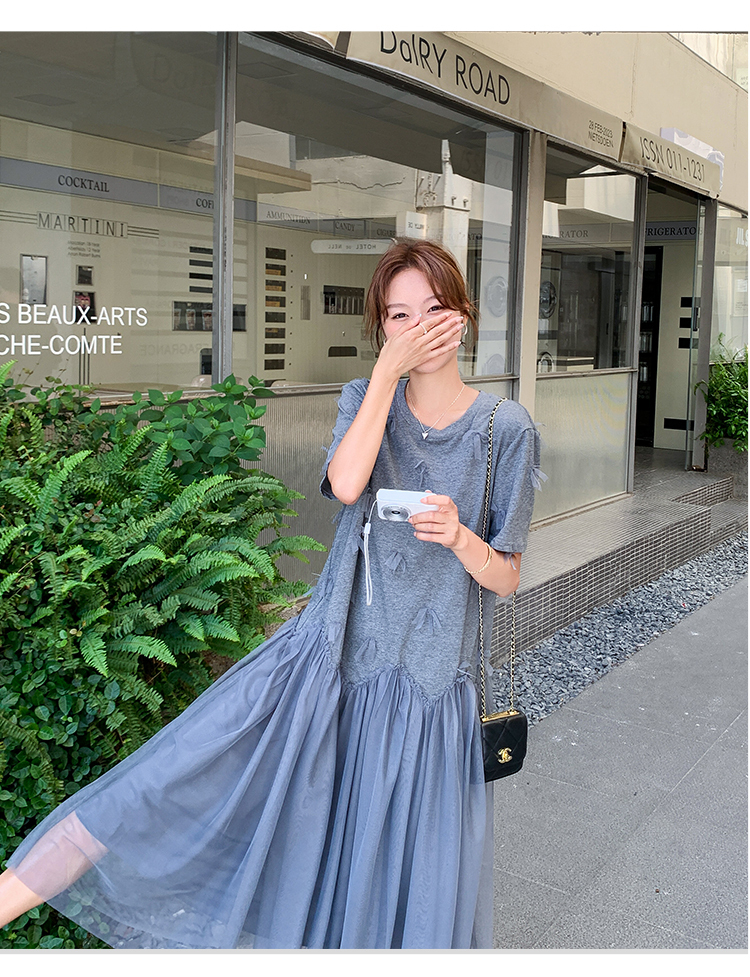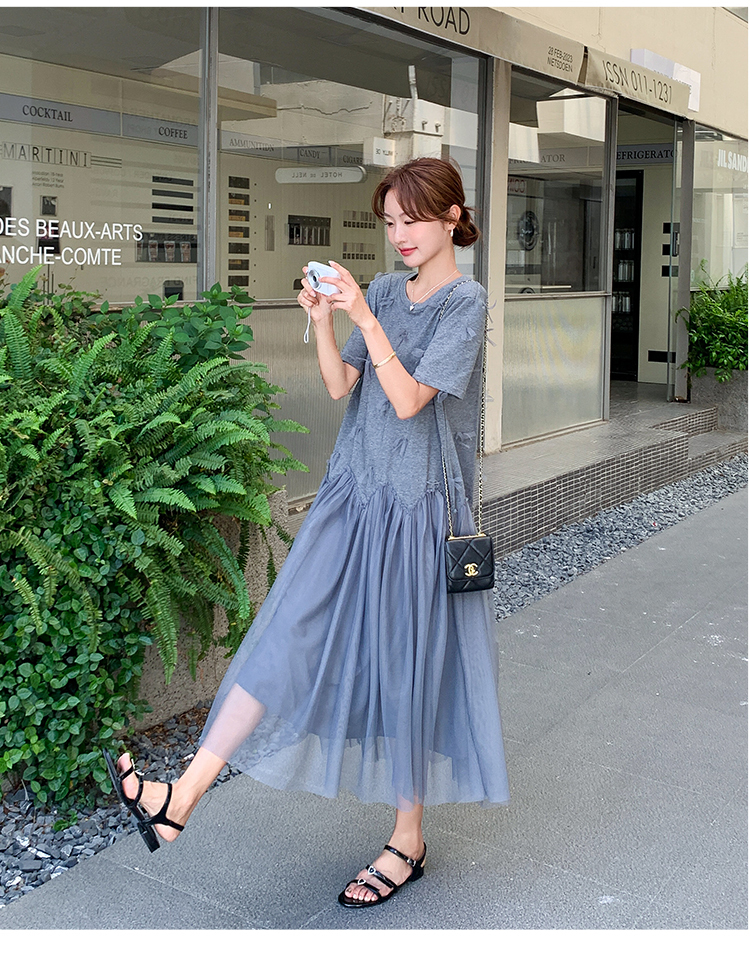 獨家訂製│假2件連衣裙 網紗裙襬拼接連衣裙(07A1479)