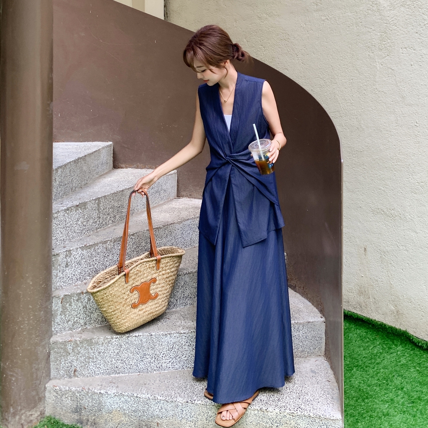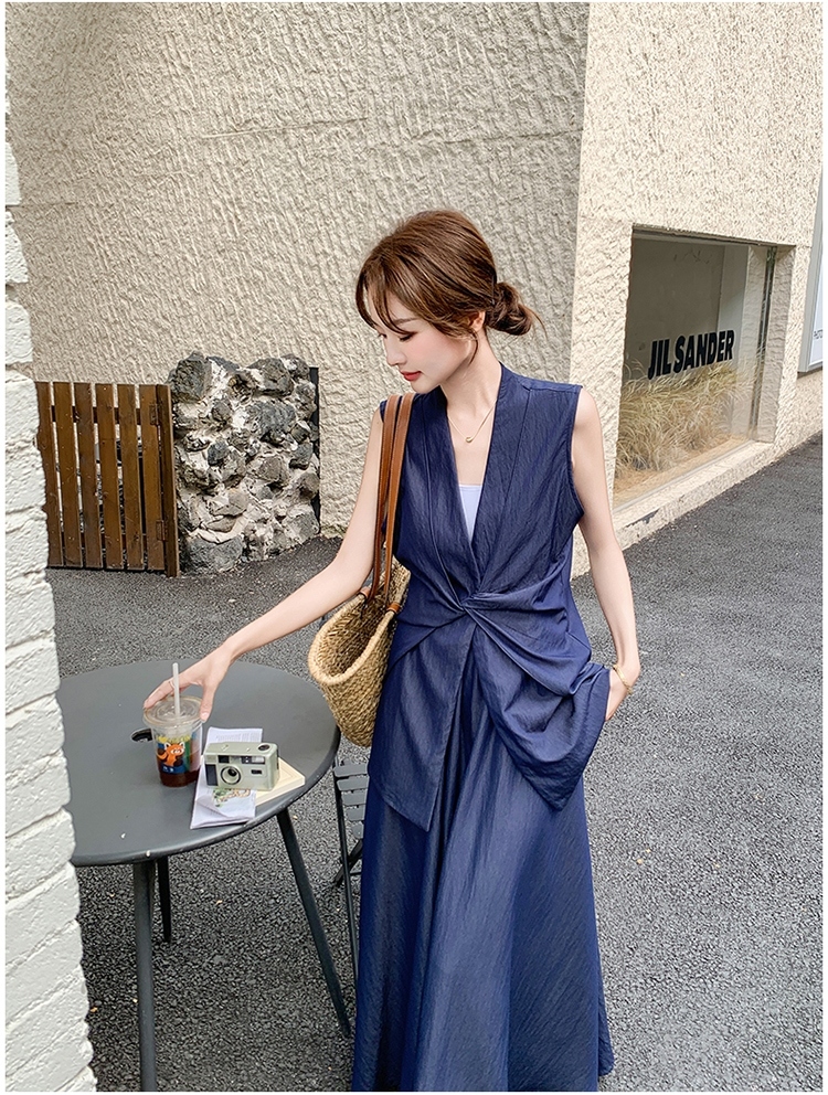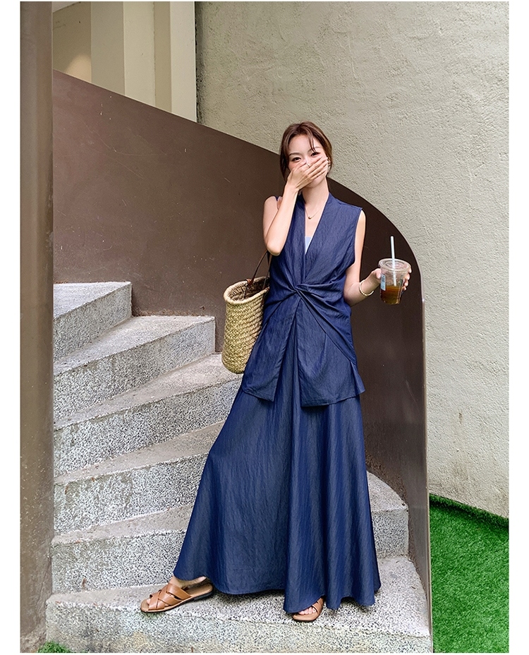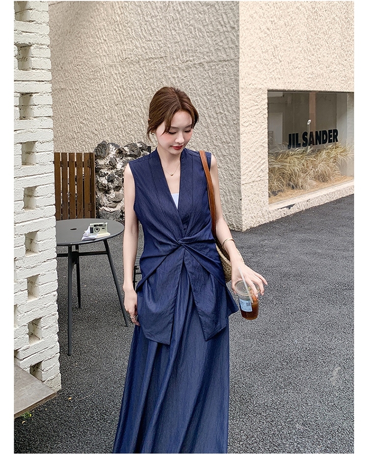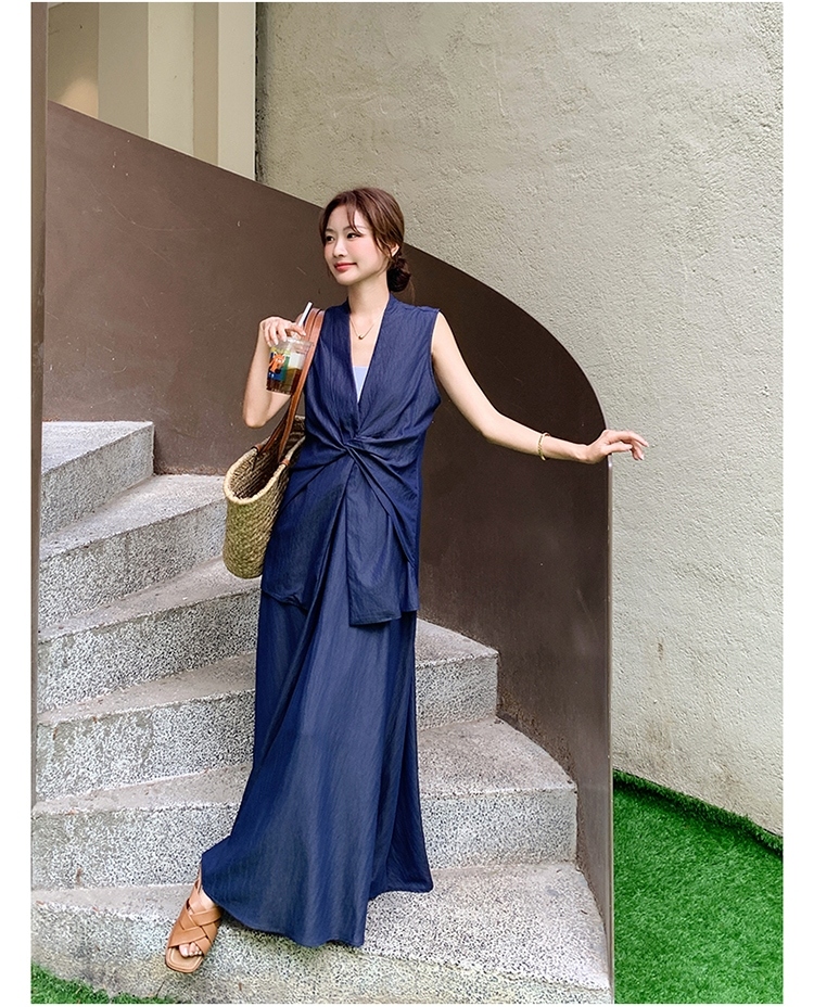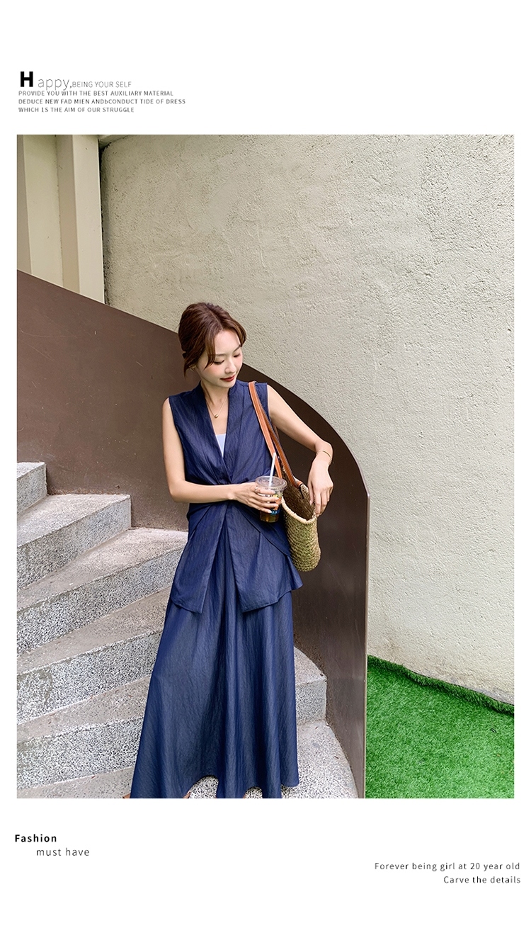 獨家訂製│2件式 V領抓褶收腰上衣+A字裙(07A1497)