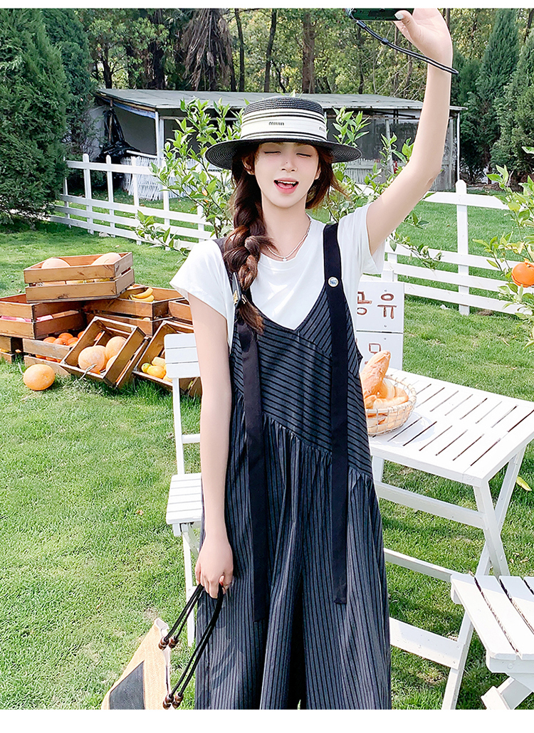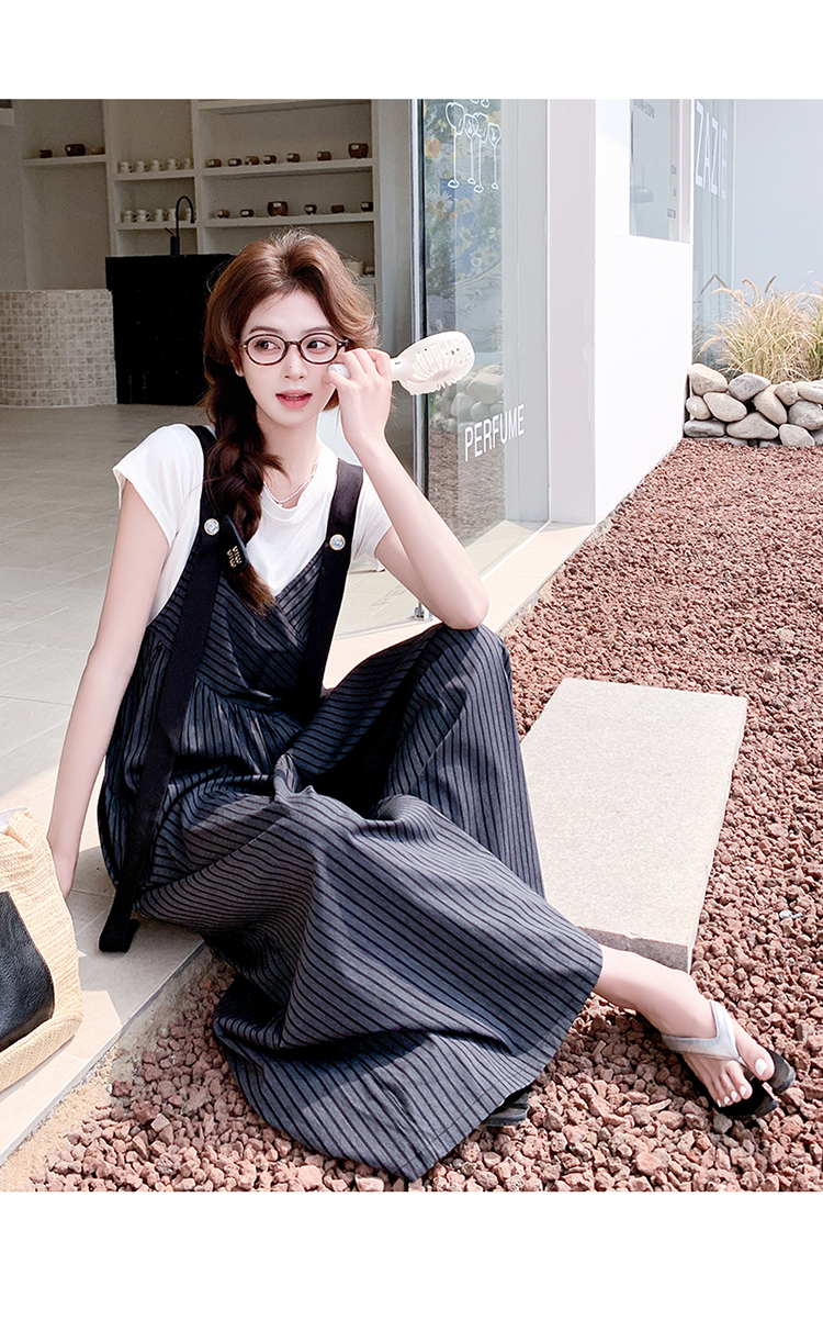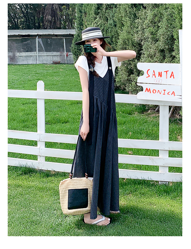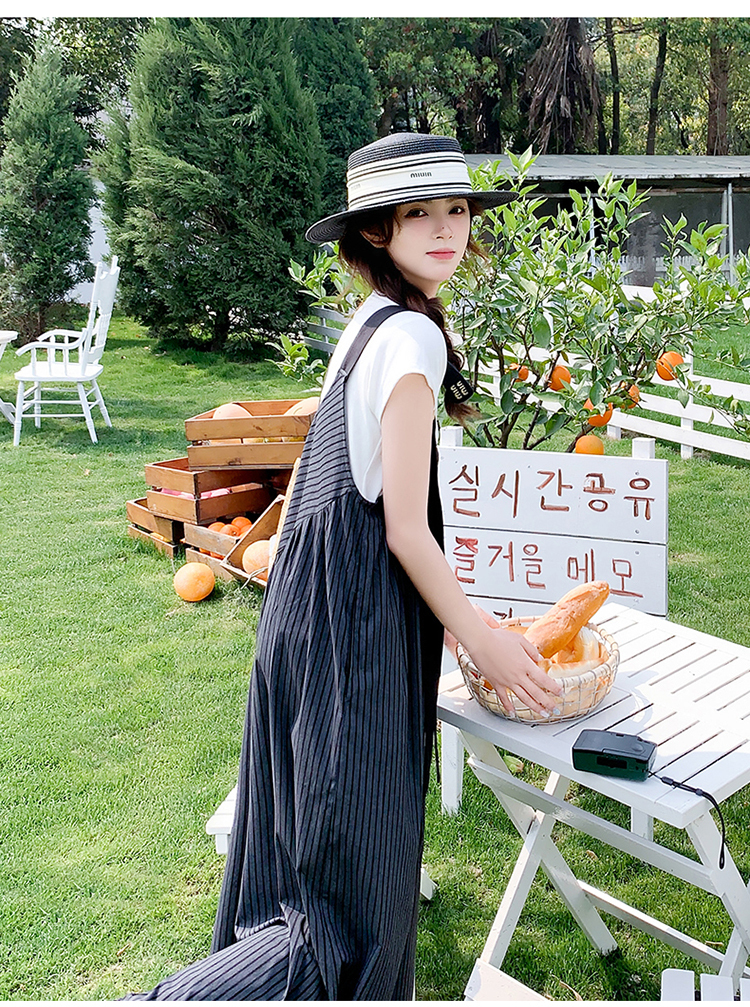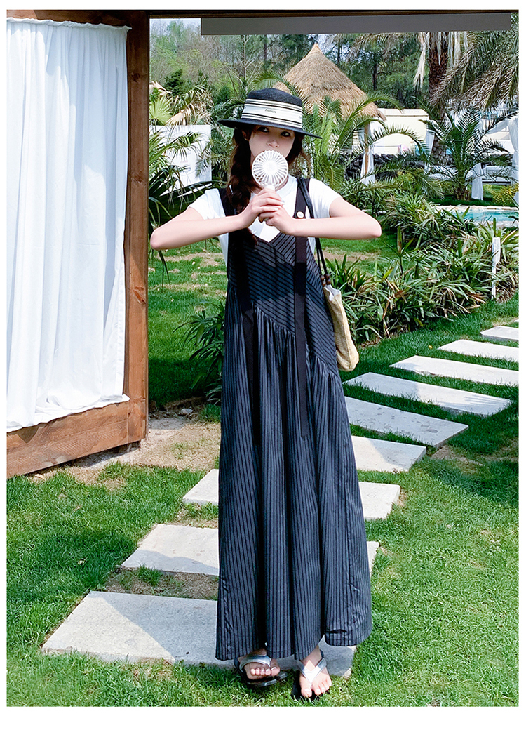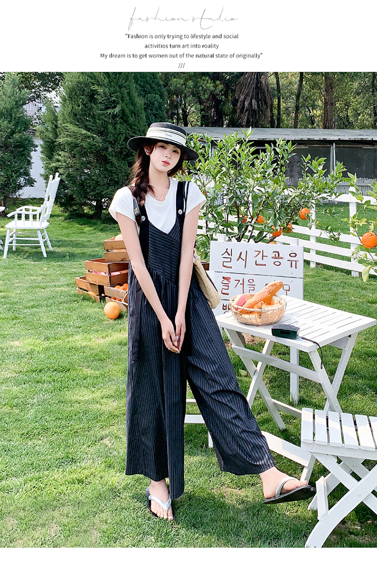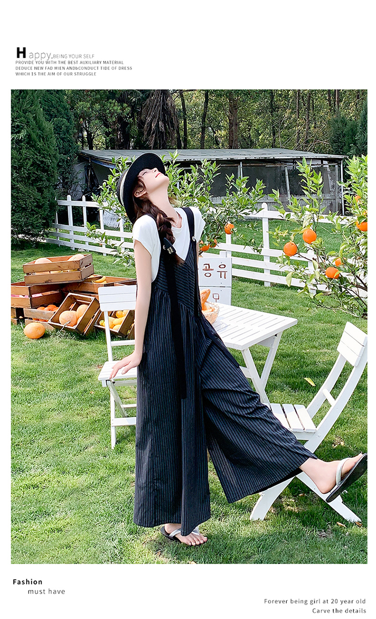 獨家訂製│個性休閒風豎條紋大闊腿吊帶褲(07A1503)
